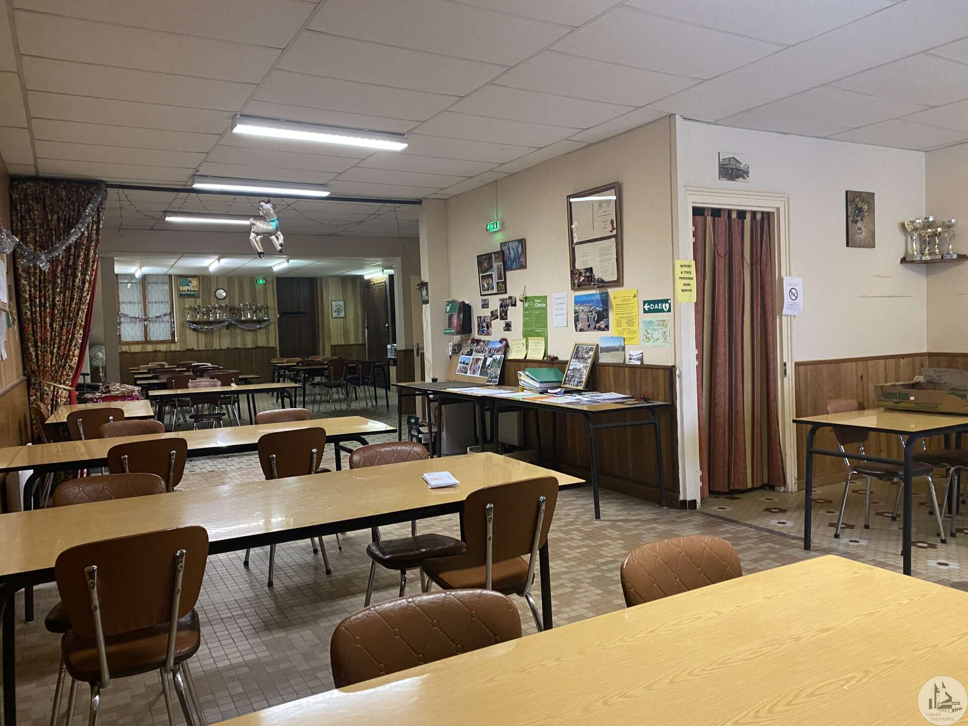 Oude dorpswoning, rijtjeshuis, als volgt ingedeeld: - Begane grond: grote, diepe, open ruimte (circa 109 m²) met een keuken (15 m²) en een toilet (2,7 m²). Deze ruimte heeft een dubbelglazen winkelraam en kan eenvoudig weer als winkel worden gebruikt. - Eerste verdieping (twee trappen: één in de hoofdruimte en een aparte trap die toegang biedt tot de eerste verdieping vanuit een achterliggende steeg): 2 overloop (17,8 en 17,3 m²), hal (11,5 m²), drie kamers zonder ramen (3,6, 11,05 en 12,6 m²), een trappenhuis (naar de zolder) en een toilet. Renovatie vereist. Ideaal voor investering (meerdere indelingsmogelijkheden) of voor gecombineerd commercieel en residentieel gebruik.
