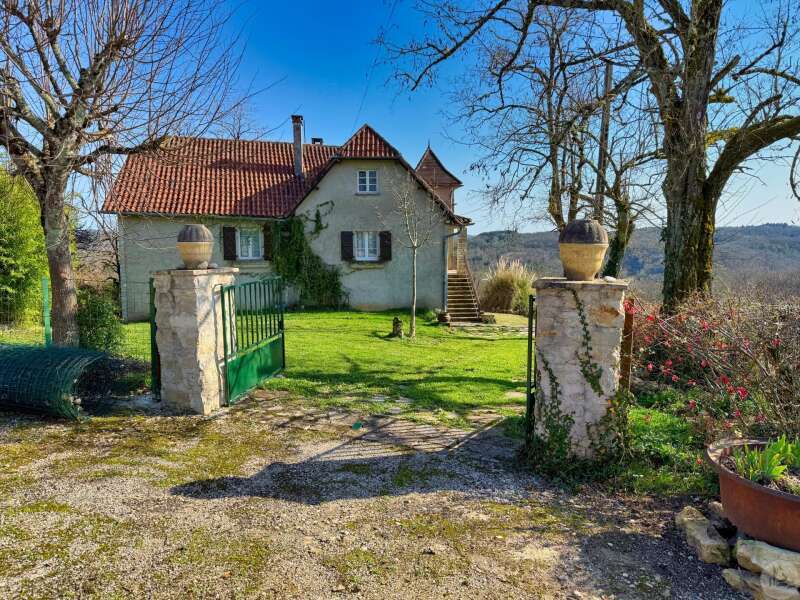Deze woning, gelegen te midden van een prachtig landgoed aan een rustige zijstraat, geniet een indrukwekkende ligging. De entree, via een trap, leidt naar een hal van 7,42 m² (met een luik naar de zolder). Deze hal geeft toegang tot een woonkamer van 25,99 m² met een open haard (afgesloten met een inzethaard) en een panoramisch uitzicht over de vallei. De keuken van 18,69 m² heeft ook een trap naar beneden. Een tweede hal biedt vervolgens toegang tot drie slaapkamers (12,44 m², 9,42 m² en 8,76 m²) met prachtige hardhouten vloeren, een badkamer van 5,02 m² met douche en bad, en een kleedkamer van 2,10 m². Op tuinniveau biedt een appartement de mogelijkheid tot verhuurinkomsten en bestaat uit een woonkamer van 25,05 m², een keuken van 4,73 m², een badkamer van 4,52 m² met douche en bad, en een hal die toegang geeft tot twee slaapkamers van respectievelijk 12,47 m² en 9,73 m². Er zijn ook twee aangrenzende kelders met de olietank, de cv-ketel en twee boilers (één voor het appartement en één voor het hoofdgebouw). Dubbelglas houten ramen Houten luiken Onverbouwde zolder met glasvezelisolatie Niet-conforme septic tank Olieverwarming met een Viessmann cv-ketel en een tank van 1500 liter Buiten bevinden zich bijgebouwen: een schuur van 170 m², een gebouw van 30 m² en twee agrarische schuren van elk circa 100 m².