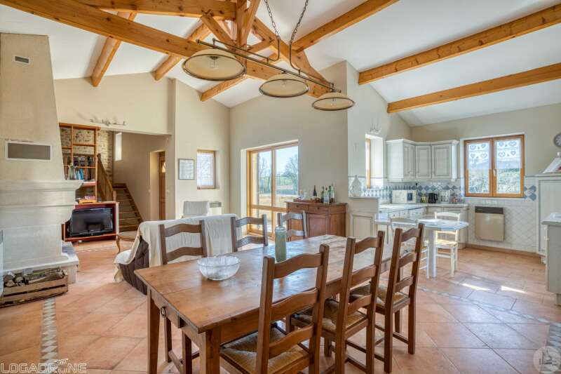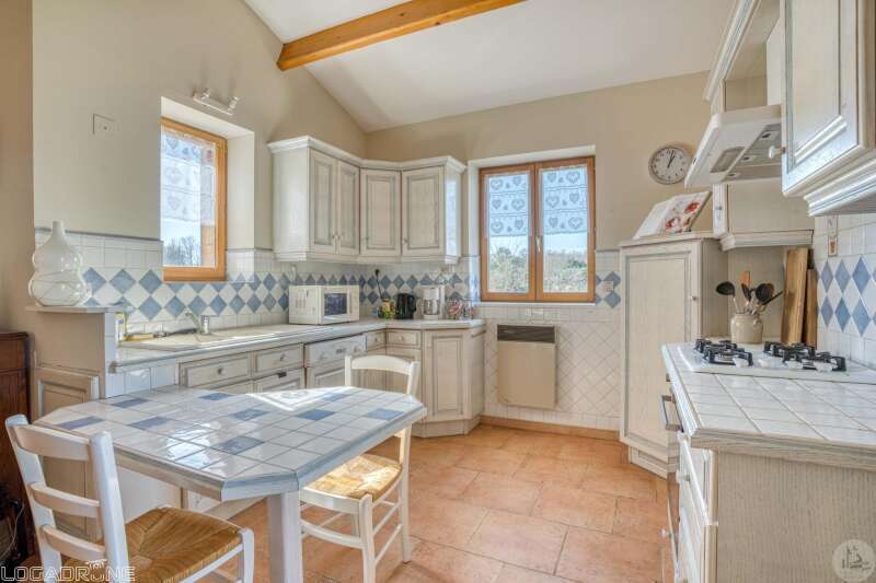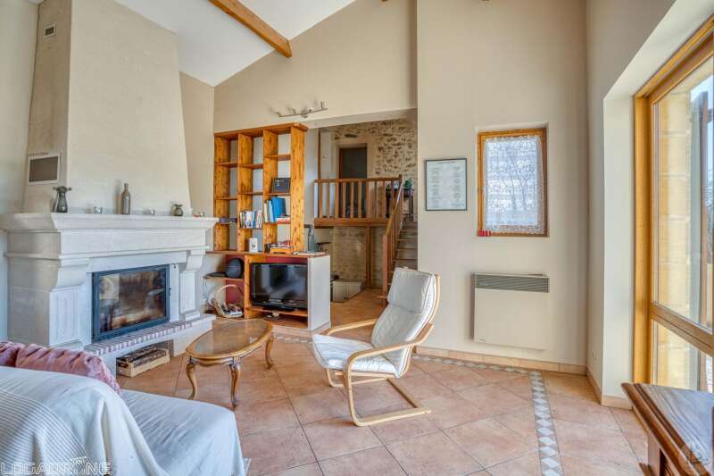 Een woning gebouwd in 1999, met een aanbouw uit 2009, met een woonoppervlakte van circa 110 m², bestaande uit: - Een overdekt terras dat dienstdoet als entreeportaal. - Een entree die toegang geeft tot een open woon-/eet-/keukenruimte van circa 31,6 m² en een aparte keuken van circa 8 m². De keuken is voorzien van boven- en onderkasten, een tegelvloer en een betegeld aanrechtblad. De keuken is uitgerust met een oven, een gaskookplaat, een vaatwasser, een afzuigkap, een spoelbak en een koelkast. De woon-/eetkamer heeft een tegelvloer, een open haard met inzethaard en openslaande deuren naar een terras op het zuiden met travertin vloer. De plafonds zijn maar liefst 4,05 m hoog. - Een hal van circa 1,4 m² met tegelvloer. - Een badkamer van circa 4,2 m² met ligbad, wastafel, planken, ventilatiesysteem, tegelvloer en keramische wandtegels. - Een apart toilet van circa 1,2 m² met tegelvloer, keramische wandtegels en ventilatiesysteem. - Een tweede doucheruimte van circa 3,2 m² met douche, wastafel, handdoekradiator, ventilatiesysteem en tegelvloer. - Een kleedkamer of kantoor van circa 8 m² met laminaatvloer. - Een slaapkamer van circa 7,7 m² met laminaatvloer. Een houten trap vanuit de hal naar de bovenverdieping. - Een slaapkamer van circa 14,5 m² met laminaatvloer en inbouwkasten. - Een slaapkamer van circa 16,5 m² met laminaatvloer. Een betonnen trap vanuit de hal naar de kelder. - Een kelder van circa 20,8 m² met wastafel. - Een kelder van circa 4,8 m² met een grindvloer. - Een garage van circa 23 m² met een betonnen vloer en een elektrische garagedeur. Aanvullende informatie: - Onroerendezaakbelasting: € 1.329 - Septische installatie vernieuwd in 2025 - Glasvezelinternet geïnstalleerd - Houten kozijnen met dubbel glas en houten luiken. - Elektrische en houtkachel. Buiten: - Circa 2.000 m² bosgrond. - Een gewelfde stenen kelder.