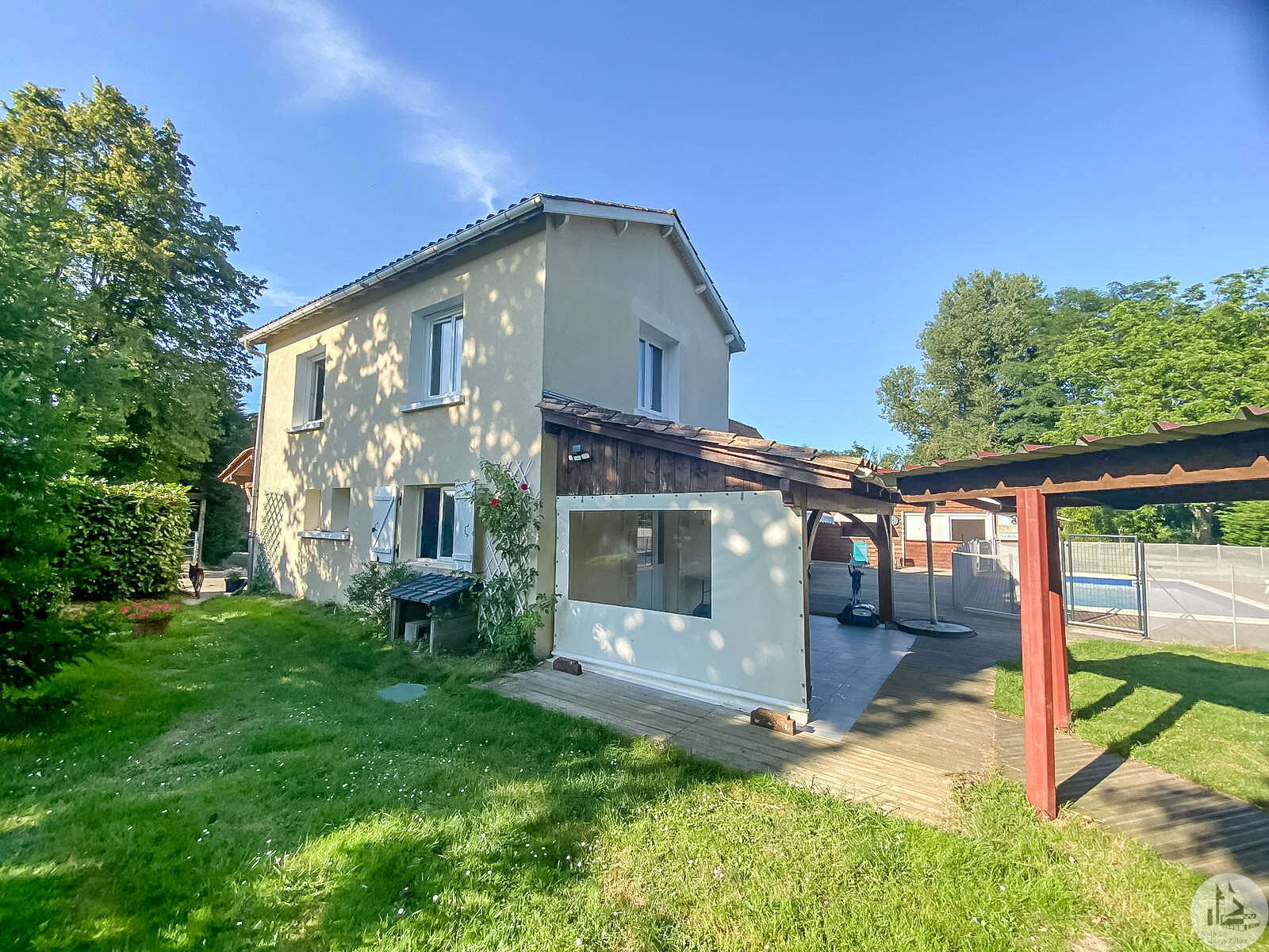 Deze woning bestaat uit: Begane grond : Een uitnodigende entree met ingebouwde kasten, aparte toiletten, een moderne doucheruimte, een volledig uitgeruste keuken, perfect voor de kookliefhebber, een ruime woon-/eetkamer met houtkachel, waardoor een warme sfeer ontstaat, een hal voor gebruik door kantoor, ideaal voor telewerken, een hoofdslaapkamer met hoekbubbelbad en wastafel, die een eigen ontspanningsruimte biedt, een tweede slaapkamer met twee kledingkasten voor optimale opbergruimte, een doucheruimte met wastafel en toilet. Boven : Een gang die leidt naar twee extra slaapkamers met ingebouwde kasten, die een comfortabele ruimte bieden voor het hele gezin. Deze woning is voorzien van PVC dubbele beglazing, elektrische convectoren en een houtkachel. De zolder en muren zijn geïsoleerd, waardoor een uitstekend thermisch comfort wordt gegarandeerd. Buitenkant: Het aangrenzende land is vlak en bosrijk en biedt een natuurlijke en ontspannen omgeving. Bij de bijgebouwen hoort een schuur van circa 200 m², ideaal voor opslag- of ontwikkelingsprojecten. Geniet van momenten van ontspanning met een chloorzwembad van 9x4 m (2020), verwarmd en verlicht. Een poolhouse uitgerust met een gootsteen voor de zomerkeuken, een kamer en een doucheruimte met toilet completeren deze ruimte. Het terras, zowel overdekt als onoverdekt, met een barbecueplek en een tuinhuisje (uitgerust met elektrische verwarming en verlichting), is ideaal voor buitenavonden. Aanvullende voordelen: Een visvijver, die een vleugje charme en rust toevoegt Een houten schuur en houten schuilplaatsen voor extra opslagruimte Een volledig afgesloten park met elektrische toegangspoort, waardoor veiligheid en privacy worden gewaarborgd Drie waterputten voor het bewateren van de tuin en het bevoorraden van het zwembad Een geasfalteerde oprit, die de toegang tot het pand vergemakkelijkt Dit huis is een ware oase van rust en biedt goede diensten in een idyllische omgeving. Mis deze unieke kans niet. Voor meer informatie of een bezoek kunt u gerust contact met ons opnemen.