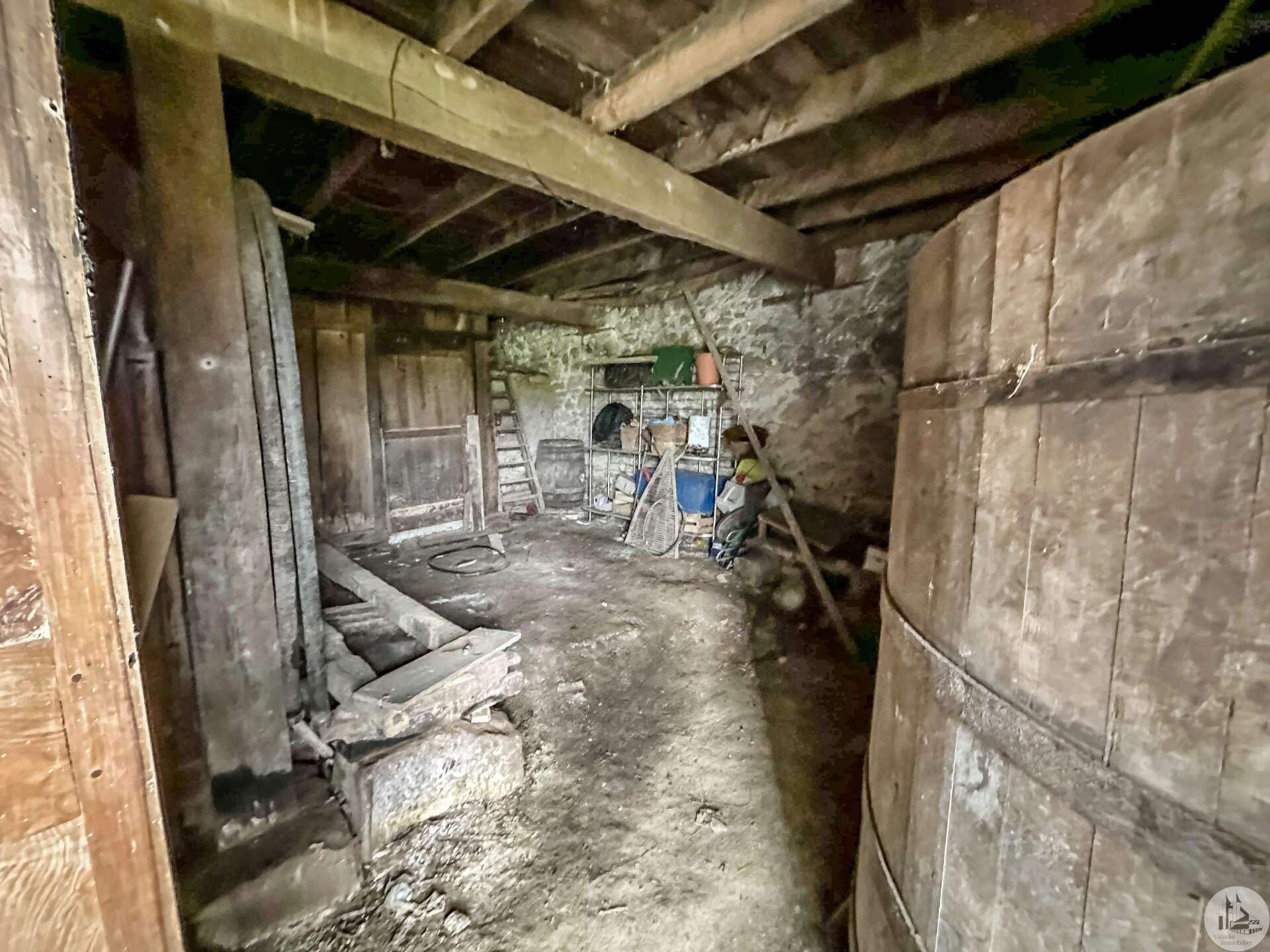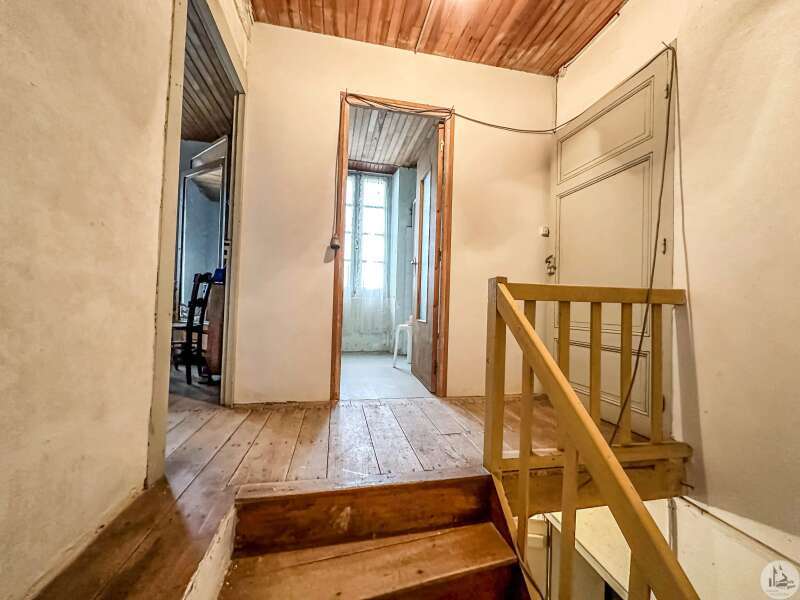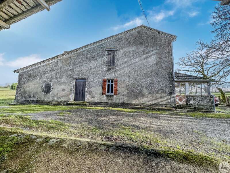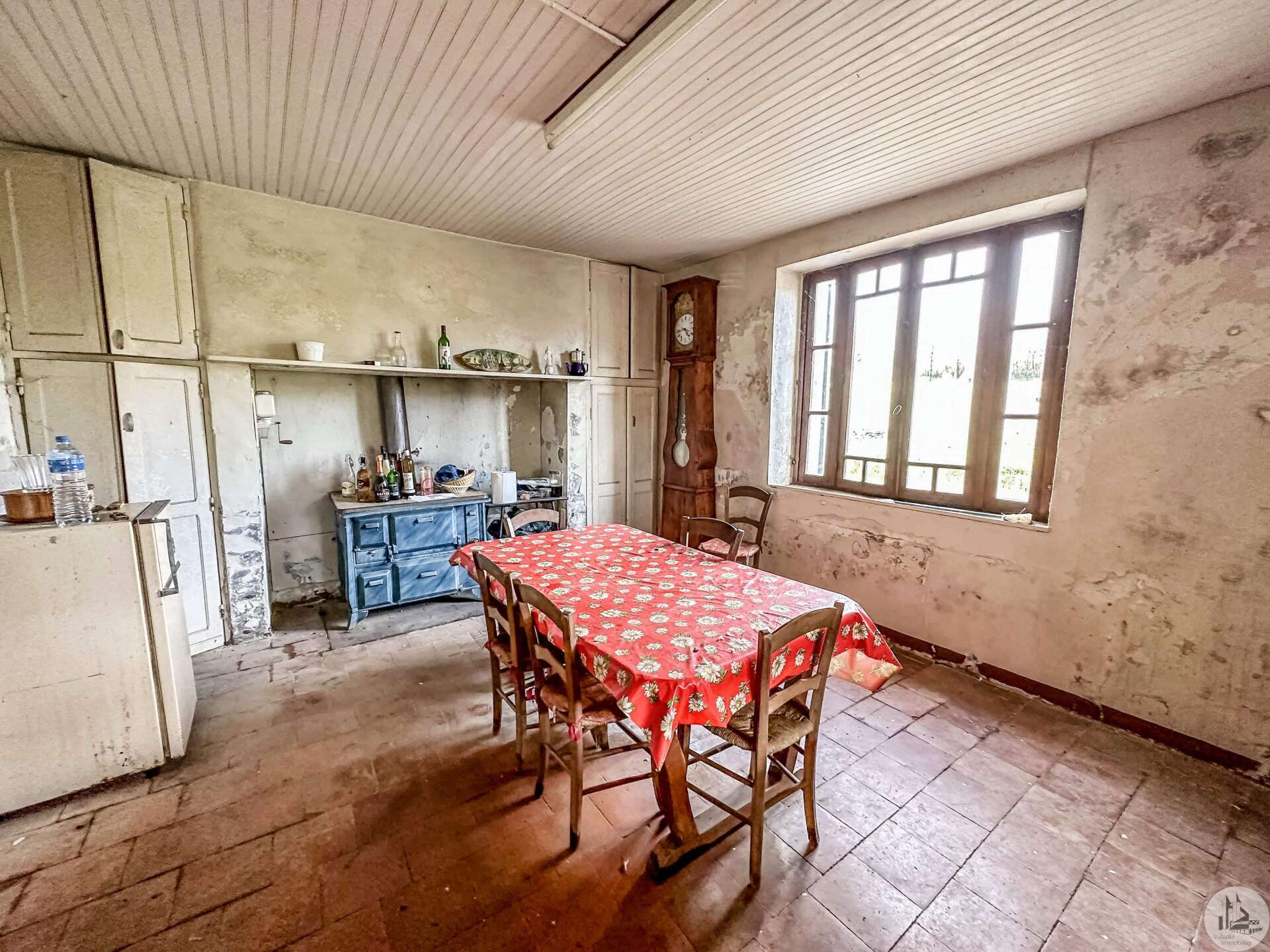 Te renoveren woning bestaande uit: - overdekt terras (31,7 m²) - hal (ca. 9 m²), - keuken (20 m²), - woonkamer (13 m²), - eetkamer (13 m²); Boven: - overloop, - 2 slaapkamers (13 en 19 m²), - doucheruimte met toilet (4 m²). Aangebouwde garage met zolderruimte erboven (36 m²), voormalig wijnpakhuis rechts (32 m²), werkplaats achter (28 m²). Een schuur (ca. 215 m²) met open overkappingen, een schuur (ca. 130 m²) en een gesloten gebouw van plaatstaal (voormalig kippenhok - ca. 137 m²). Een waterput naast het afgesloten terrein voor het huis (ideaal voor een moestuin/kippenhok). Overige: - Geen afvoer - Geen verwarming - Houten ramen met enkel glas - Het perceel is onbebouwd, met de mogelijkheid om meer of minder perceel te verwerven.