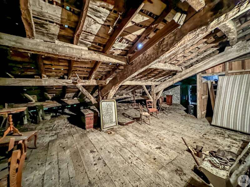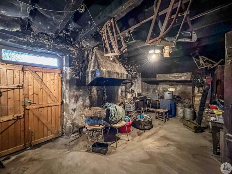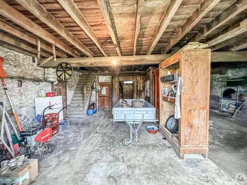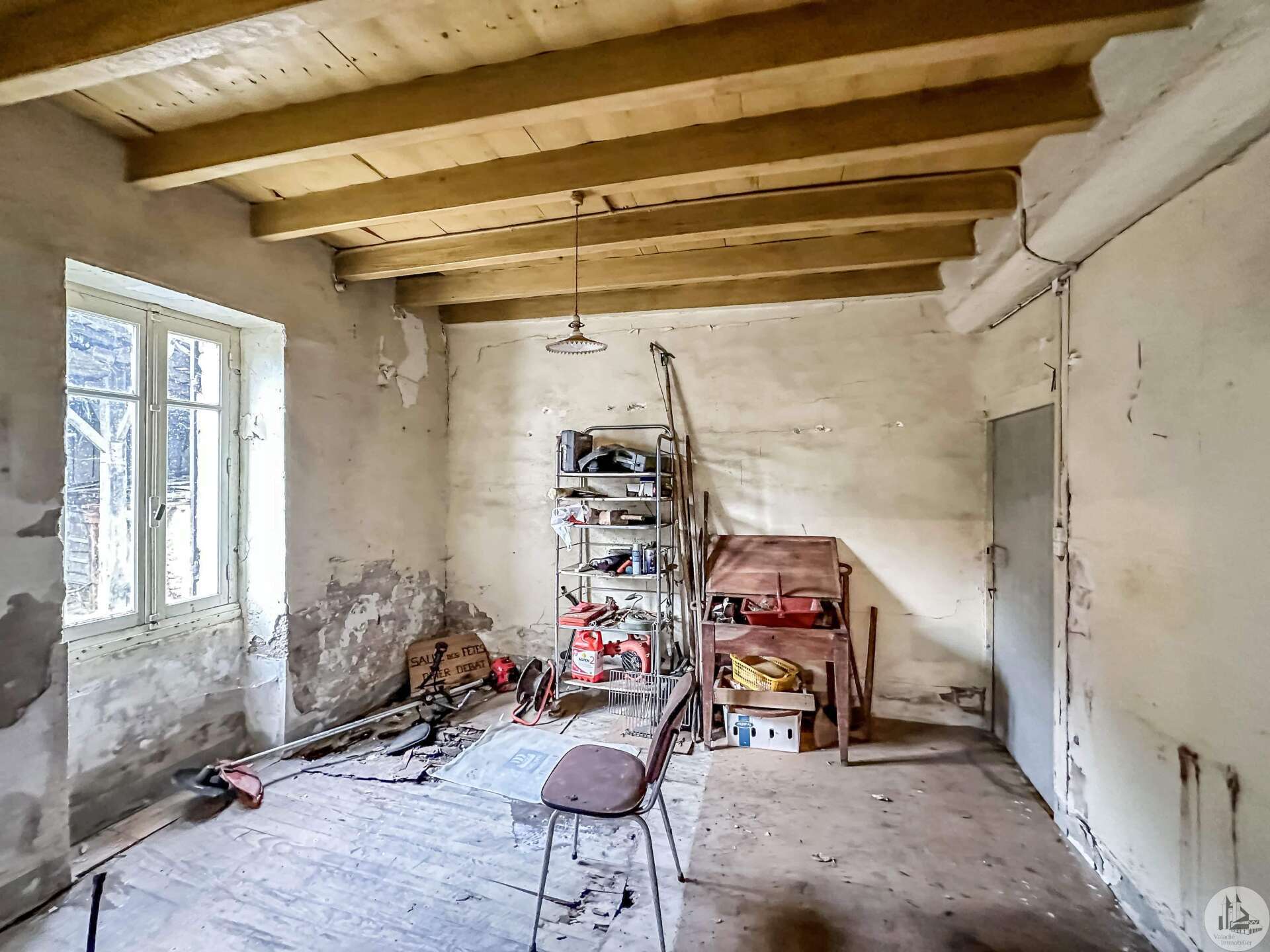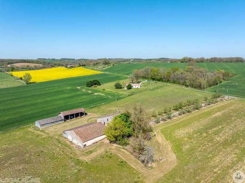 Te renoveren woning bestaande uit: - overdekt terras (31,7 m²) - hal (ca. 9 m²), - keuken (20 m²), - woonkamer (13 m²), - eetkamer (13 m²); Boven: - overloop, - 2 slaapkamers (13 en 19 m²), - doucheruimte met toilet (4 m²). Aangebouwde garage met zolderruimte erboven (36 m²), voormalig wijnpakhuis rechts (32 m²), werkplaats achter (28 m²). Een schuur (ca. 215 m²) met open overkappingen, een schuur (ca. 130 m²) en een gesloten gebouw van plaatstaal (voormalig kippenhok - ca. 137 m²). Een waterput naast het afgesloten terrein voor het huis (ideaal voor een moestuin/kippenhok). Overige: - Geen afvoer - Geen verwarming - Houten ramen met enkel glas - Het perceel is onbebouwd, met de mogelijkheid om meer of minder perceel te verwerven.