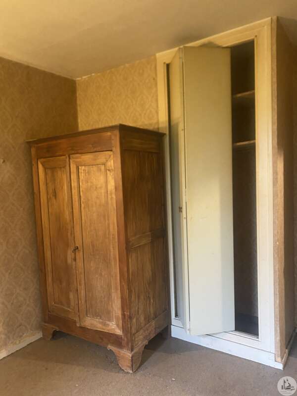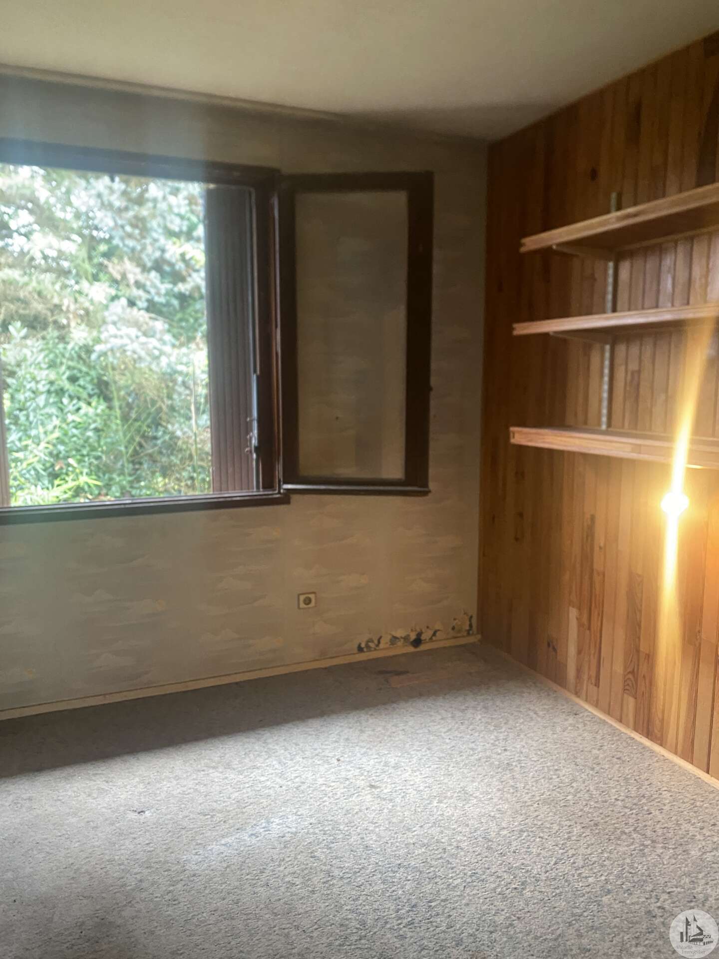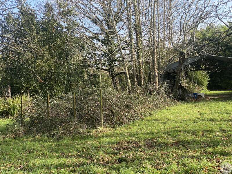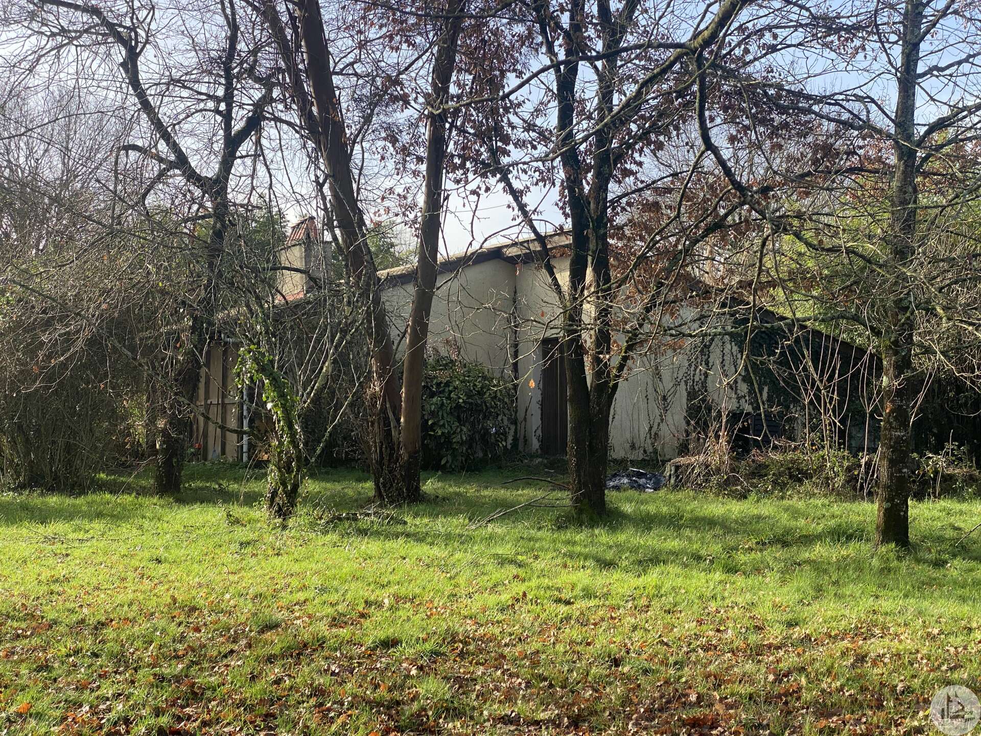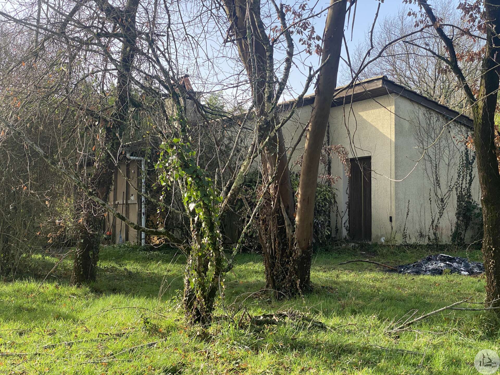 Eénlaags huis op een prachtig, vlak, bosrijk perceel. Het huis, circa 100 m², is gebouwd in de jaren 80 in baksteen en gepleisterd en behoeft renovatie. De entreehal met kast en meterkast geeft toegang tot de woonkamer met open haard. Daarachter bevindt zich een kantoor met vier openslaande deuren aan de oostgevel. Een keuken met kasten, een raam en een deur geeft toegang tot een bijkeuken/werkplaats met buitentoegang. Een gang biedt toegang tot drie slaapkamers, een toilet en een doucheruimte. Een vrijstaande schuur/carport is ook inbegrepen. Enkel glas.