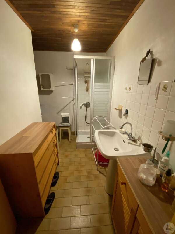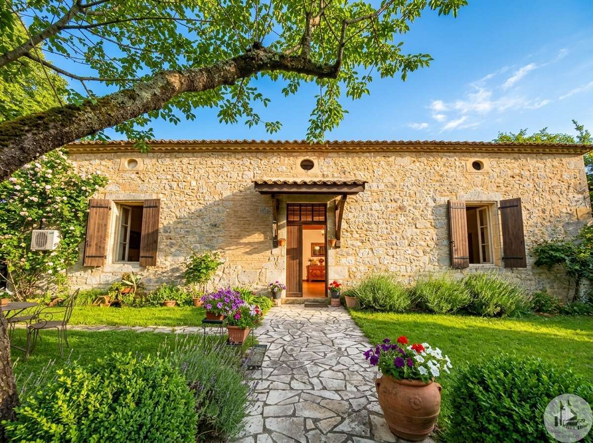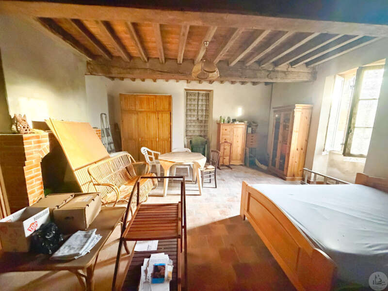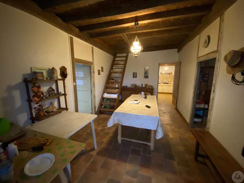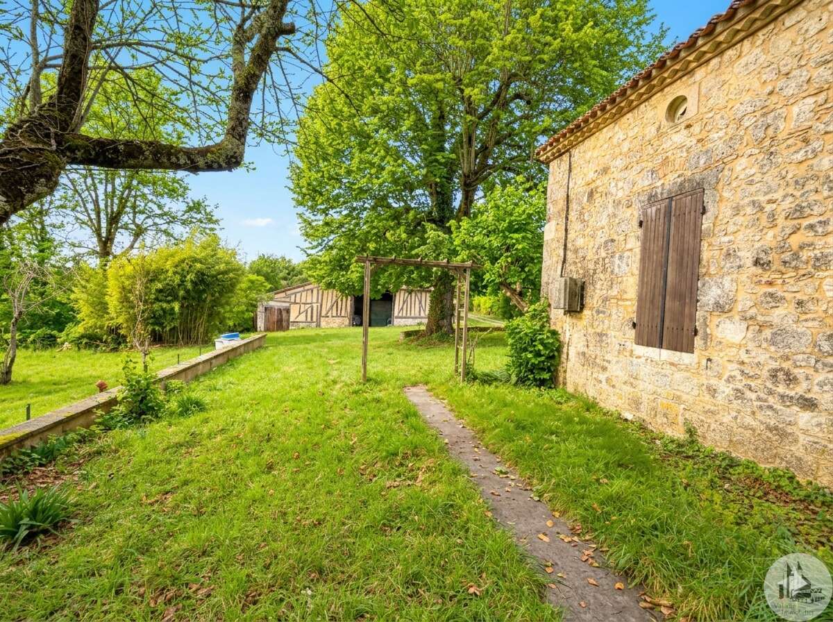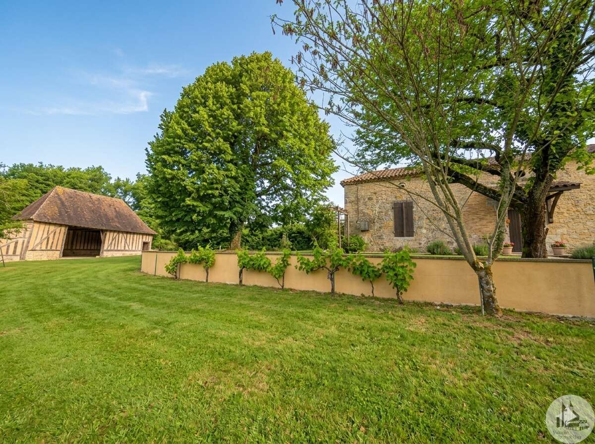 Stenen huis van circa 130 m² bestaande uit een centrale hal van 18,5 m², een woonkamer van 28,3 m² met open haard en houtkachel, een slaapkamer van 33,6 m² met open haard, een keuken van 10,3 m², een doucheruimte van 4,5 m² en een apart toilet van 1,7 m². Zolderruimte over de gehele oppervlakte van het huis, geschikt voor verbouwing. Aangrenzende bijgebouwen: - Wasruimte van 16,2 m² - Berging van 18,4 m² Tegenover het huis een schuur in Périgord-stijl van 7,30 m x 15,30 m (voorheen een kwekerij). Diverse bijgebouwen completeren het perceel: een voormalig stenen kippenhok met drie hokken, twee houten chalets en een tuinschuur. Niet-aaneengesloten bospercelen: – Saint-Avit-Sénieur: • Perceel van 7.150 m² • Perceel van 17.930 m² • Perceel van 4.828 m² • Perceel van 12.490 m² – Paulhiac (Lot-et-Garonne): • Perceel van 10.800 m² • Perceel van 4.023 m² – Saint-Martin-de-Villeréal: • Perceel van 22.565 m²