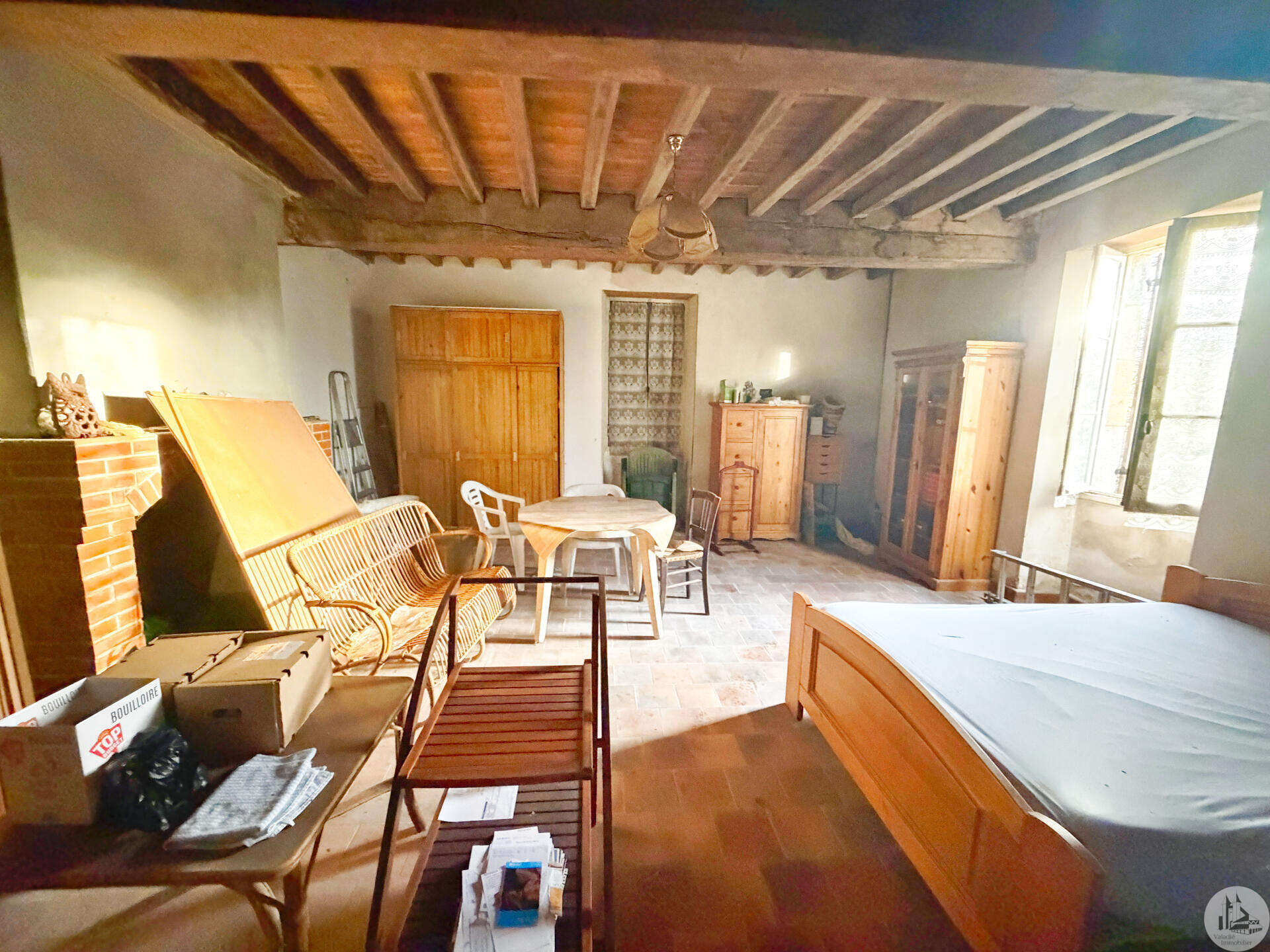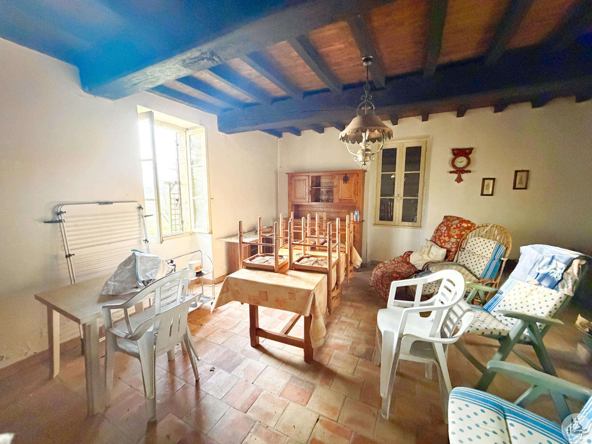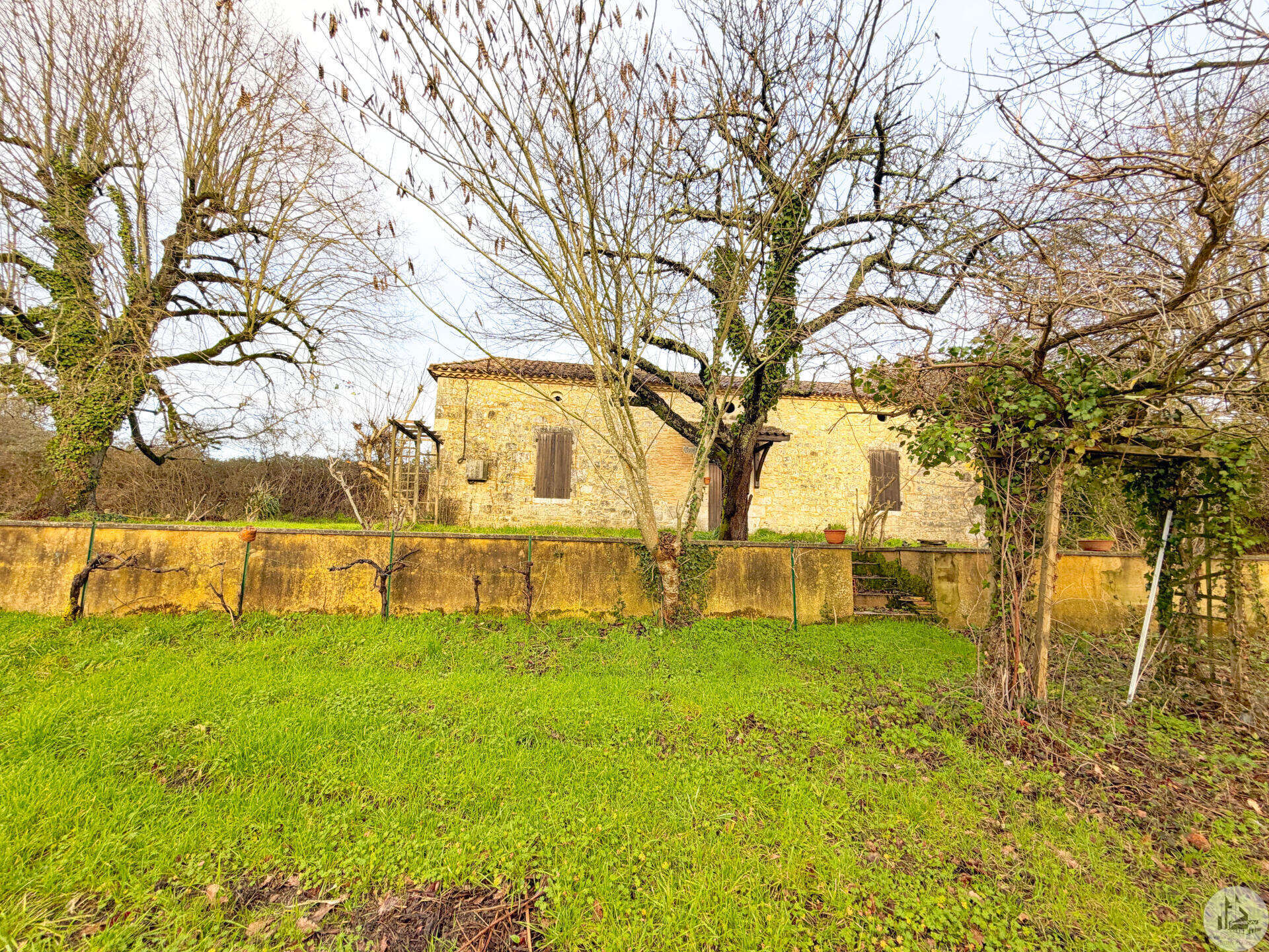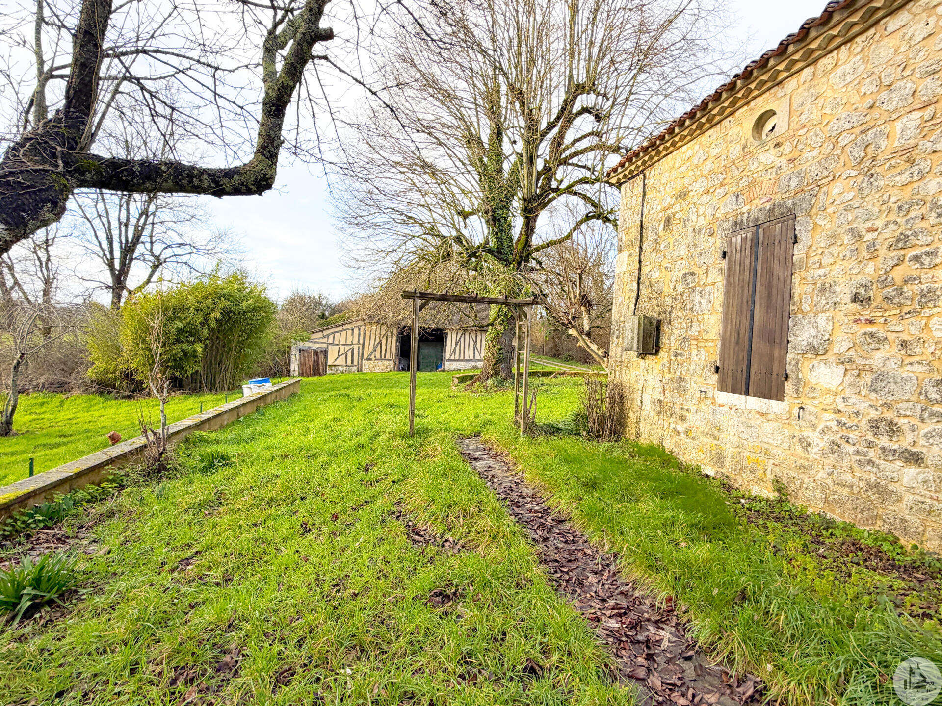 Stenen huis van circa 130 m² bestaande uit een centrale hal van 18,5 m², een woonkamer van 28,3 m² met open haard en houtkachel, een slaapkamer van 33,6 m² met open haard, een keuken van 10,3 m², een doucheruimte van 4,5 m² en een apart toilet van 1,7 m². Zolderruimte over de gehele oppervlakte van het huis, geschikt voor verbouwing. Aangrenzende bijgebouwen: - Wasruimte van 16,2 m² - Berging van 18,4 m² Tegenover het huis een schuur in Périgord-stijl van 7,30 m x 15,30 m (voorheen een kwekerij). Diverse bijgebouwen completeren het perceel: een voormalig stenen kippenhok met drie hokken, twee houten chalets en een tuinschuur. Niet-aaneengesloten bospercelen: – Saint-Avit-Sénieur: • Perceel van 7.150 m² • Perceel van 17.930 m² • Perceel van 4.828 m² • Perceel van 12.490 m² – Paulhiac (Lot-et-Garonne): • Perceel van 10.800 m² • Perceel van 4.023 m² – Saint-Martin-de-Villeréal: • Perceel van 22.565 m²