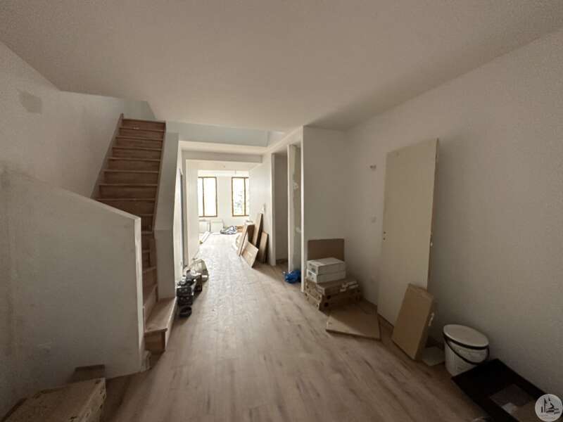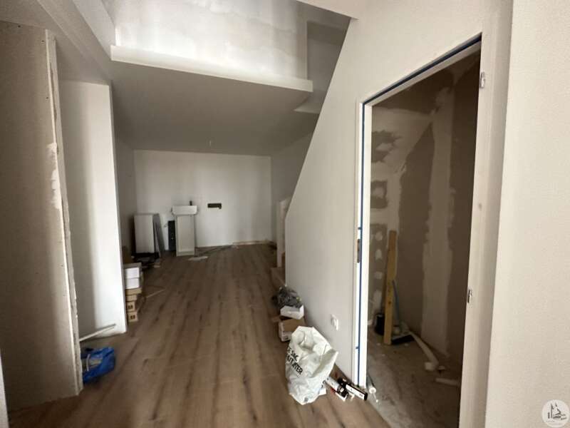 Dorpshuis dat nog afgewerkt moet worden, inclusief materialen. De begane grond bestaat uit een hal. Boven is er een open woonkamer met een gedeeltelijk geïnstalleerde keuken, een woonkamer met een geplande inbouwhaard, een gastentoilet en inbouwkasten. Op de tweede verdieping is er een overloop die leidt naar twee slaapkamers met eigen badkamer en doucheruimtes. Een vrijstaande garage met waterput is ook inbegrepen. De riolering wordt momenteel aangesloten. De inbouwhaard en radiatoren worden geïnstalleerd. Materialen voor de keuken (kasten, kookplaat, oven, afzuigkap), de inbouwkasten, het wandcloset en de doucheruimtes (wastafel, douchebak, kranen, handdoekradiator) zijn aanwezig.