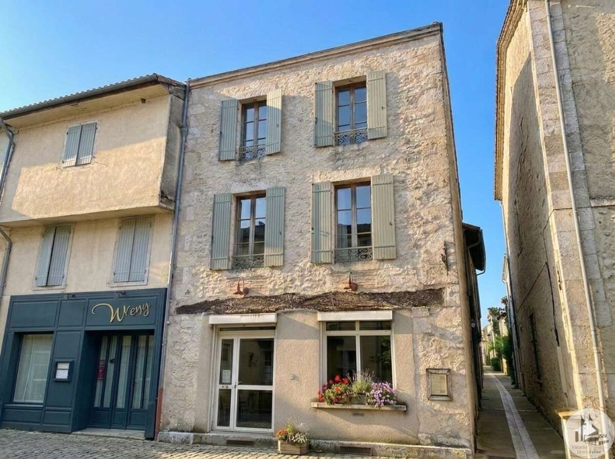 Biedt diverse mogelijkheden. Stenen gebouw in het centrum van Eymet, met op de begane grond een winkel- of kantoorruimte met apart toilet. OP de 1e verdieping Aparte entree voor de twee studio-suites Entreehal met toegang tot de kelder. Houten trap naar de eerste verdieping -1e verdieping en 1e Studio-suite - 2 personen Entree, kitchenette met bar, woon-eetkamer, parketvloer. Aan de nachtzijde, vervolgens een doucheruimte met wastafels en toilet. Op de tweede verdieping 2e Studio-suite - 4 personen Entree, kitchenette met bar; Woon-eetkamer aan de nachtzijde. Millersladder leidt naar de mezzanine en extra slaapgedeelte. Parketvloer, zichtbare stenen, kasten De studio's worden gemeubileerd verkocht. Talrijke investeringsmogelijkheden: verhuur van de 2 studio-suites voor vakanties en als winkel. Pied de terre of alleenstaand wonen Eymet is een mooie en zeer dynamische 13e-eeuwse bastide, gesticht in 1256 door Alphonse de Poitiers. Gelegen op 25 minuten van Bergerac, de luchthaven en het SNCF-station. Dynamisch dorp met zijn vele restaurants en winkels, zijn wekelijkse markt en zijn vele festiviteiten gedurende het hele jaar.