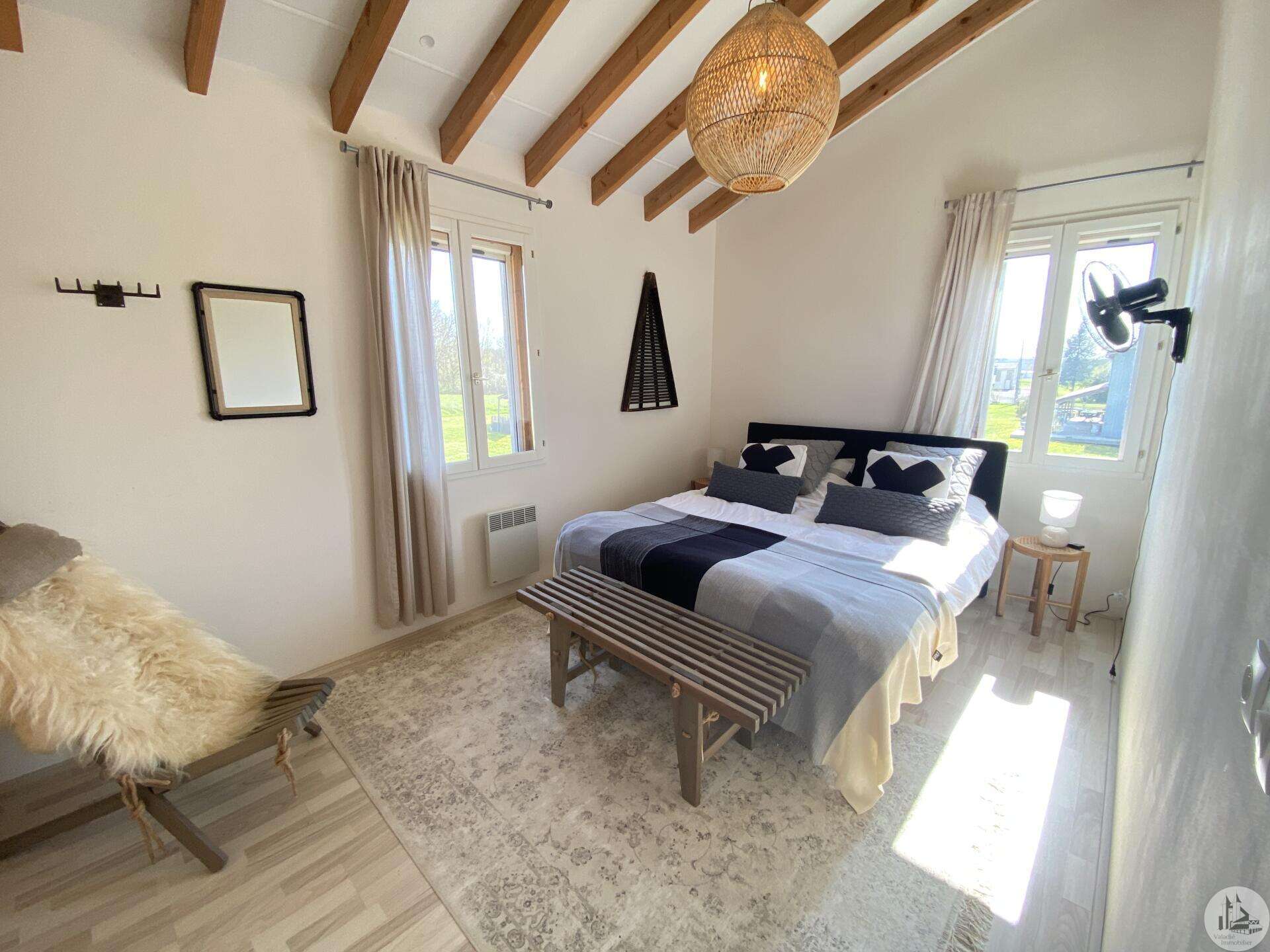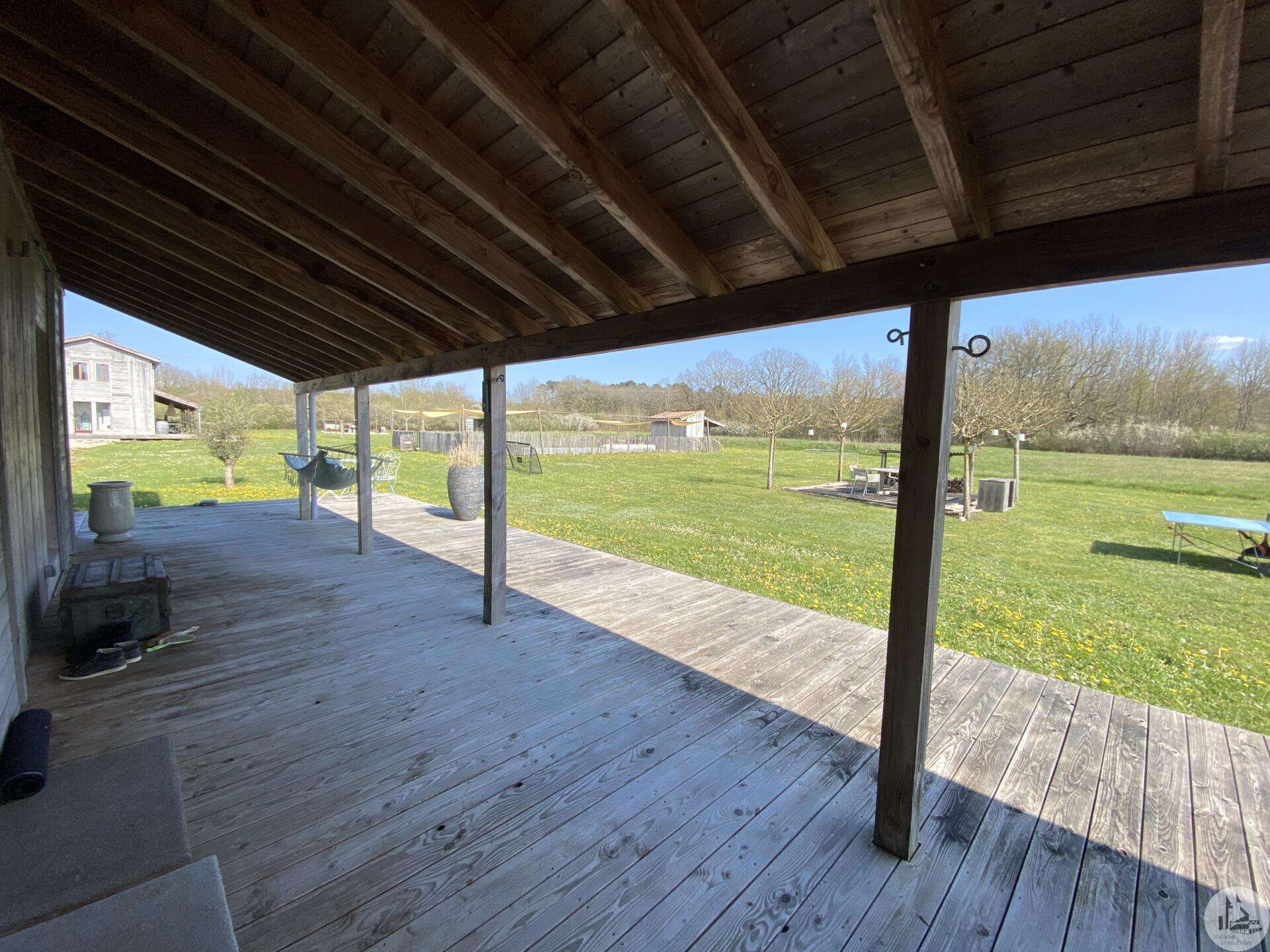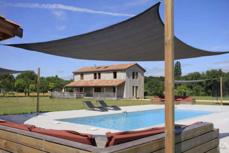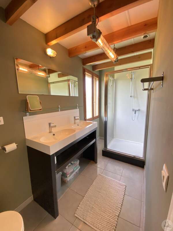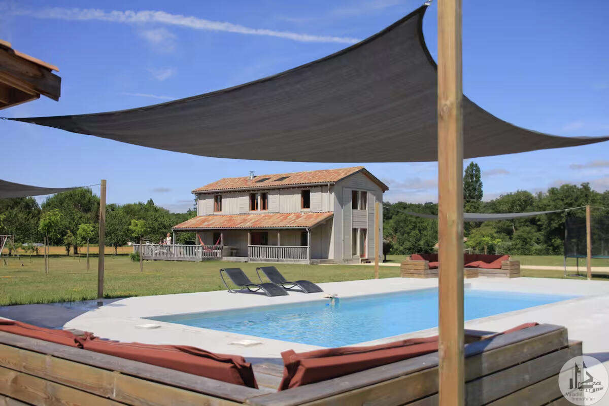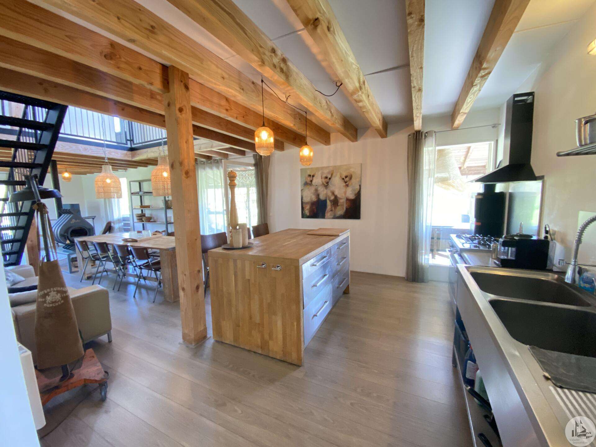 Twee houten huizen, gebouwd in 2009 door een lokale vakman, elk met een woonoppervlakte van circa 135 m², zeer licht en comfortabel. De indeling van het interieur is identiek, als volgt: (sommige decoratieve elementen verschillen van het ene huis tot het andere). Begane grond: - Een grote open woon-/eetkamer/keuken van circa 66 m², met parketvloer, een houtkachel, een ingerichte keuken met kookeiland, fornuis, afzuigkap en twee grote openslaande deuren. - Een bijkeuken met toilet en parketvloer. - Een stookruimte met boiler, meterkast en een deur naar buiten. Bovenverdieping: (bereikbaar via een metalen trap) - Een galerij van circa 14 m², met parketvloer. - Twee slaapkamers van circa 9 en 13,4 m² aan één zijde, elk met een eigen badkamer (douche, dubbele wastafel, toilet, tegelvloer). - Twee slaapkamers van respectievelijk circa 10,6 en 9,02 m² aan de andere kant, elk met een eigen badkamer (bad, wastafel, handdoekradiator, tegelvloer). Comfortvoorzieningen: - Elektrische radiatorverwarming. - Inbouwkasten in alle slaapkamers. - Septische tank voor de afvoer. Een groot overdekt terras bij elk huis (14m x 4m). Een gedeeld chloorzwembad van 11m x 4m voor beide huizen, omgeven door een betonnen plaat en een hek. 1,49 hectare grond met een poolhouse en twee barbecueplaatsen.