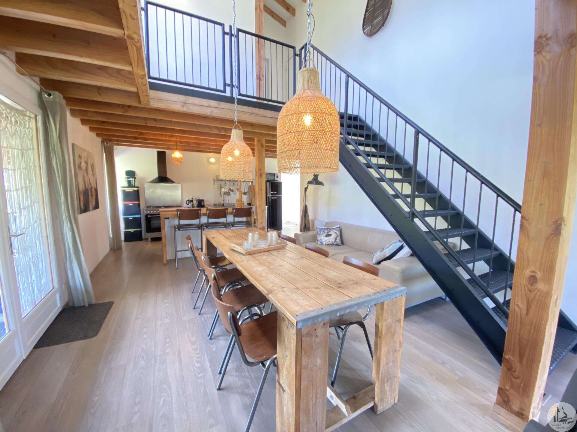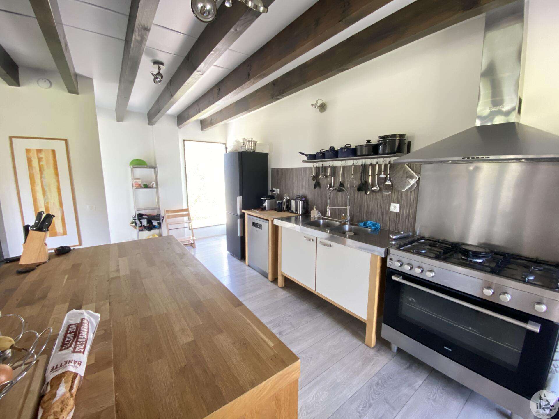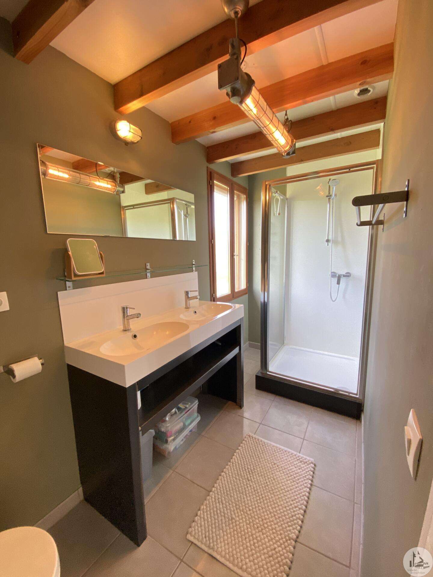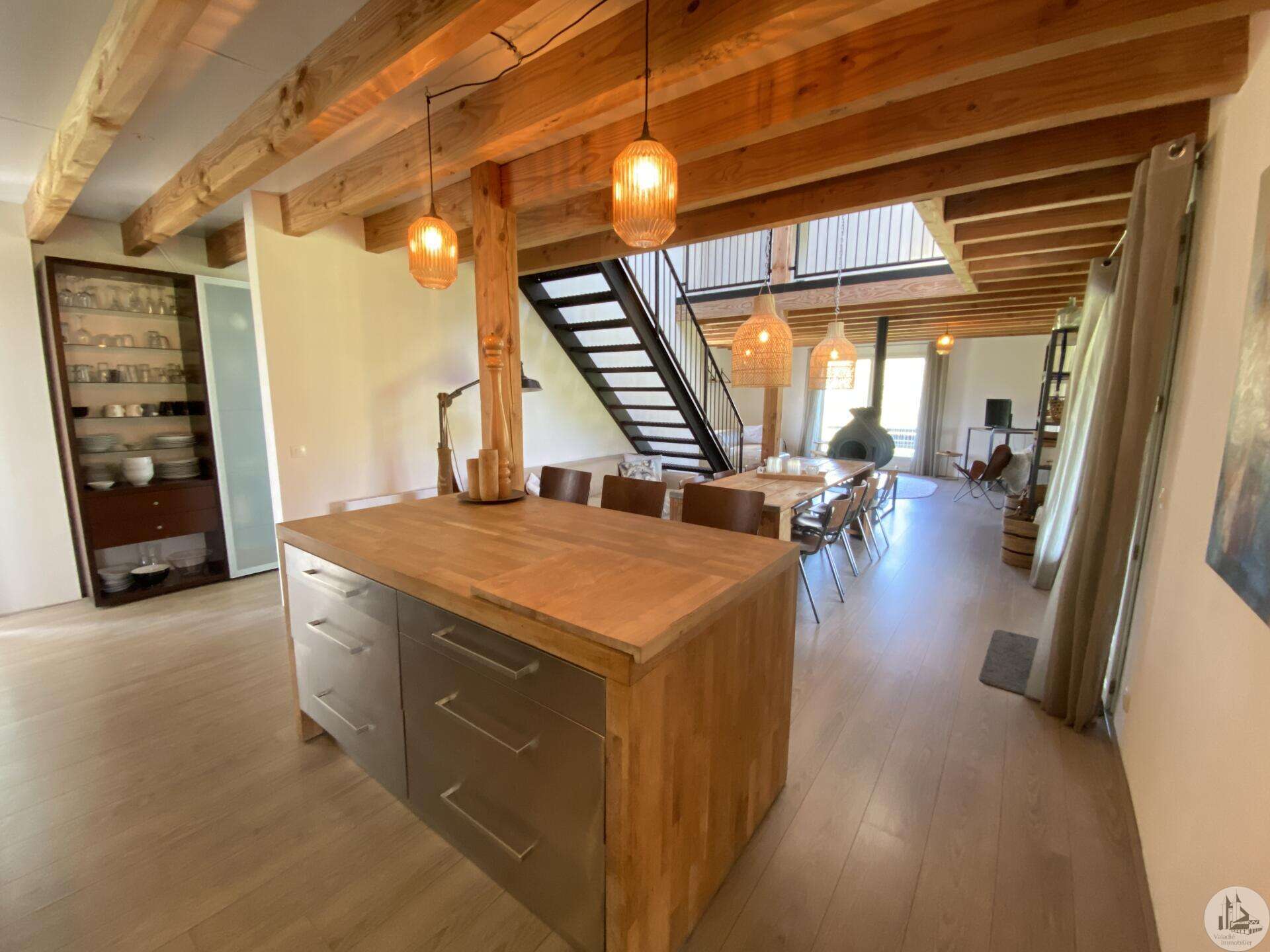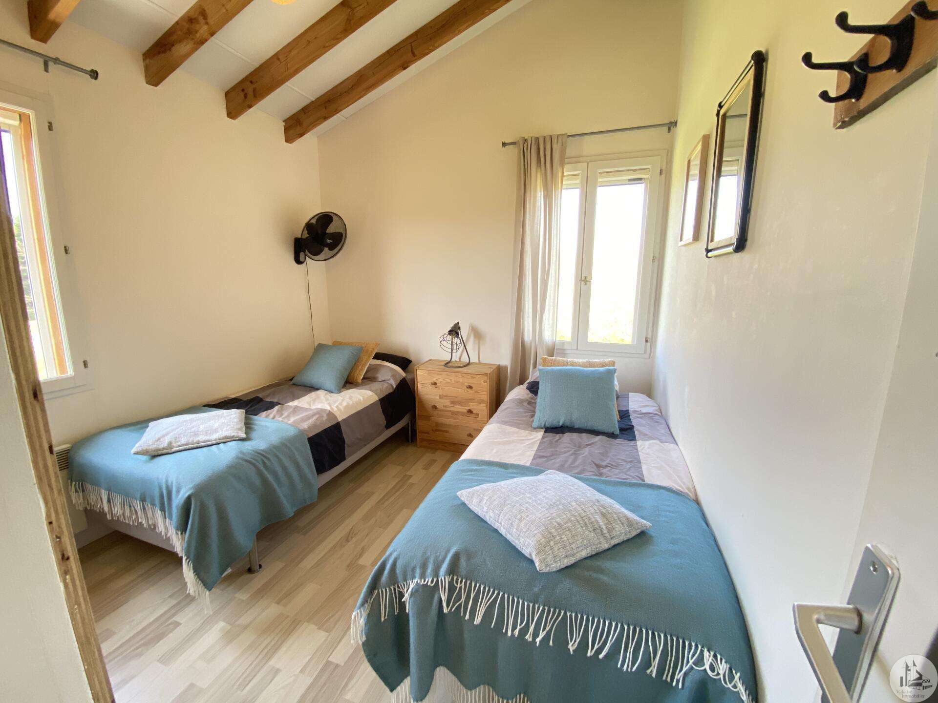 Twee houten huizen, gebouwd in 2009 door een lokale vakman, elk met een woonoppervlakte van circa 135 m², zeer licht en comfortabel. De indeling van het interieur is identiek, als volgt: (sommige decoratieve elementen verschillen van het ene huis tot het andere). Begane grond: - Een grote open woon-/eetkamer/keuken van circa 66 m², met parketvloer, een houtkachel, een ingerichte keuken met kookeiland, fornuis, afzuigkap en twee grote openslaande deuren. - Een bijkeuken met toilet en parketvloer. - Een stookruimte met boiler, meterkast en een deur naar buiten. Bovenverdieping: (bereikbaar via een metalen trap) - Een galerij van circa 14 m², met parketvloer. - Twee slaapkamers van circa 9 en 13,4 m² aan één zijde, elk met een eigen badkamer (douche, dubbele wastafel, toilet, tegelvloer). - Twee slaapkamers van respectievelijk circa 10,6 en 9,02 m² aan de andere kant, elk met een eigen badkamer (bad, wastafel, handdoekradiator, tegelvloer). Comfortvoorzieningen: - Elektrische radiatorverwarming. - Inbouwkasten in alle slaapkamers. - Septische tank voor de afvoer. Een groot overdekt terras bij elk huis (14m x 4m). Een gedeeld chloorzwembad van 11m x 4m voor beide huizen, omgeven door een betonnen plaat en een hek. 1,49 hectare grond met een poolhouse en twee barbecueplaatsen.