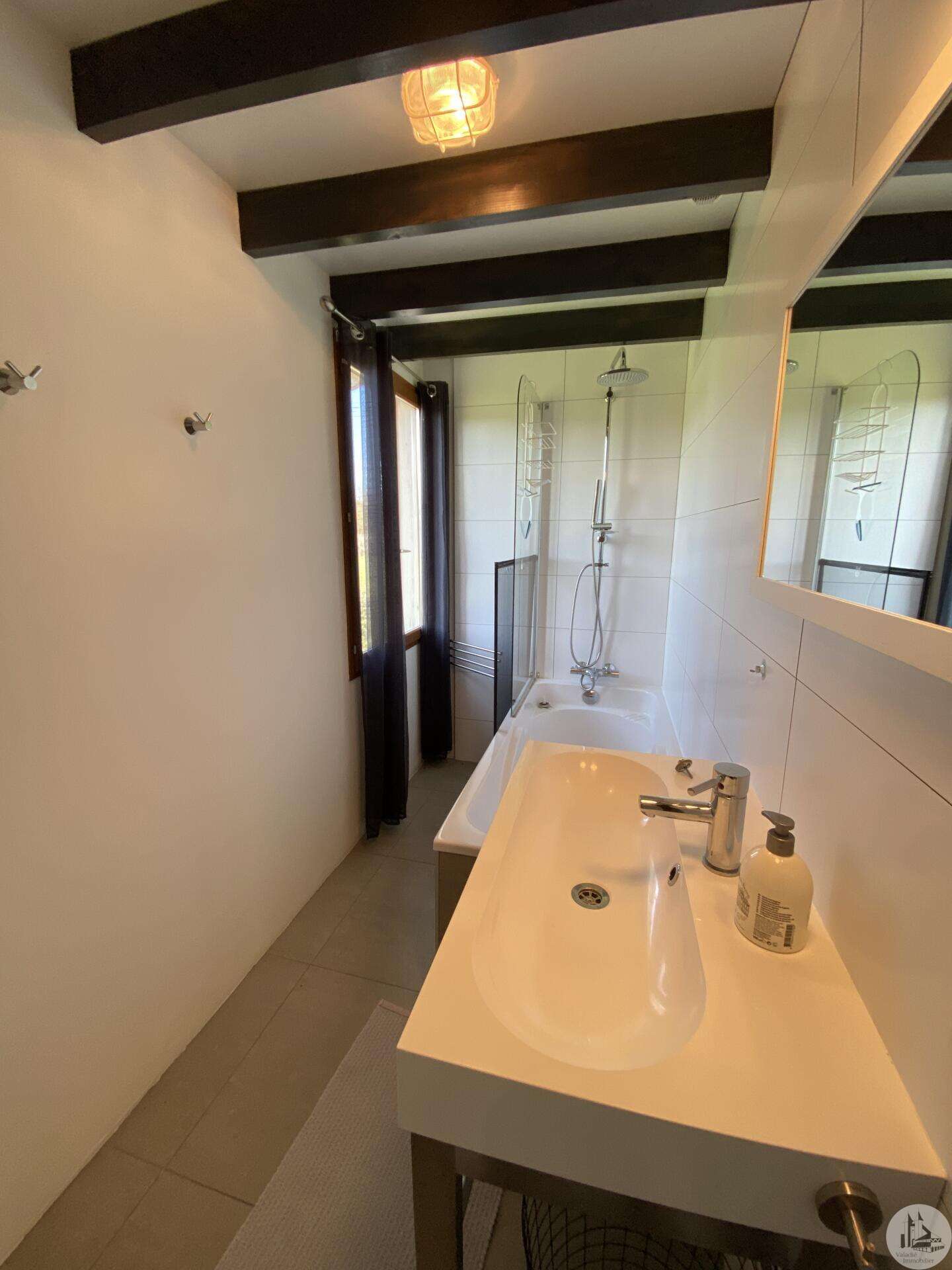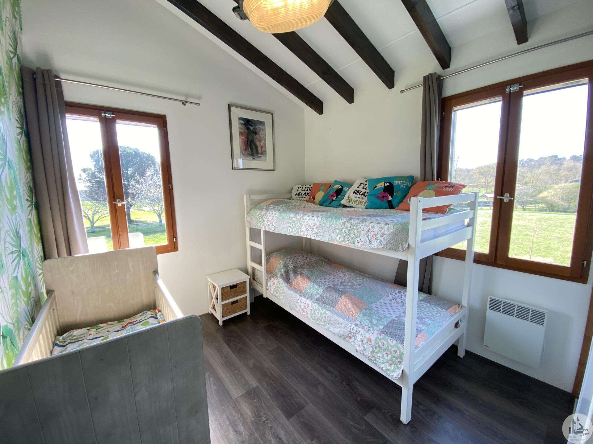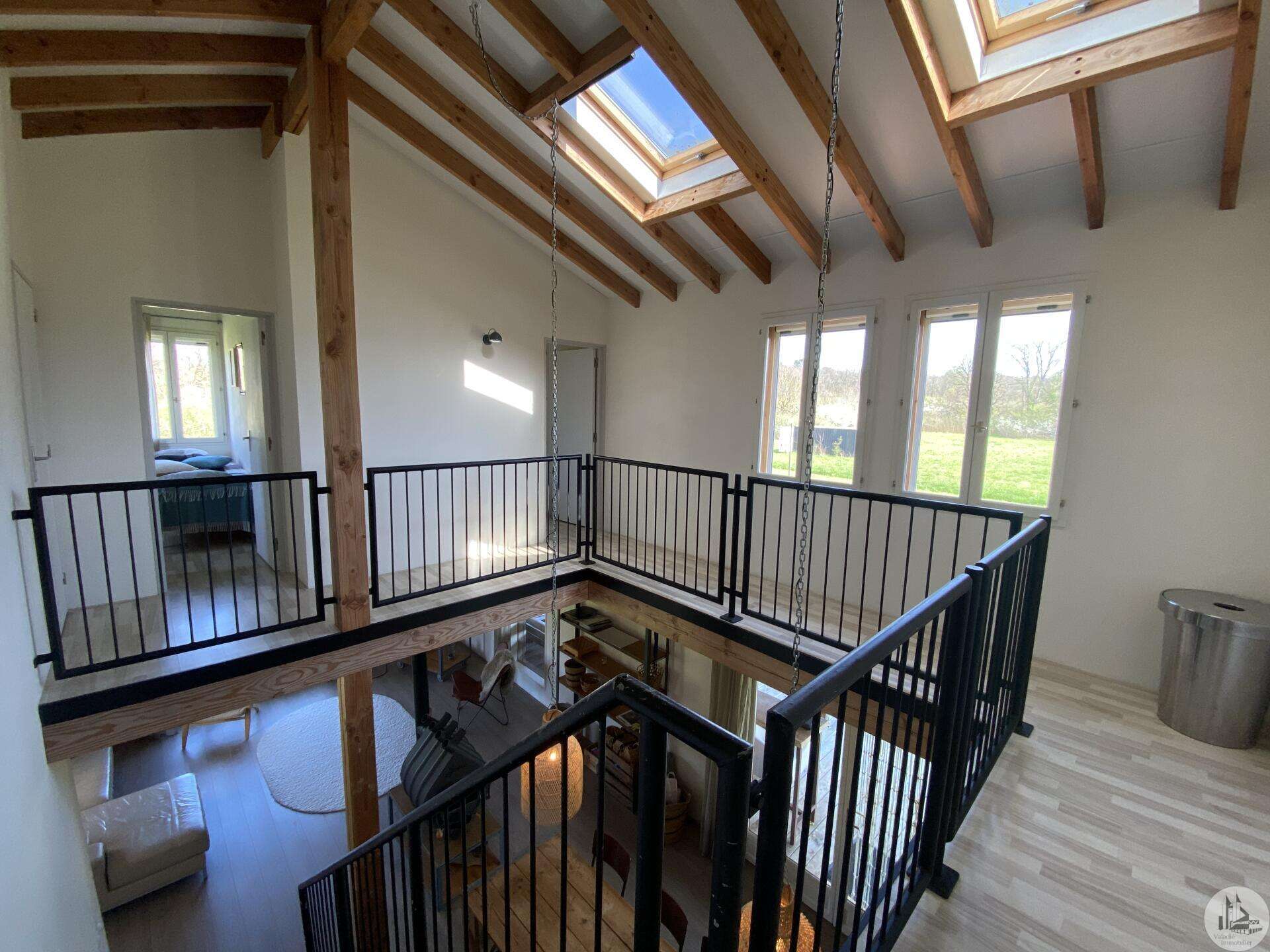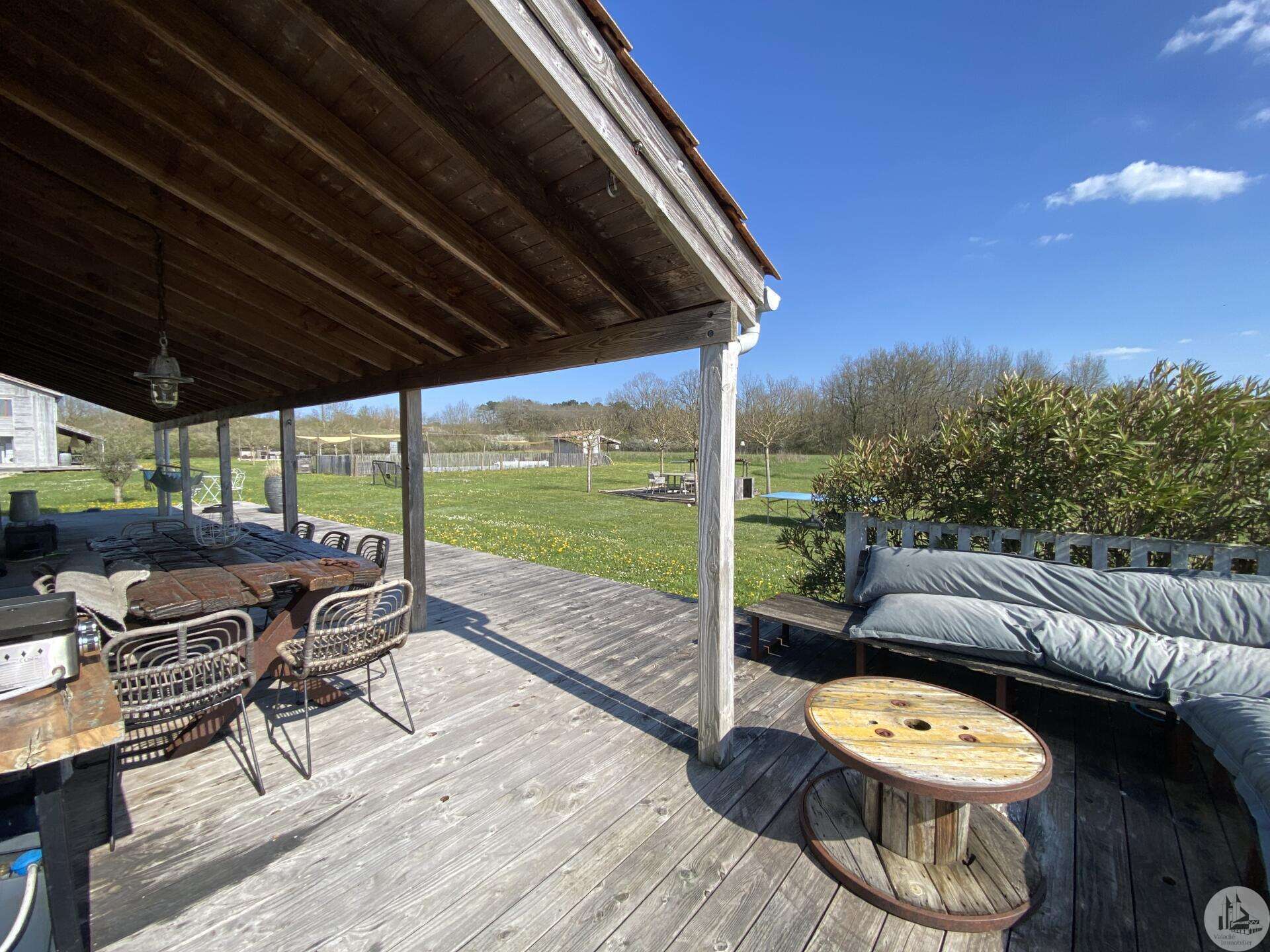 Twee houten huizen, gebouwd in 2009 door een lokale vakman, elk met een woonoppervlakte van circa 135 m², zeer licht en comfortabel. De indeling van het interieur is identiek, als volgt: (sommige decoratieve elementen verschillen van het ene huis tot het andere). Begane grond: - Een grote open woon-/eetkamer/keuken van circa 66 m², met parketvloer, een houtkachel, een ingerichte keuken met kookeiland, fornuis, afzuigkap en twee grote openslaande deuren. - Een bijkeuken met toilet en parketvloer. - Een stookruimte met boiler, meterkast en een deur naar buiten. Bovenverdieping: (bereikbaar via een metalen trap) - Een galerij van circa 14 m², met parketvloer. - Twee slaapkamers van circa 9 en 13,4 m² aan één zijde, elk met een eigen badkamer (douche, dubbele wastafel, toilet, tegelvloer). - Twee slaapkamers van respectievelijk circa 10,6 en 9,02 m² aan de andere kant, elk met een eigen badkamer (bad, wastafel, handdoekradiator, tegelvloer). Comfortvoorzieningen: - Elektrische radiatorverwarming. - Inbouwkasten in alle slaapkamers. - Septische tank voor de afvoer. Een groot overdekt terras bij elk huis (14m x 4m). Een gedeeld chloorzwembad van 11m x 4m voor beide huizen, omgeven door een betonnen plaat en een hek. 1,49 hectare grond met een poolhouse en twee barbecueplaatsen.