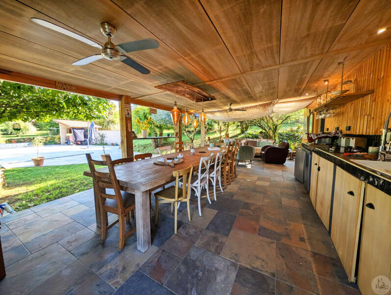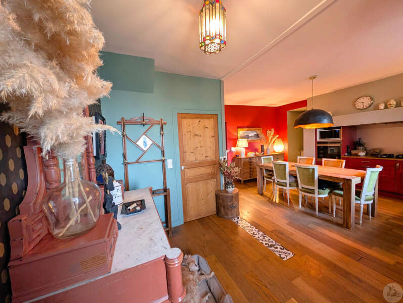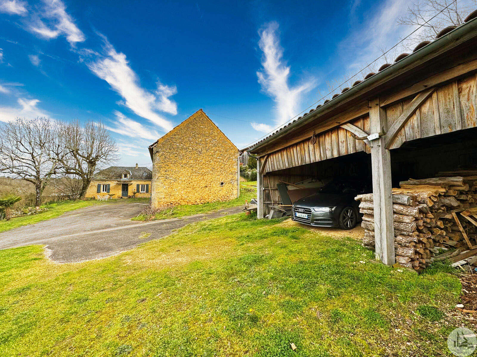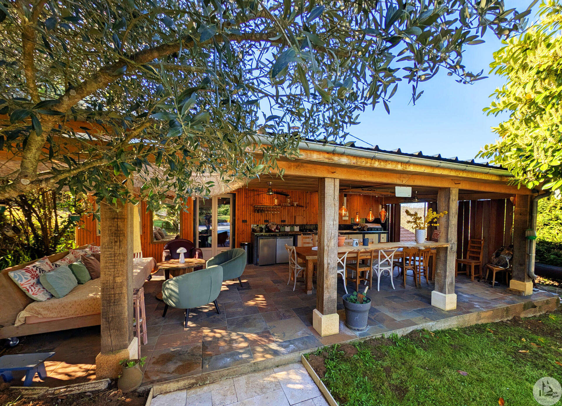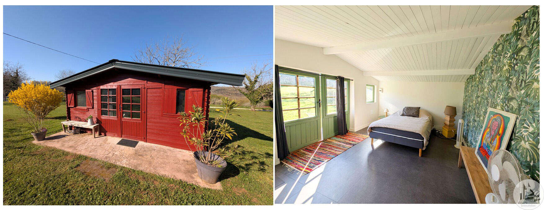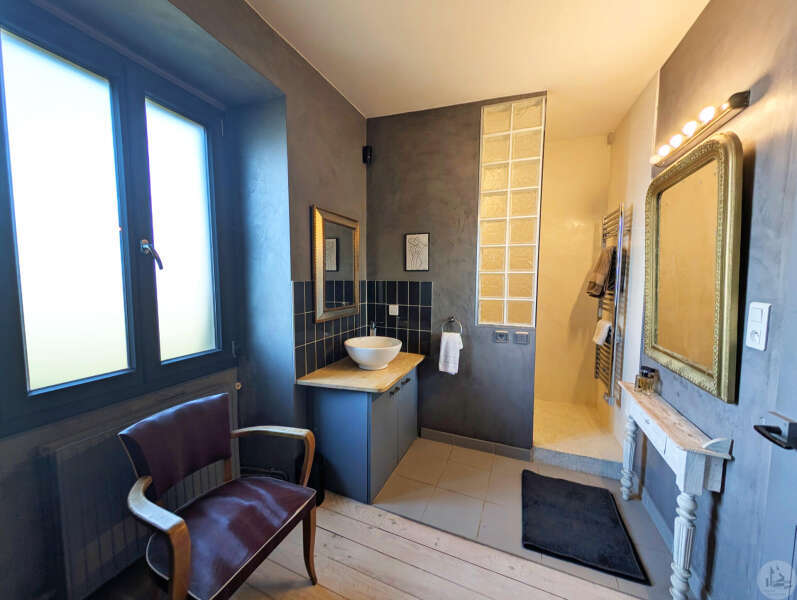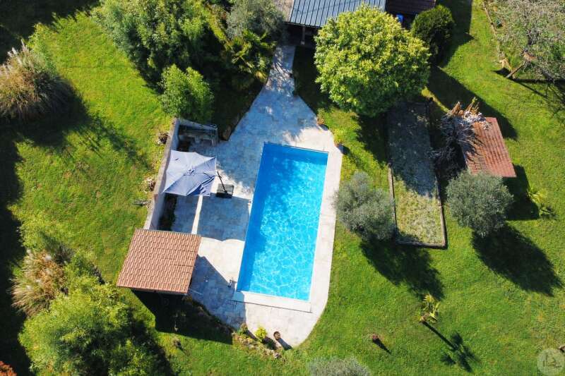 Op tuinniveau: Entreehal, volledig uitgeruste keuken/eetkamer (17 m²), bijkeuken/wasruimte (4 m²), woonkamer (32 m²) met houtkachel en toegang tot een groot, zeer aangenaam overdekt terras van 50 m² met buitenkeuken en uitzicht op het zwembad en de tuin, slaapkamer 1 (17 m²) met eigen badkamer met airconditioning, douche en kleedkamer (8 m²), slaapkamer 2 (10,5 m²), slaapkamer 3 (15 m²) met eigen ingang, douche en toilet. Bovenverdieping: Een overloop, twee slaapkamers op zolder met airconditioning en een toilet met wastafel. Zwembad (9x4 m, aangelegd in 2023) met een groot terras en een kleine overkapping, en een berging voor zwembadapparatuur. Bijgebouwen: - Een houten chalet met een slaapkamer van 16 m². - Een grote schuur van circa 130 m² bruikbare vloeroppervlakte verdeeld over twee verdiepingen, waarvan de tweede verdieping gelijkvloers is met toegang tot de achtertuin, waardoor er mogelijkheden zijn voor een vakantiehuisje of bed & breakfast. - Een carport van circa 50 m². - Een broodoven. - Een kleine stal. - Een kelder. * Verwarming op aardgas (ketel uit 2020) + Airconditioning (3 slaapkamers) + Houtkachel. * Dubbele beglazing. * Glasvezelinternet. * Alarmsysteem. * Individuele septic tank.