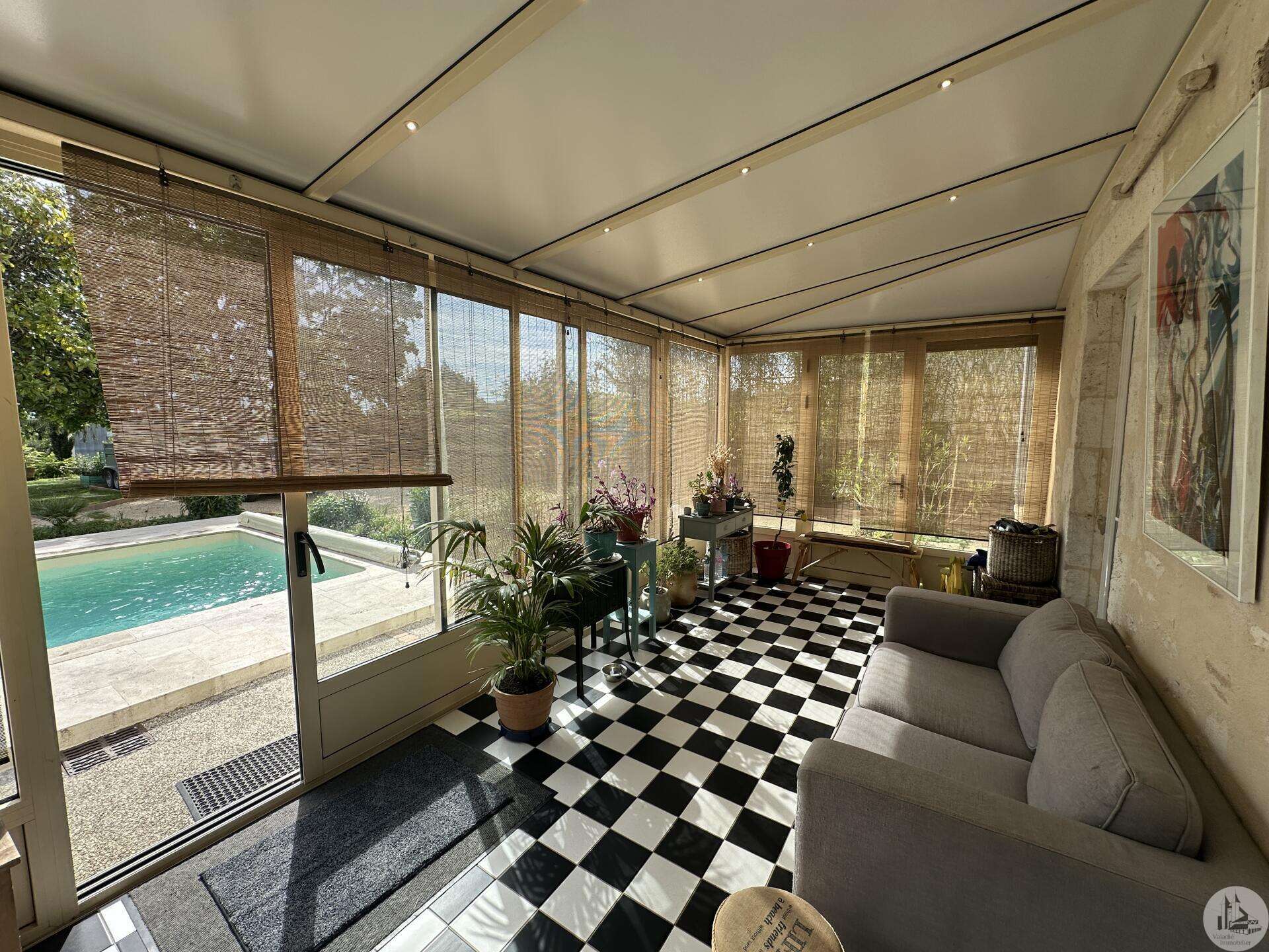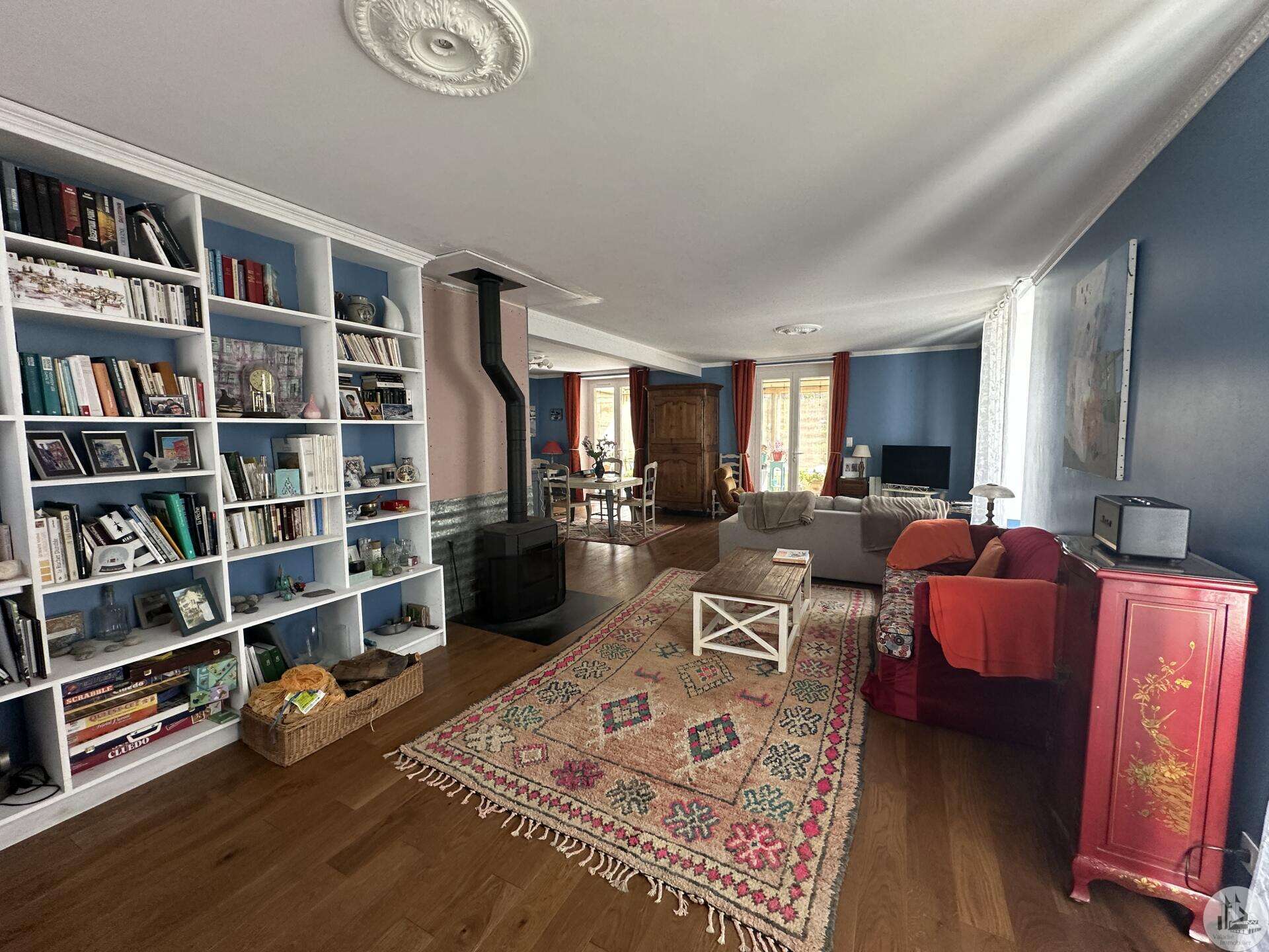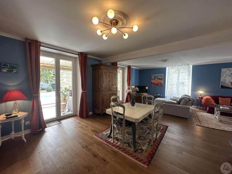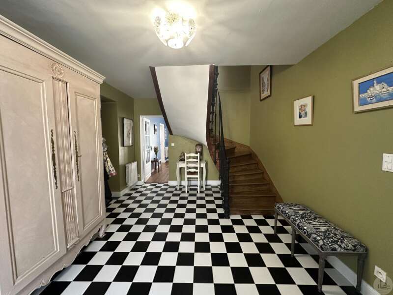 Karakteristiek 18e-eeuws huis met apart bijgebouw, zwembad en aangelegde tuin Dit charmante 18e-eeuwse dorpshuis, gelegen in een rustige omgeving, combineert authenticiteit, royale afmetingen en uitstekende mogelijkheden voor het ontvangen van gasten. Bij binnenkomst leidt een hal (17,4 m²) naar een gastentoilet met wastafel en vervolgens naar een prachtige, warme en uitnodigende L-vormige woonkamer (53 m²) met een houtkachel en een veranda (19 m²). De volledig uitgeruste keuken (18,7 m²), voorzien van een SMEG-fornuis, heeft directe toegang tot de buitenruimte. Een bijkeuken/voorraadkamer (12 m²) met toegang tot de kelder completeert deze verdieping. Boven leidt de overloop (12 m²) naar: een grote kast (2 m²), drie slaapkamers (15,6, 13 en 16,4 m²), een ruime kamer die kan dienen als naaikamer (31 m²), kantoor of speelkamer, en een badkamer met ligbad (7,6 m²), dubbele wastafel en toilet. Een hal met kasten (5 m²) biedt vanaf deze verdieping toegang tot het bijgebouw. Op de bovenste verdieping: 160 m² zolderruimte met schuine plafonds en een geïsoleerd dak. Een bijgebouw met een aparte ingang vanaf de straat, dat tevens verbonden is met het hoofdgebouw, biedt tal van mogelijkheden: gastenverblijf, een bedrijf aan huis of verhuur. Het bestaat uit een woonkamer (31,2 m²) met een open keuken naar een terras, een doucheruimte en toilet, en boven twee slaapkamers (10,8 m² en 9 m²), een badkamer (3,8 m²) en een apart toilet. Buiten kunt u genieten van een prachtig aangelegde tuin (met talloze fruitbomen) en bloemperken, compleet met een terras, een zoutwaterzwembad van 3,40 x 6,30 m (1,40 m diep, aangelegd in juni 2024), een werkplaats, een poolhouse, een barbecueplek van 12 m², een vijver en een waterput. Een zeldzaam en charmant object, ideaal voor een gezin, een bed & breakfast of een levensstijl die wonen en werken combineert.