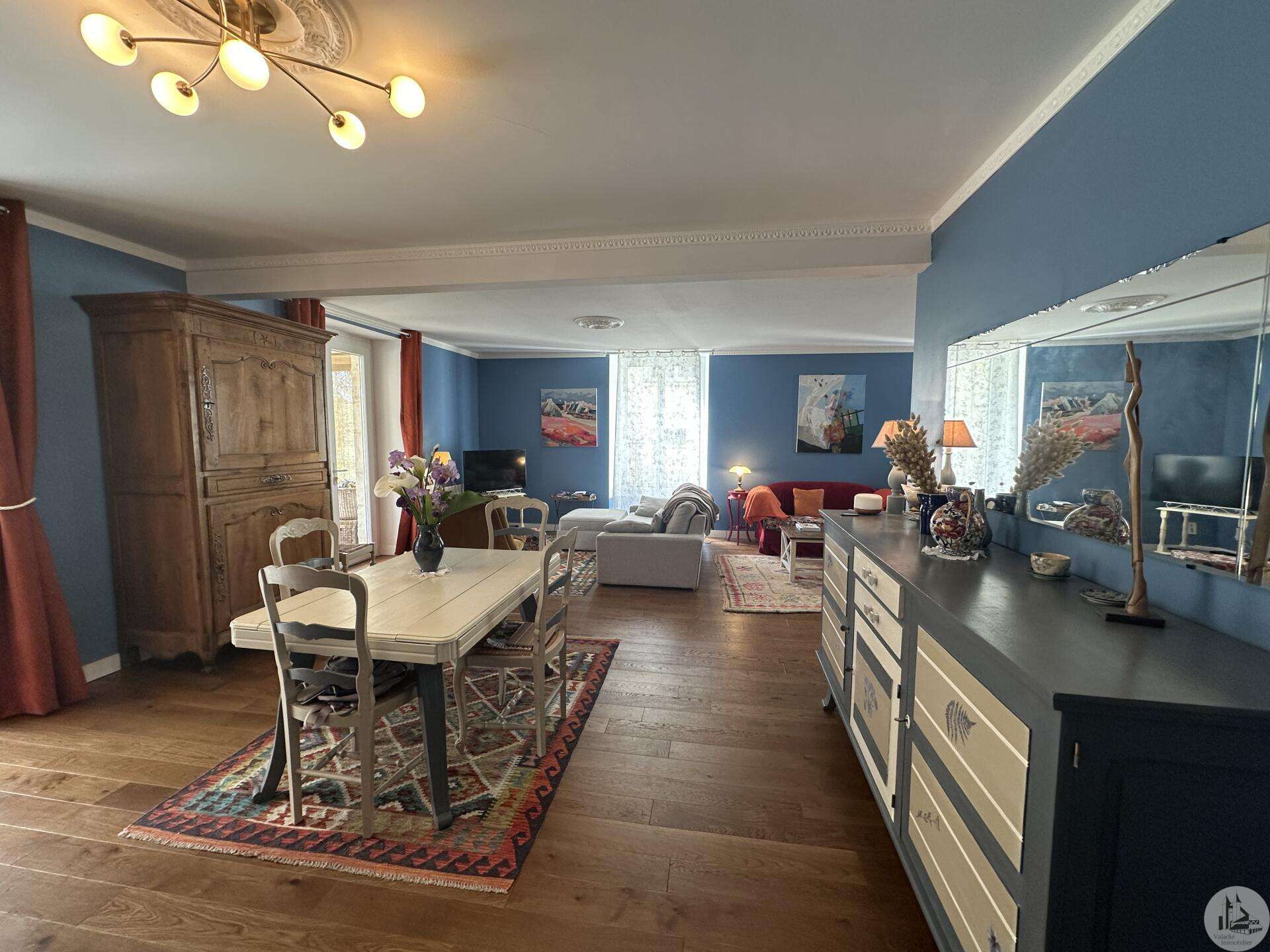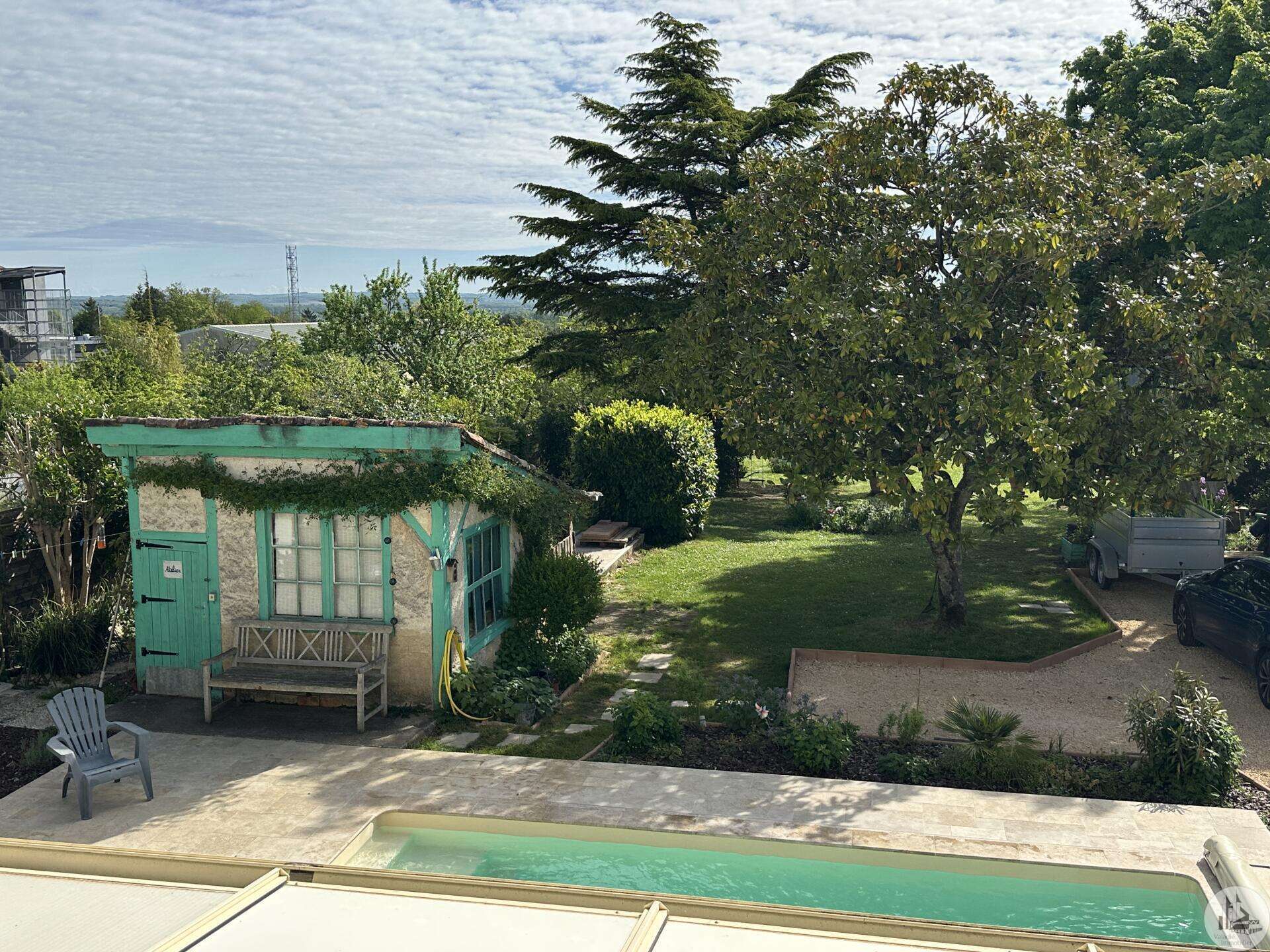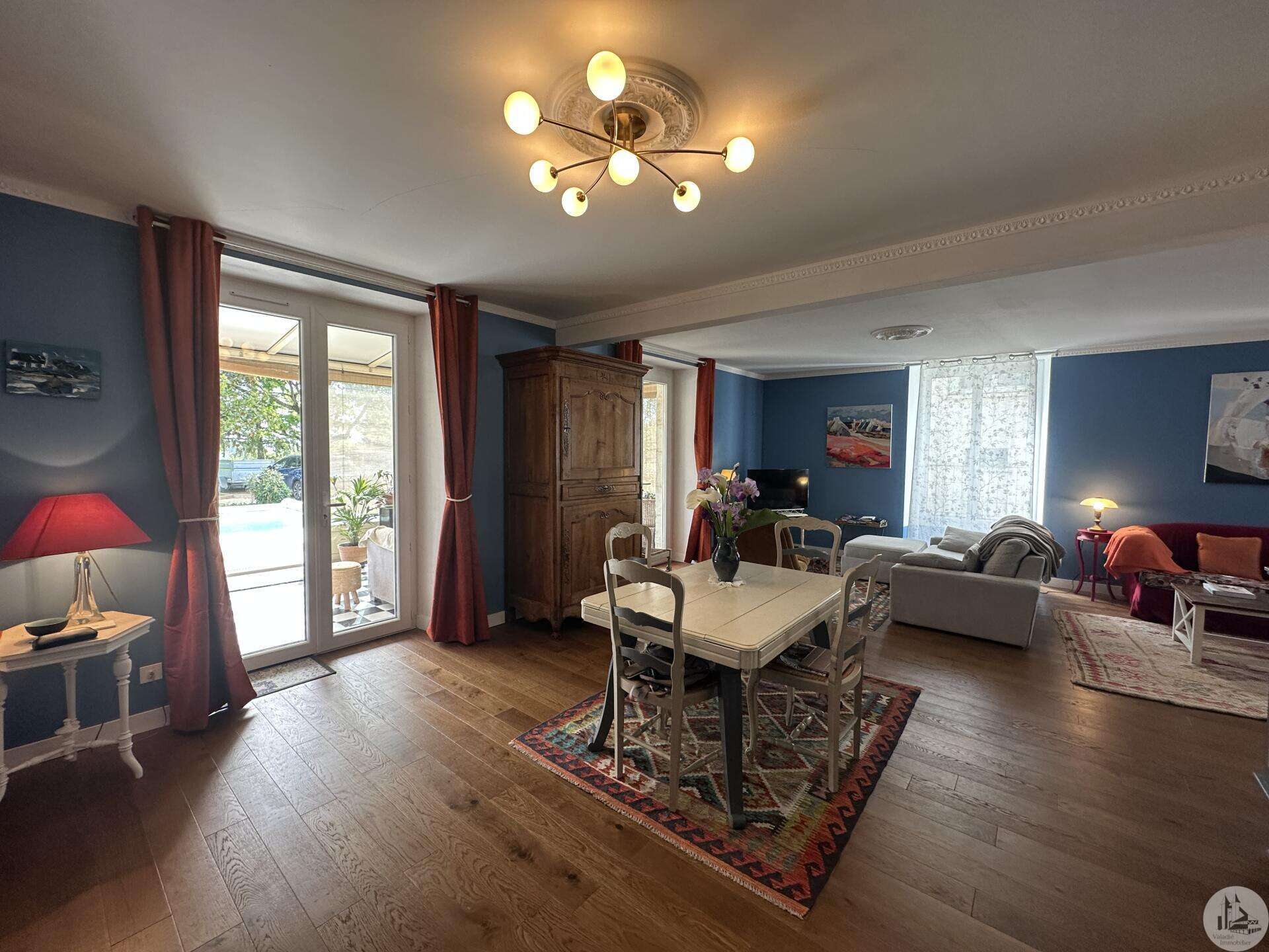 Karakteristiek 18e-eeuws huis met apart bijgebouw, zwembad en aangelegde tuin Dit charmante 18e-eeuwse dorpshuis, gelegen in een rustige omgeving, combineert authenticiteit, royale afmetingen en uitstekende mogelijkheden voor het ontvangen van gasten. Bij binnenkomst leidt een hal (17,4 m²) naar een gastentoilet met wastafel en vervolgens naar een prachtige, warme en uitnodigende L-vormige woonkamer (53 m²) met een houtkachel en een veranda (19 m²). De volledig uitgeruste keuken (18,7 m²), voorzien van een SMEG-fornuis, heeft directe toegang tot de buitenruimte. Een bijkeuken/voorraadkamer (12 m²) met toegang tot de kelder completeert deze verdieping. Boven leidt de overloop (12 m²) naar: een grote kast (2 m²), drie slaapkamers (15,6, 13 en 16,4 m²), een ruime kamer die kan dienen als naaikamer (31 m²), kantoor of speelkamer, en een badkamer met ligbad (7,6 m²), dubbele wastafel en toilet. Een hal met kasten (5 m²) biedt vanaf deze verdieping toegang tot het bijgebouw. Op de bovenste verdieping: 160 m² zolderruimte met schuine plafonds en een geïsoleerd dak. Een bijgebouw met een aparte ingang vanaf de straat, dat tevens verbonden is met het hoofdgebouw, biedt tal van mogelijkheden: gastenverblijf, een bedrijf aan huis of verhuur. Het bestaat uit een woonkamer (31,2 m²) met een open keuken naar een terras, een doucheruimte en toilet, en boven twee slaapkamers (10,8 m² en 9 m²), een badkamer (3,8 m²) en een apart toilet. Buiten kunt u genieten van een prachtig aangelegde tuin (met talloze fruitbomen) en bloemperken, compleet met een terras, een zoutwaterzwembad van 3,40 x 6,30 m (1,40 m diep, aangelegd in juni 2024), een werkplaats, een poolhouse, een barbecueplek van 12 m², een vijver en een waterput. Een zeldzaam en charmant object, ideaal voor een gezin, een bed & breakfast of een levensstijl die wonen en werken combineert.