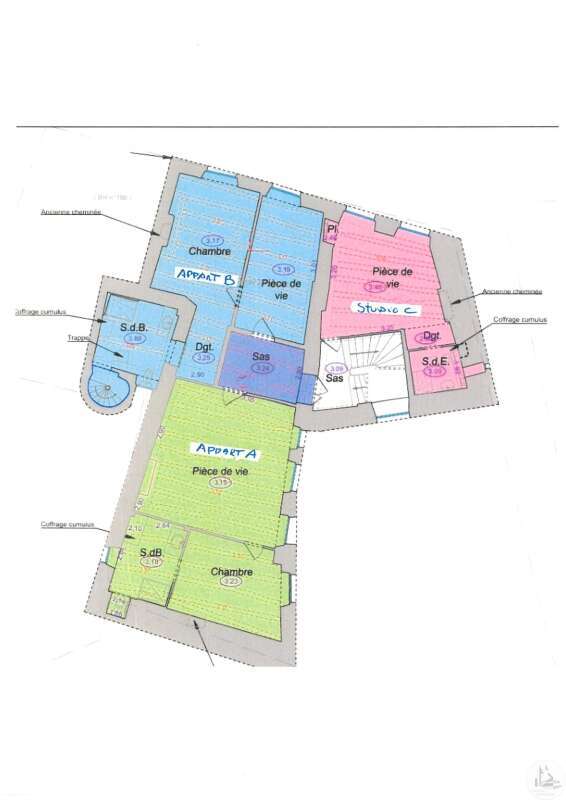 Appartement A: 56 m² Een lichte, open woonruimte met woonkamer, eetkamer en keuken. Een slaapkamer met eigen badkamer. * Dubbele beglazing * Airconditioning (omkeerbaar) Appartement B: 63 m² Een woonruimte met woonkamer, eetkamer en keuken. Een slaapkamer, een badkamer met douche en bad. Een kamer die renovatie behoeft. * Dubbele beglazing * Airconditioning (omkeerbaar) Appartement C: Studio 25 m² * Dubbele beglazing * Airconditioning (omkeerbaar)