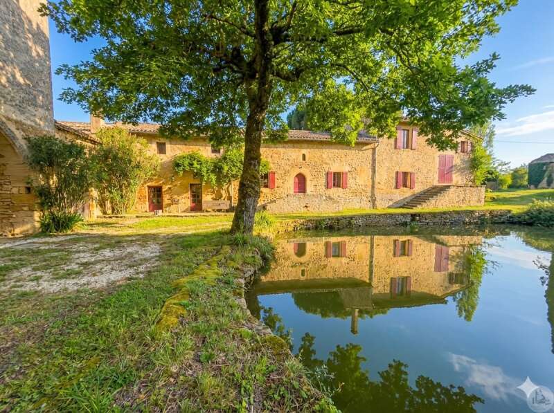 30 km ten zuiden van Bergerac, aan de voet van een van de mooiste kastelen van de Dordogne, een 15e-eeuws herenhuis bestaande uit een woonhuis, gîtes (die momenteel worden gerenoveerd) en bijgebouwen op ongeveer 28 hectare aan weilanden en bossen.