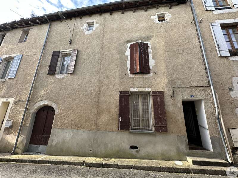Een twee verdiepingen tellend stenen dorpshuis dat volledig gerenoveerd moet worden, met een aangebouwde schuur en duiventil, een aparte schuur en omliggend land.