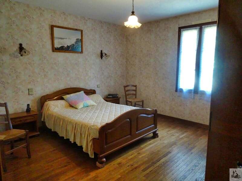 A house built in 1992-1993 on basement, half brick and half in parpains, comprising : - A veranda of 19.3 m2 approx, tiled floors and bay window double glazing. - An entrance of 7.5 m2 env with wall cupboard, tiled floor, - A kitchen of 16 m2 approx with tiled floor and fitted with cupboards, gas hob, oven, dishwasher, sink. A door-window opening on to the veranda. - A living room of 22 m2 env with fireplace with insert, tiled flooring and a door window on a balcony. - an independent wc 2 m2 approx - a bathroom of 7.6 m2 approx with tiled floor, faience on the walls, and a bathtub, a vanity unit and a bidet. - A room of 11.5 m2 approx, wooden floor - A room of 13.5 m2 approx floors. - A room of 16.5 m2 approx floors. A basement of 120 m2 approx under the entire surface of the house, divided into several rooms including a garage with a door, a pantry, a cellar, a workshop and storage room. Wood joinery with double glazing and wooden shutters flying. The windows are equipped with mosquito nets. Electric heating and insert in the living room. Sanitation by septic tank non-compliant (to redo the secondary treatment). Hot water Production by electric cumulus. Attic is accessible and insulated with glass wool and stirodure. Outside : Garden 4990 m2 env with an orchard.