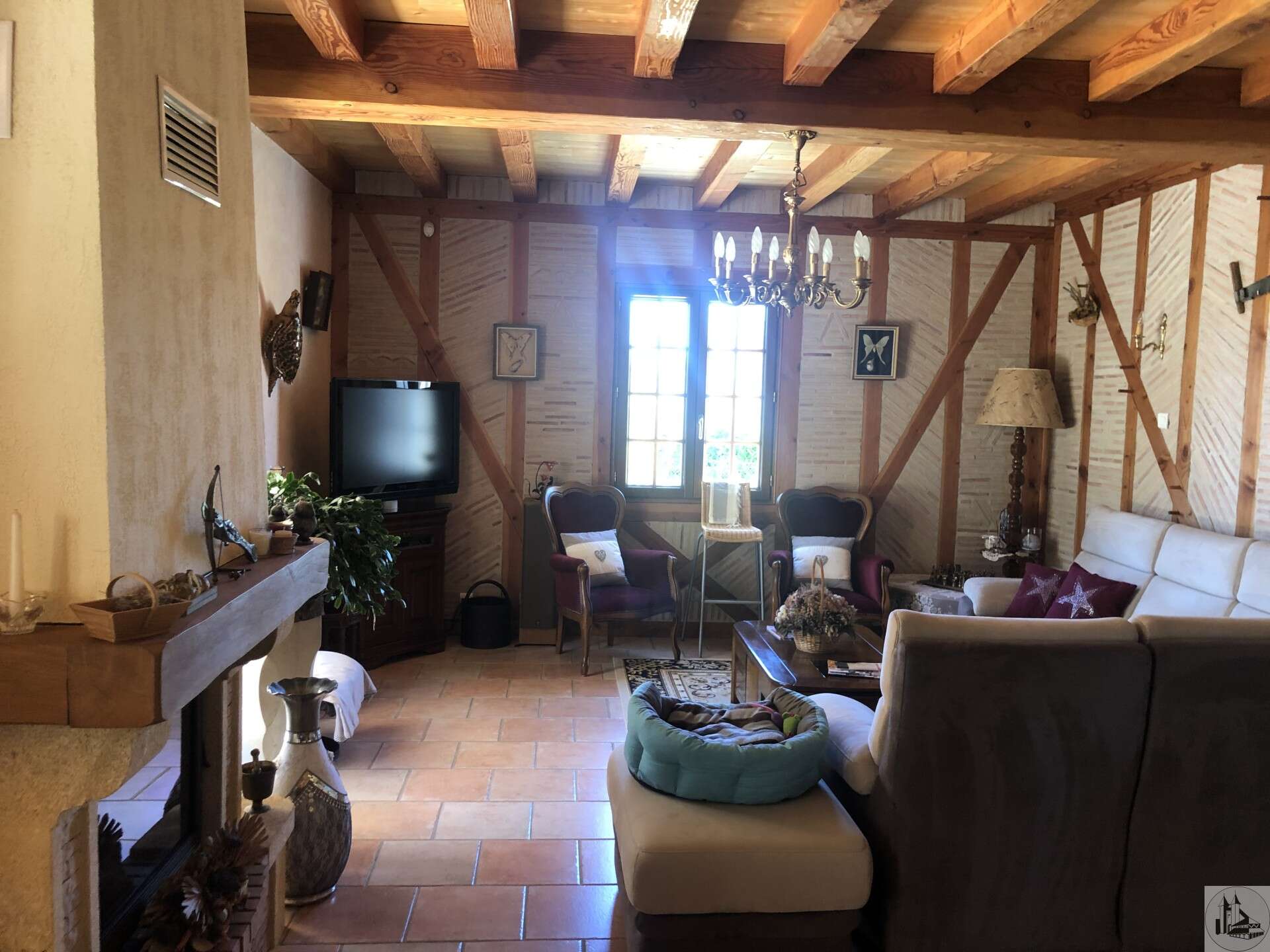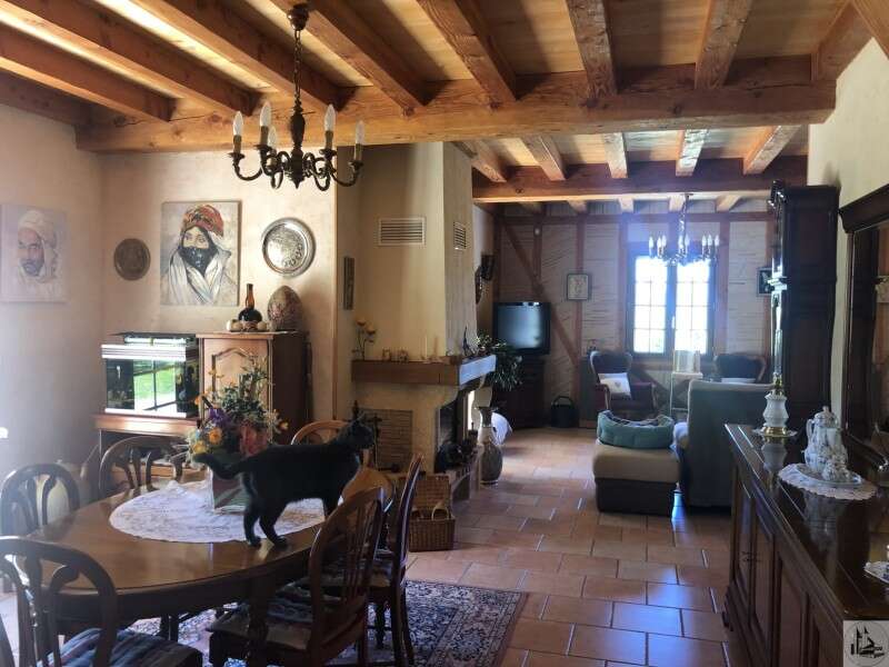 House year 2007 of 125 m2 approximately which is composed an entrance with a porch of 3,30 m 2, a hall 13,70m2 with a staircase leading to the loft with a surface area of 12,70m2. The hall leads to a lounge of 21,75m2 with a fireplace with insert, a living room of 18,80m2 with a porch of 8,14m2, a kitchen of 18,50m2, corridor of distribution of 4,10m2 with access to a cellar of 4,21m2 with a point of water, an independent wc and a door giving access to a garage tiled of 33,40m2 with an electric gate. A suite of 12,45m2 with bathroom and shower of 9,93m 2,Furniture 2 basins, an independent wc. Planchez heating in the whole house. Covered terrace all around the house with a door window in each room. cellar of 12,70m2 with a sump with pump and tank 300L Reversible air conditioning in the living room, lounge, kitchen ,hall. Crawlspace on the entire surface of the house. Technical room (Boiler+Softener and purifier) 4,75m2, adjacent to a dependence on living, which consists of a kitchen at the entrance of 10,40 m 2, a room of 19,05m2, a room d water with a basin of 3,55 m2 and a separate toilet for a total area of 34,48m2.A shelter wood of 20m2, a dependence of 26m2 with a shower, a toilet, a sink, a hot water storage tank, a bomb shelter, garden tools. Surface of Garden 2050m2 with a basin supply of rain water thanks to a functioning implementation. Ground closed and raised with portal with electric opening remote control, doorman, video intercom, home alarm. VMC house, and dependence. Septic tank up to standards with all waters and sand filter. Crawlspace.