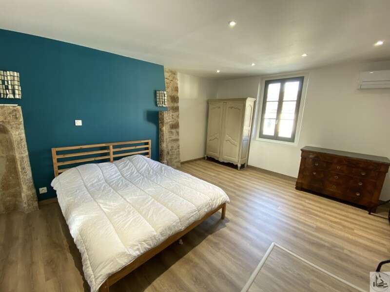 Charming village house ideal for young couple or pied a terre in the heart of the bastide. The house is composed as follows: On the ground floor a large kitchen equipped open on the living room followed by the dining room. A large laundry room with wc and a bay window overlooking the outside. On the first floor: a large master bedroom suite with walk-in shower, stone walls and remains of a monumental fireplace that has been restored with great care. A bathroom with bath and washbasin. An independent wc. At the last floor, a first open chamber with a access to a second attic room in a row of the first. Outside a court in light of 30 m2 with a covered terrace.