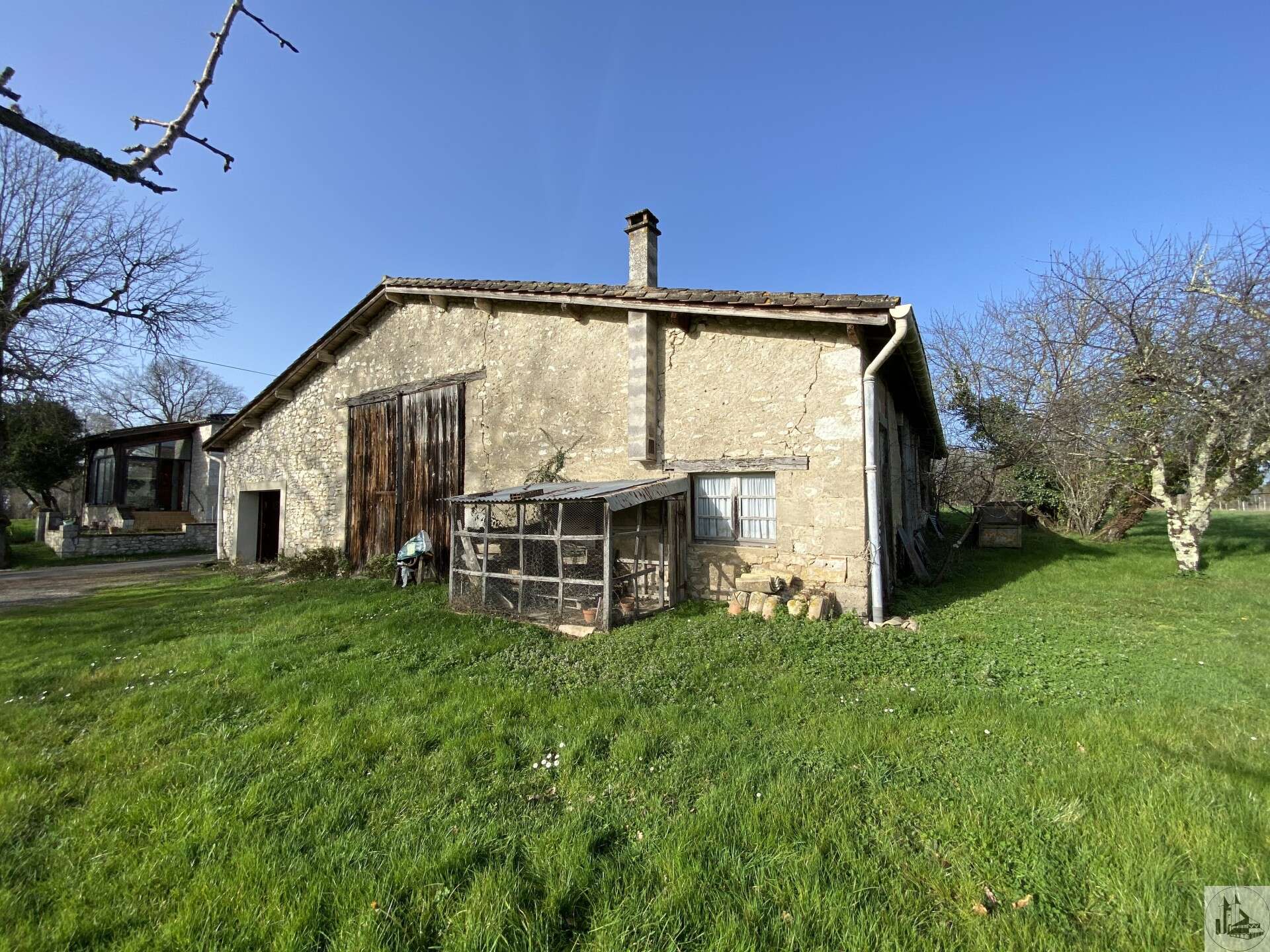Dwelling house comprising : - entry on the veranda (17m2) with on the veranda, a storage space, - fully equipped kitchen -oven and dishwasher - with open fireplace (32m2), lounge/dining room (22,8m2), - one bedroom (13,6m2), - bathroom with basin, bidet, bath and window (5m2), - hallway with closets, - w. c independent with window, - basement with sink, water supply to the washing machine, and boiler, and a cellar (70m2), And attached to the house, with electric heating : - second veranda (9m2), - bedroom (17m2) - shower room with w. c (6m2). Outside : - Shelter to the rear with access to the basement and access to the house, ideal for an expansion, roof re-follow on this part here, however, old piggery-suite (60m2), - barn with garage space, portal manual, and part with point water and electricity, the former studio (280m2 approx) - two ponds - Walnut - well more functional Miscellaneous : - single glazing and double glazing at the level of the verandas - tile floor throughout - central heating oil - individual wastewater treatment in CONFORMITY