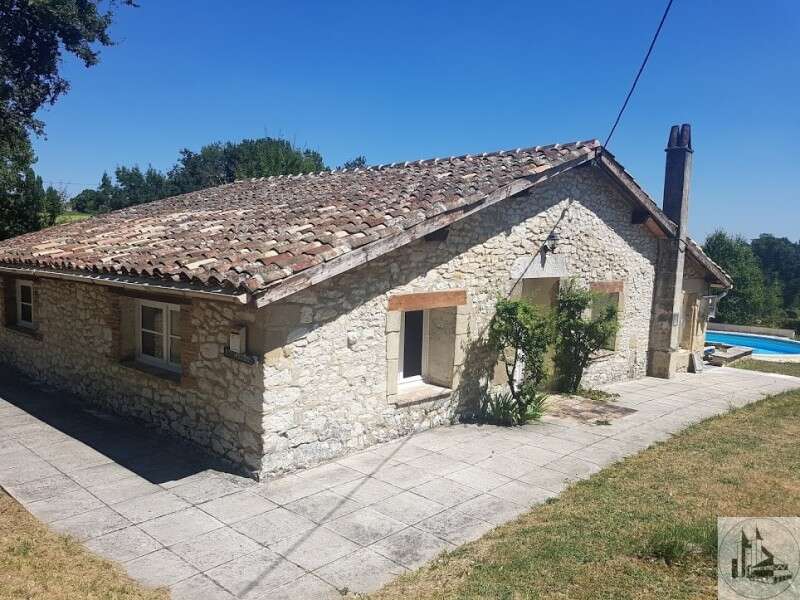 A single storey stone house with a living area of approximately 90m². The stone house comprising: - an entrance, terracotta floor (7.7m2) - Living room with lounge / dining room, linoleum floor, cast iron stove and exposed beams and corner with an American-style kitchen (42.3m2) - a mezzanine (approximately 8m2 on the ground, attic 1.8m at the highest / 1.2 at the lowest) - a 14.8m² bedroom with fitted carpet, - a bedroom of 14.5m² with lino on the floor, cupboards and water heater - a bathroom (sink, bidet, wc, shower) lino on the floor (5m2) - Wood heating - South facing terrace with view - A swimming pool and technical room - Land of approximately 2,524m²