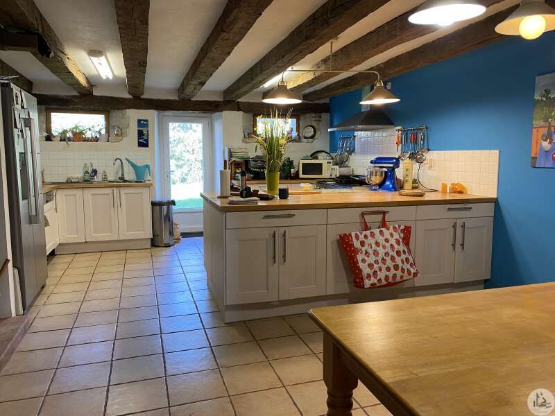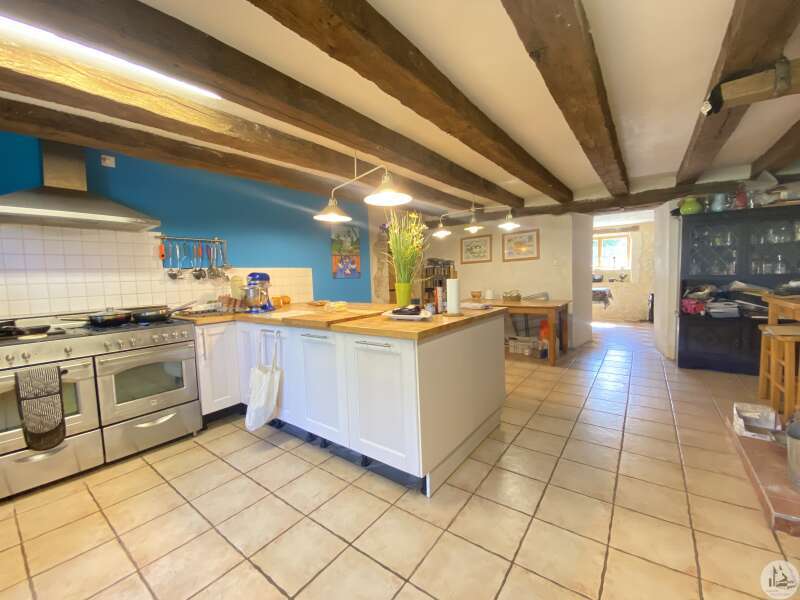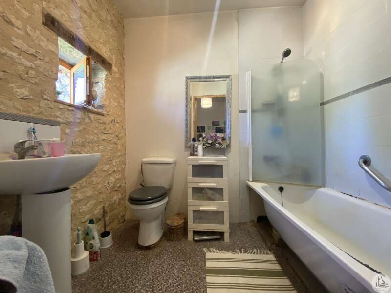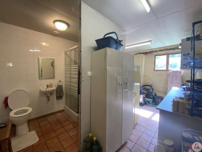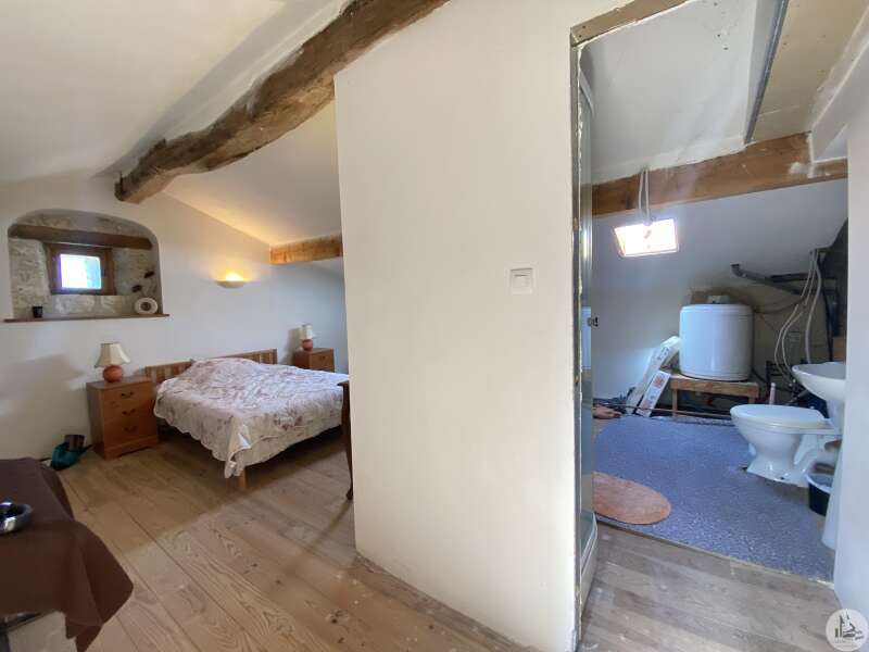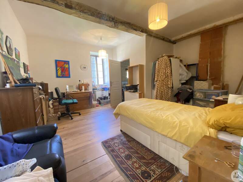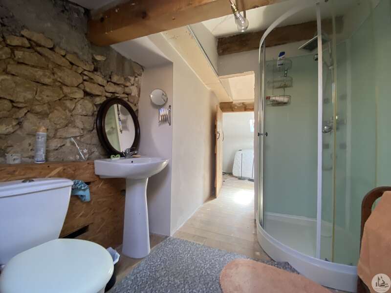 Located in a peaceful, yet not isolated setting, this characterful stone house offers generous volumes and great potential. On the ground floor, you will discover: an entrance hall (28.6 m²) also serving as a dining room, a cozy living room (34.3 m²) equipped with a wood-burning stove, an authentic kitchen (30.5 m²) with a wood-burning stove and access to the garden, a shower room with a laundry area (16.5 m²). Upstairs: a landing (13.4 m²) leading to a bedroom (25.8 m²) with its private shower room (4.11 m²) including a sink, a bathtub, and a toilet. A second large bedroom (33.4 m²) A beautiful open terrace/gallery (28.8 m²) offering unobstructed views of the garden and the countryside. On the second floor: An additional bedroom (24.9 m²) with an en-suite bathroom (with sink, shower, and toilet). An attic (30 m²) provides space for an additional bedroom or valuable storage space. The exterior features perfectly complement this property: an attached barn (approximately 80 m² floor space), a detached barn (64.8 m²), a well, and a stone outbuilding. This property combines old-world charm and authenticity, making it ideal for a family home or a country house project.