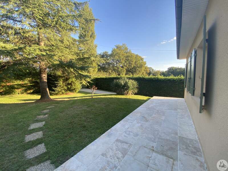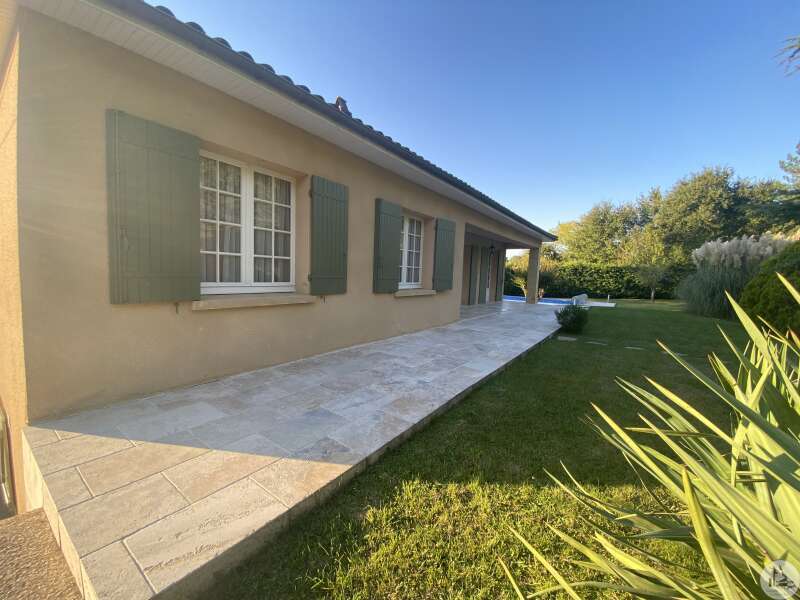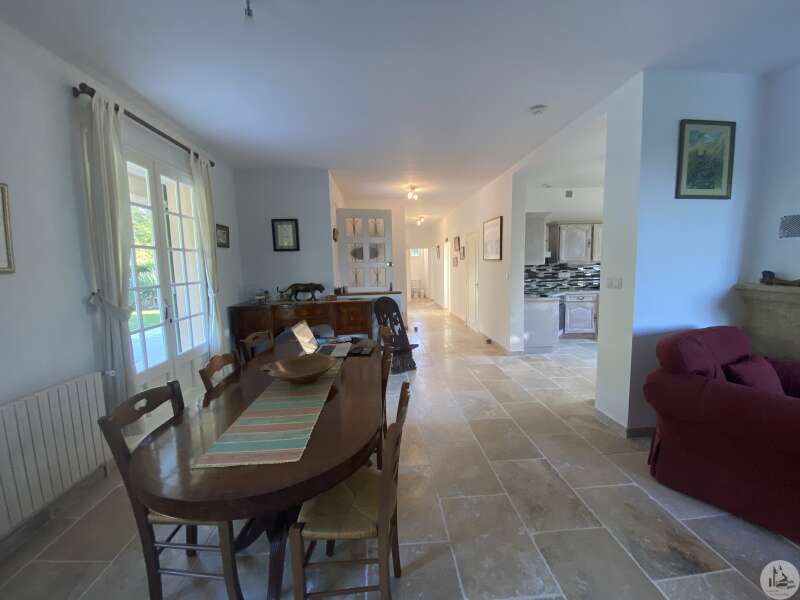 Residential house of 115 m2 on a wooded and fenced park of 2465 m2 in the countryside. An entrance hall opening onto a dining room/living room of 50 m2 and a separate fully equipped kitchen of 13 m2. A corridor serves 3 large bedrooms, a bathroom and a separate toilet. The basement of 115 m2 is bright with direct access to the garden currently used as a double garage and can easily be converted into a home. A travertine terrace and a large swimming pool with electric cover complete this superb property.