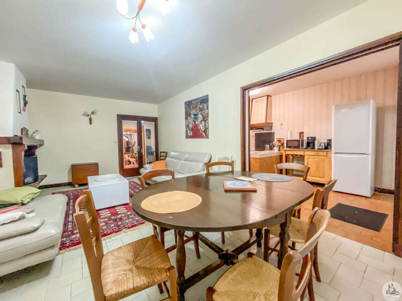 Large, semi-detached, dual-aspect village house comprising: Separate entrance from the rear alley: - A 14.7 m² fitted kitchen with an extractor hood, induction hob, and oven. A small pantry of approximately 2.2 m² follows this kitchen. - A living room of approximately 23.2 m², with a built-in fireplace equipped with an insert. Double doors lead to a hallway. - A hallway of approximately 6.1 m², serving: - A separate toilet - A storage room under the concrete staircase of approximately 2.2 m² - A second storage room of approximately 2.4 m² with the electric water heater and an electrical panel. From this hallway, a concrete stairwell leads to the upper floor. Upstairs: - a landing of approximately 4.7 m² - a bedroom of approximately 11.06 m², a French window opening onto the covered terrace - a bedroom of approximately 11.4 m², a closet, and a French window opening onto the same covered terrace. - Between these two bedrooms, a hallway provides direct access through a door to the covered terrace of approximately 16.3 m². - a separate toilet of approximately 1.3 m². - a shower room of approximately 3 m². Sink, shower, bathtub, bidet, closet, and ventilation system. - a second hallway (approximately 7.5 m²) leading to: - access to the attic via a concrete staircase. (Attic of approximately 65 m², convertible, with a ceiling height of 4 m. Roof frame in good condition. 2 windows. A second part of approximately 30 m², not convertible) - A bedroom of approximately 13.6 m² with a drop of 2 steps, with an en-suite toilet of approximately 2.5 m² with a sink and bidet. - A bathroom of approximately 5.9 m² with a sink and a bathtub/shower. - A separate toilet with a ventilation system. - A bedroom of approximately 10.7 m², a French window opening onto a balcony, and a closet. - A bedroom of approximately 10.9 m², a French window opening onto the same balcony. - Entrance from the main street leading to: - A garage of approximately 27.8 m² (accessed via a large garage door). A toilet and a sink. A laundry area and a storage room of approximately 5.4 m². - A commercial space of approximately 23.7 m² with tiled floors, a step separating the room in two (open fireplace). It is currently occupied but will be available for sale. The space has its own entrance overlooking the street and is equipped with burglar-resistant glass. Electric convectors and a wood-burning fireplace. Mostly single-glazed wooden windows (except for the commercial space, which has recent joinery with burglar-resistant "security" glass). Two mechanical ventilation systems, including one hydronic system, are available for the wet rooms, the kitchen, and the commercial space.