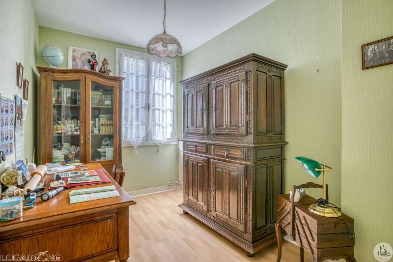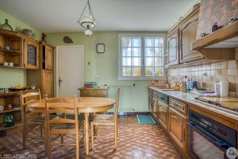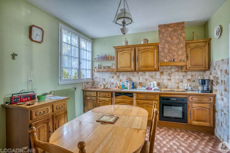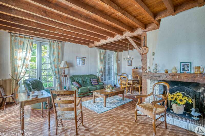 1970s family home with garden Close to shops and schools, this house offers comfort and potential. With a living area of approximately 110 m², it comprises: - an entrance hall (8.8 m²), a bright living/dining room with an open fireplace (22.7 m²), a separate kitchen (12.7 m²), a pantry (7.5 m²), an office (7.4 m²), three bedrooms (13/12.3/12 m²), a bathroom (5.5 m²), and a separate toilet. A storage room adjoins the pantry (12 m²). A full basement (approximately 61 m²) completes the property, including a hot water tank, a boiler, an oil tank, and a sink, providing plenty of storage or conversion space. The property is set on a partially enclosed and wooded plot, ideal for enjoying the beautiful weather with family. This house, in need of renovation, is a great opportunity to personalize your future living space in a pleasant and convenient setting. Discover it soon!