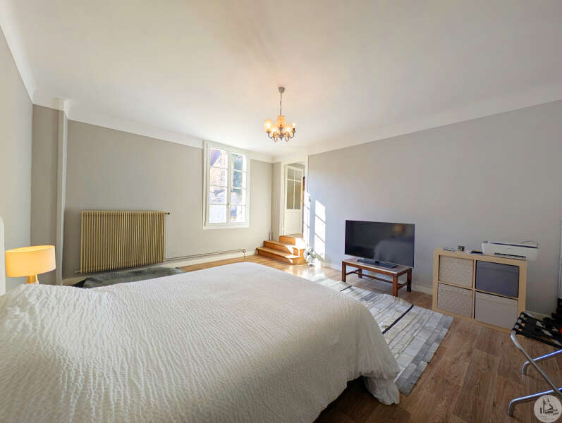 In a shared, enclosed courtyard, this house comprises a 44 m² living/dining room, a 19 m² kitchen, a 15.5 m² laundry/boiler room (possibility of creating a single-story bedroom with a shower room), and a toilet. Upstairs: Landing of approximately 2 m² (bay window overlooking the garden), a 5 m² hallway, Bedroom 1 of 13.45 m² with a 4.80 m² shower room, Bedroom 2 of 9.80 m², a 16.30 m² dual-aspect office or bedroom, a shower room with toilet, and Bedroom 3 of 24 m² (these last three rooms can be converted into a master suite). -South-facing garden of approximately 40 m². - Attached 19 m² garage (high ceilings). - Parking space in the shared courtyard (active easement) * Recent heat pump heating * Double-glazed windows and doors (2025) * Roof covering and insulation (2025) * Mains drainage