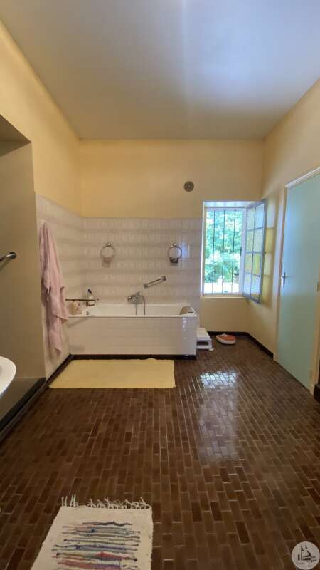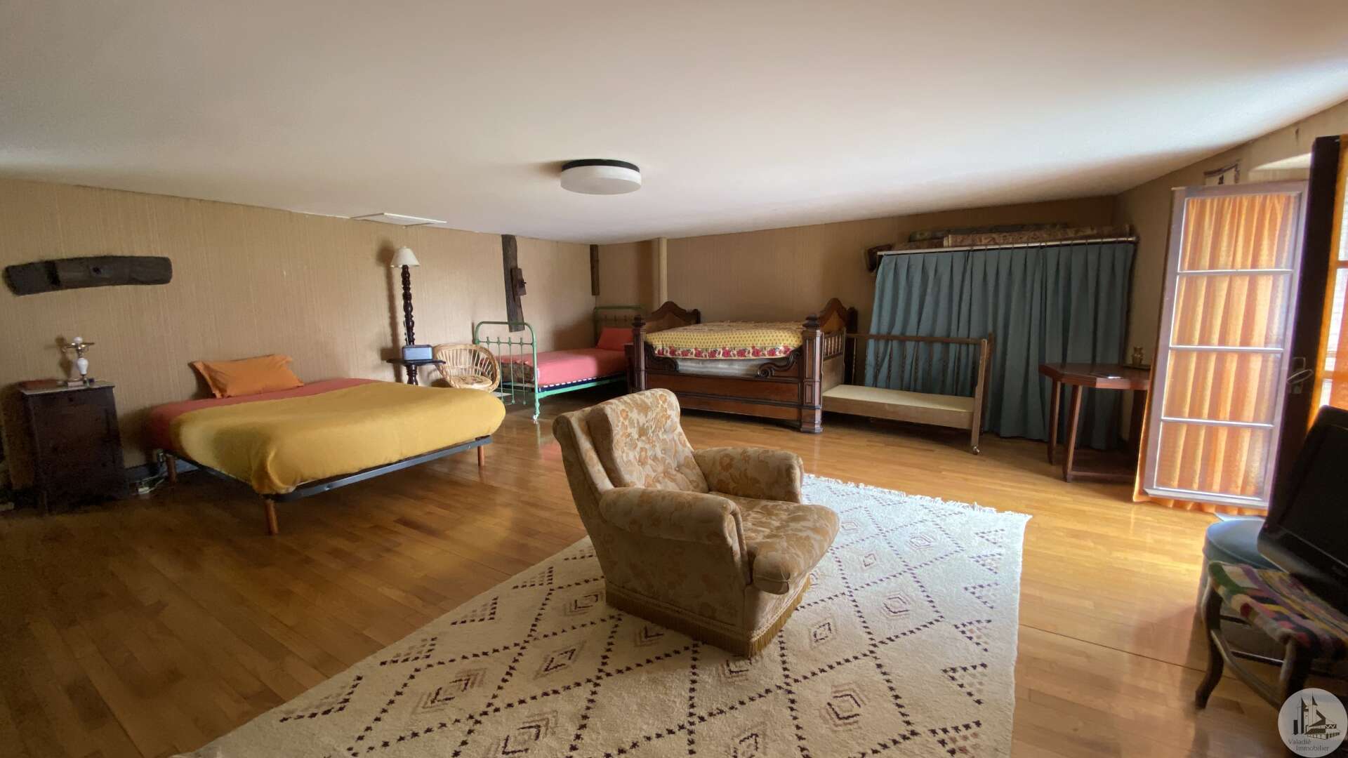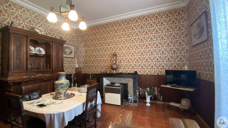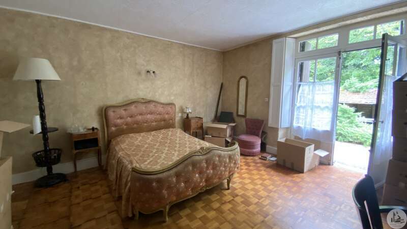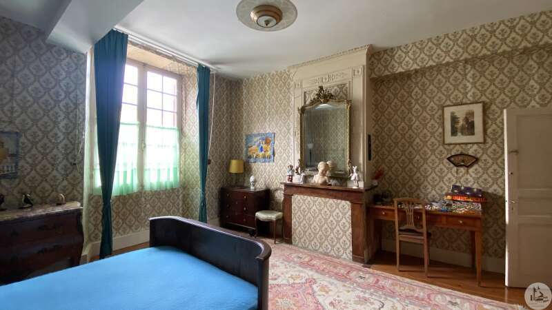 House located in a beautiful setting in the heart of the village comprising two levels and, which is quite rare, a large shaded garden of over 2500m2 On the ground floor the house comprises: A main entrance hall and hallway of 20m2 A living room of 21m2 with fireplace A study/library of 10.2m2 with fireplace A room of 11.6m2 (small bedroom or other use) A living room of 26m2 A dining room of 24m2 (terrace, garden side), fireplace The kitchen of 18m2 with its pantry of 3m2 A second entrance via garage of 31m2 (tiled floor) individual toilets Cellar annex room of 28m2 The first floor is composed as follows: a landing of 14m2 a bedroom of 28m2, fireplace, with French window giving access to the garden a bedroom of 22.5m2 with fireplace a bathroom of 12m2 with bathtub, sink, bidet wc a bedroom of 24m2 with fireplace a bedroom of 15m2 with fireplace a bedroom of 11m2 a spare bedroom of 8.4m2 a large room of 48m2 (current dormitory) which can have various uses (low ceiling) The attic Outside the back of the house, garden side has several terraces and outbuildings (shed, glass roof), a garden shed/wood shed well a part of the garden is wooded, another has fruit trees This house is not lacking in charm but the whole needs to be revived and modernized for more comfort (numerous fireplaces but no heating, large joinery but single glazing, beautiful high ceilings (plaster needs to be redone, toilets and kitchen need to be modernized...) Mains drainage Land from 1520€