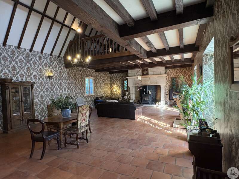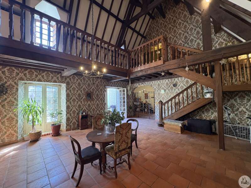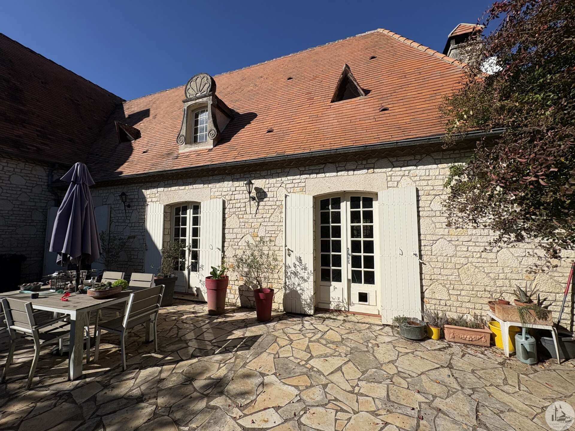 Stone Périgourdine house of approximately 265 m² with outbuildings on a plot of 3553 m². The house comprises: On the ground floor, an entrance hall, a main living/dining room with cathedral ceilings and a wood-burning stove, a fitted kitchen, two bedrooms, one with a fireplace, a bathroom, and a toilet. Upstairs, a landing leads to an open library, three bedrooms, a shower room, and a separate toilet with a sink. The outbuildings consist of two outbuildings; The first has a garage and boiler room. The second has a garage, workshop, and veranda. Outside, several terraces lead to a wooded and enclosed garden with a well. The windows are single-glazed. The heating is oil-fired. The sanitation system is individual, with a septic tank.