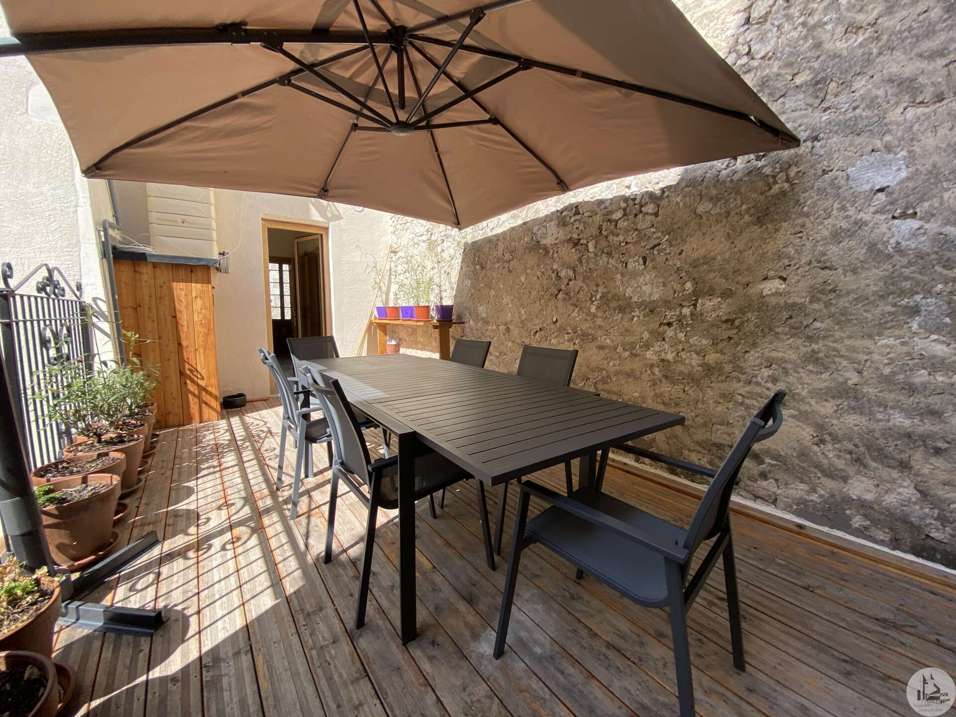 Property consisting of a large, completely renovated luxury apartment and commercial premises with courtyard and terrace. Unique opportunity to acquire this beautiful building with lots of possibilities Entrance, staircase leading to the first floor and the apartment. Access to the cellar. Local - Room for future kitchen - 8.52m2 corridor / airlock - 3.83m2 WC with hand basin suitable for disabilities - 3.75m2 2 further ooms of approx. 35m2 with window, a door to the street - oak parquet floor Adjacent a 18m2 accessed by double French doors opening onto the courtyard of 19m2 - street access gate. From the entrance staircase leading to the apartment, carefully recently renovated - 1st floor - Landing - Large living room of 47m2, very bright with double exposure - oak parquet flooring. Equipped kitchen - 11.80m2, Laundry room 3m2 with Wc and sink; Part going towards the wooden terrace of 21m2 - 2nd floor- Landing- Bedroom n°1 - 11m2 - Oak parquet flooring with ensuite shower room - 4.20m2 - shower, toilet and sink Bedroom n°2 - 11.20m2. Oak parquet flooring, ensuite room - 4.33m2 - shower, toilet and sink Bedroom n°3 - 10 m2 Oak parquet flooring, ensuite shower room - 3m2 - shower, toilet and sink Bedroom no. 4 - 11m2 Oak parquet flooring, 3m2 ensuite shower room, shower, toilet and sink