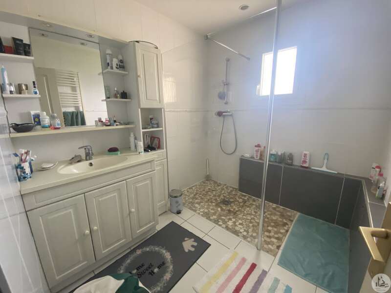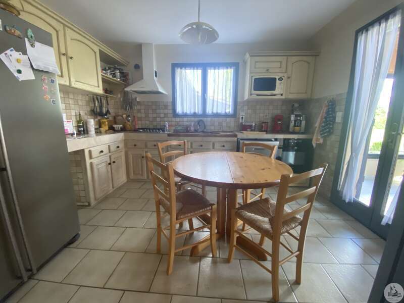 Single storey house of 165 m2 on flat landscaped land of 2500 m2 fully fenced. It consists of a fitted kitchen of 12 m2, a living room of 25 m2 with closed insert, a dining room of 13 m2 which can be used as a bedroom, two bedrooms of 15 and 23 m2, a bathroom and separate toilet. A large laundry room of 36 m2 with mezzanine. A large veranda at the front of the house of 35 m2. A glazed courtyard of 13 m2. Outside a garage of 25 m2 as well as a courtyard for two vehicles of 24 m2 (8m * 3m). Recent electric gate Double glazing