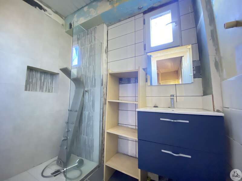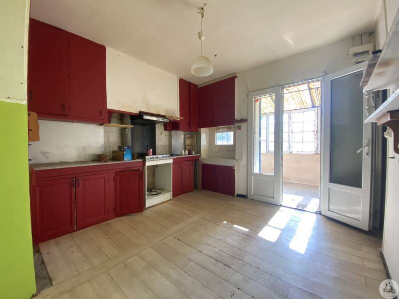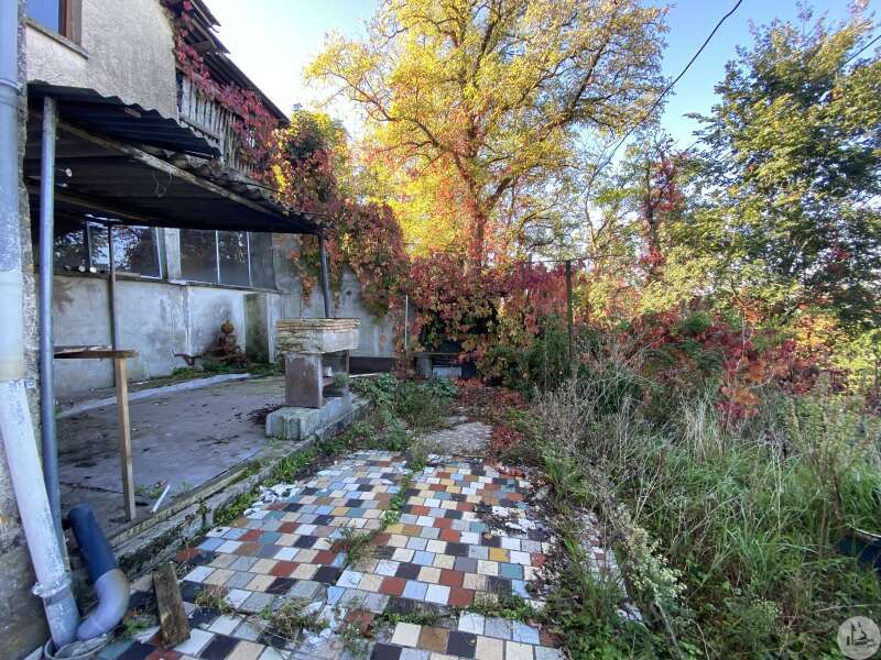 Village house on 2 levels comprising: On the ground floor: veranda (19.1 m²), kitchen (12.8 m²), living room (16.2 m²), hallway (7.3 m²) leading to two bedrooms (14.9 and 13.8 m²), a bathroom (non-functional shower and sink) (2.8 m²), and a toilet. Double-glazed PVC windows. On the garden level: boiler room (14.8 m²), two rooms (14.5 and 12.2 m²) that could be used as bedrooms, hallway (6.9 m²), cellar (13.5 m²), and a glass-roofed room (36 m²) overlooking the rear garden. Single-glazed wooden windows. Oil-fired central heating and electric convector heaters. Attic. Attached garage and shed. Tiered garden at the rear.