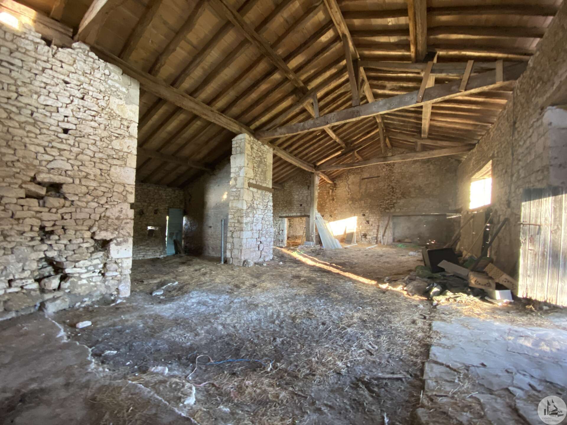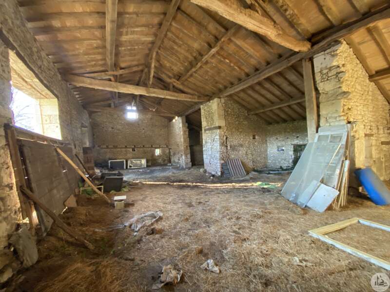 Stone barn (209 m2 on the ground: 11.41 x 18.39m) to be converted with planning permission obtained for the rehabilitation into a dwelling house and garage. Roof redone in 2003. 2 lean-tos (25.8 m2 for the one on the left and 31 m2 for the one on the right) Flat land of approximately 8900 m2, bordered by a watercourse on one side. 3 wells including one communal.