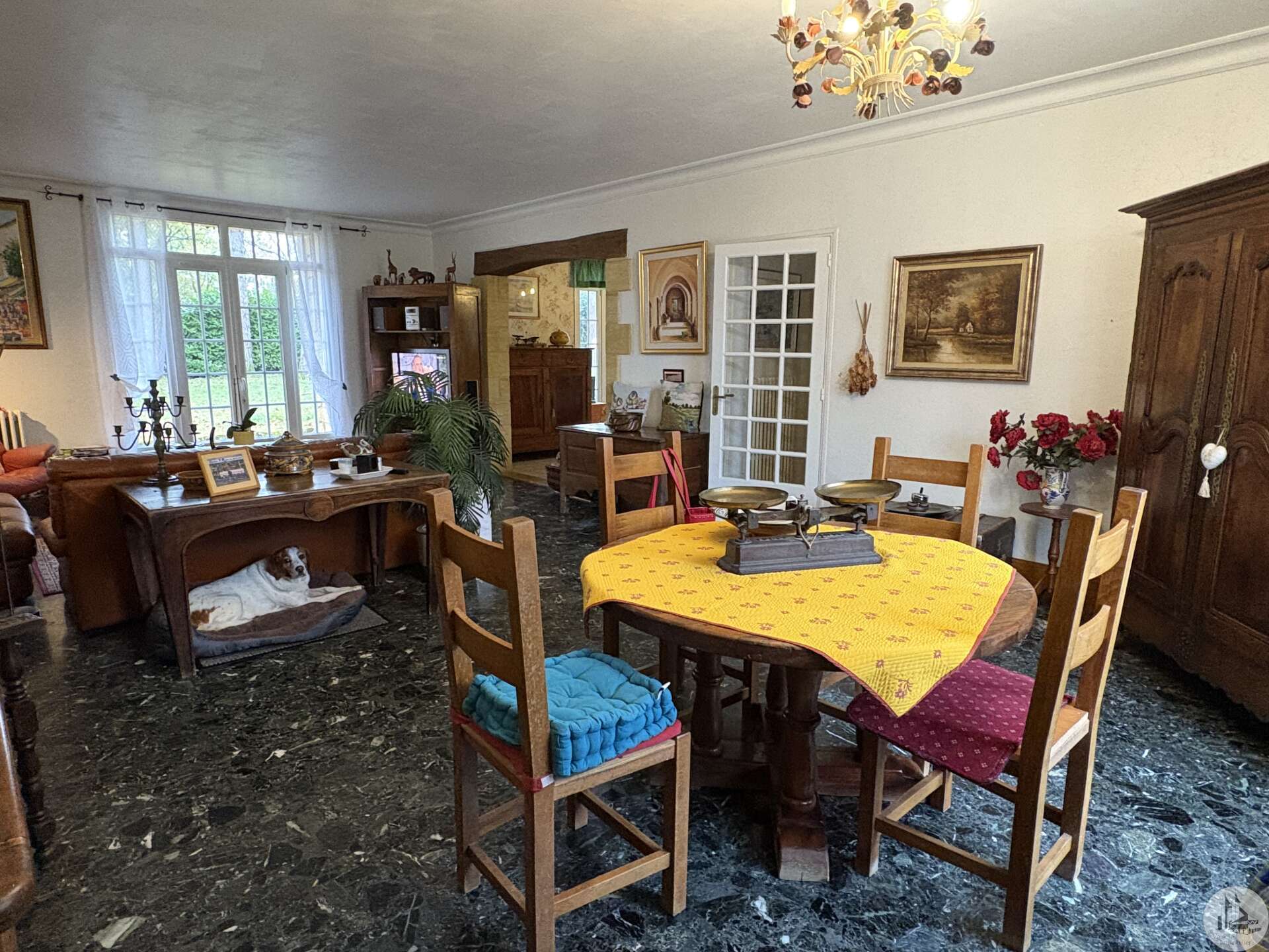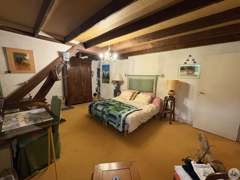 Stone house built in 1972, approximately 185 m², with outbuildings on a 9,653 m² plot. The house comprises: On the ground floor, a semi-open-plan fitted kitchen leading to the main living/dining room with a wood-burning stove, two bedrooms, a shower room, a utility/pantry, and a separate toilet with a washbasin. Upstairs, a landing, two bedrooms, a shower room with a toilet, and two attics. A full basement with a boiler room, a workshop, and two cellars. Outside, several terraces with a lean-to lead to the 9,653 m² plot (5,000 m² of which is fenced) where there is an outbuilding of approximately 65 m² with a double garage and a horse stall. The windows are double-glazed on the ground floor and single-glazed upstairs. The heating system is oil-fired.