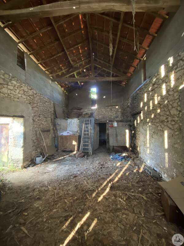 Single-story stone house comprising a veranda (at the entrance), a kitchen (22.7 sq m), a living/dining room (27 sq m), a hallway (4.6 sq m), two bedrooms (11 and 13 sq m), a bathroom of approximately 5.4 sq m (sink, bathtub, and bidet), and a toilet. A separate veranda (at the rear) of 13 sq m. Laundry room (6.4 sq m). Currently offering approximately 100 sq m of convertible space. Cellar. No heating. Renovation work required. Adjoining the house: an old barn (18.8 sq m) with former stables and a tobacco drying shed (47 sq m floor area). Open lean-to with an old plum oven. Former stables/chicken coop. Approximately 1 hectare of land surrounding the buildings.