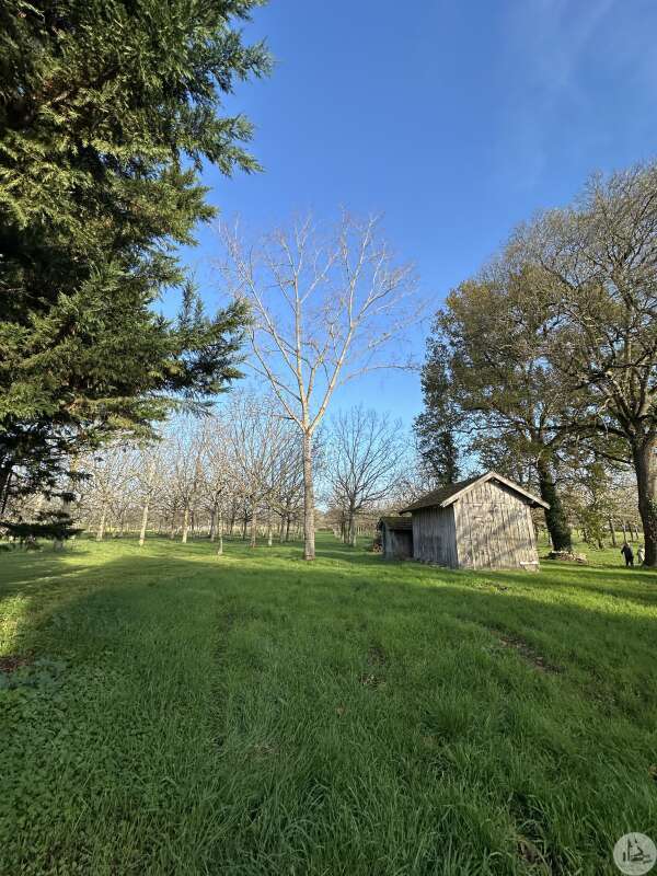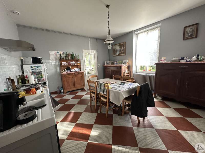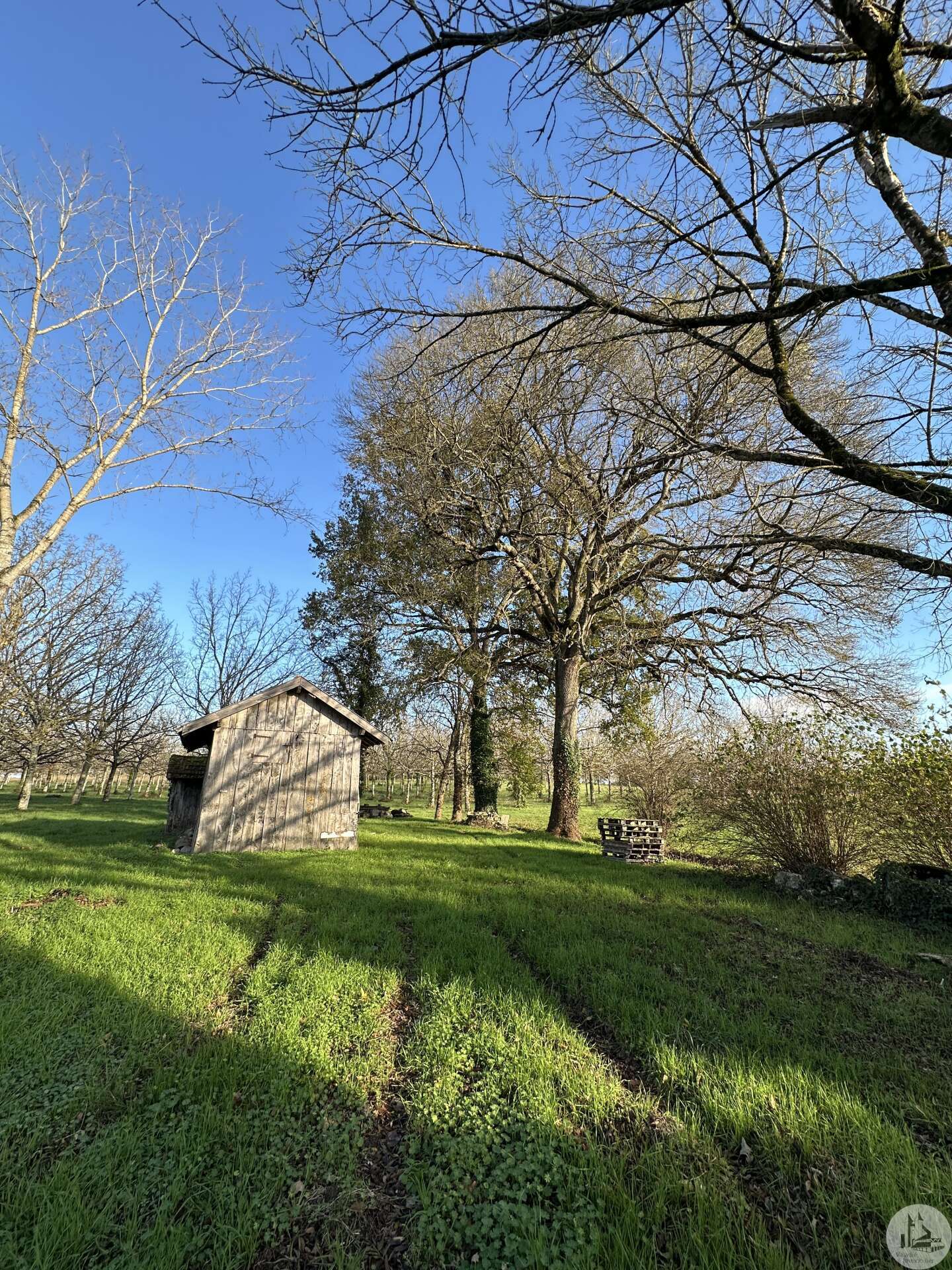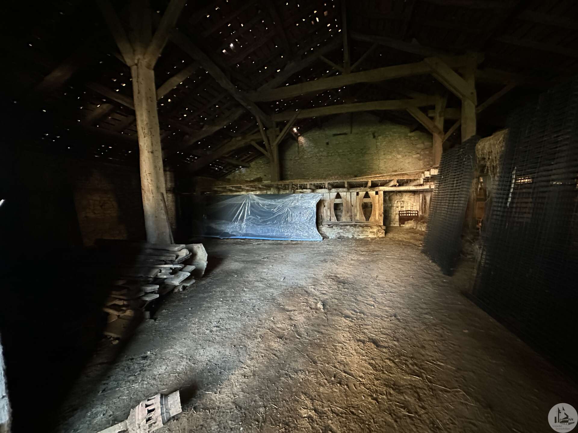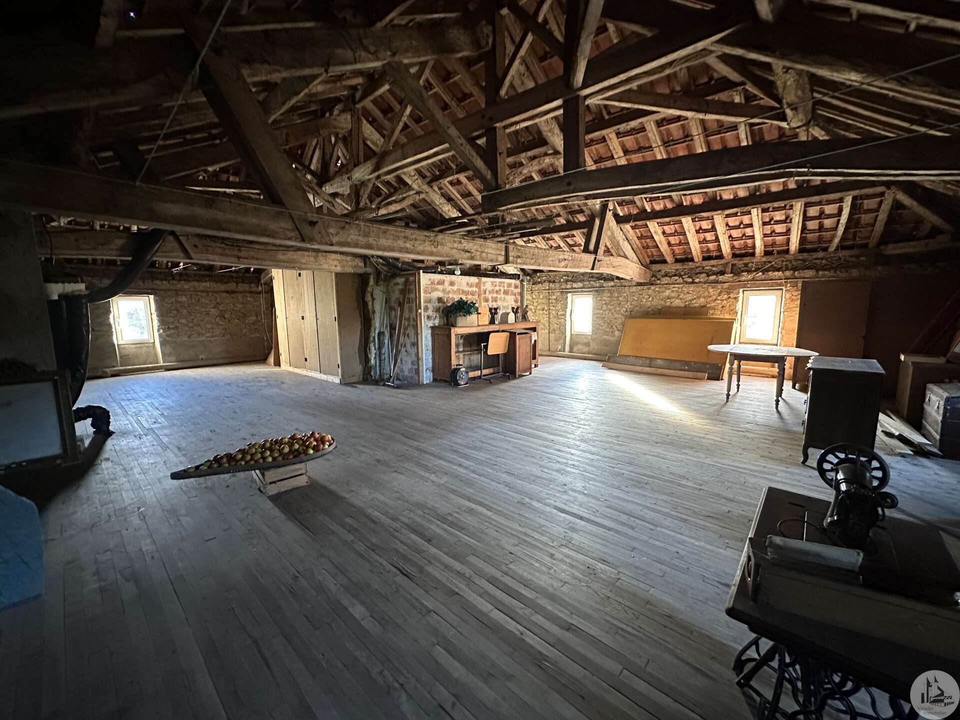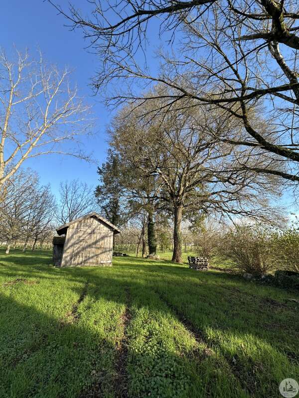 Behind its stone walls, this authentic house invites you to discover a place steeped in charm. You'll find an entrance hall (4.9 sq m), a living/dining room with a working fireplace (22 sq m), a hallway (6 sq m) leading to three ground-floor bedrooms (14, 16.6, and 14.7 sq m), and a functional kitchen (22 sq m) opening onto a light-filled veranda with a sink (41.5 sq m). The house also includes a boiler room (14.5 sq m) with a Viessmann boiler, a shower room (5 sq m), and a separate WC. Upstairs, an additional bedroom (21 sq m) completes the sleeping area, while the attic (approximately 102 sq m) offers excellent potential for conversion to suit your needs. Outside, the charm is undeniable: several outbuildings—a chicken coop, a dovecote suitable for conversion, and a barn (approximately 400 sq m). The property sits on a flat, wooded plot. A well completes the ensemble. A property full of character, ideal for those seeking the charm of stone, space, and the tranquility of a preserved environment.