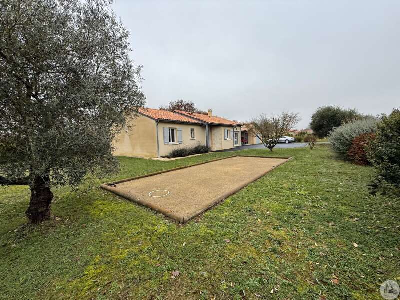 Plain-pied lumineux de 112 m² avec pièce de vie ouverte sur terrasse et piscine chauffée. Suite parentale, trois chambres, bureau et buanderie. Extérieur : garage indépendant, cabanon, portail électrique, cour goudronnée, terrain clos avec espace pétanque.
