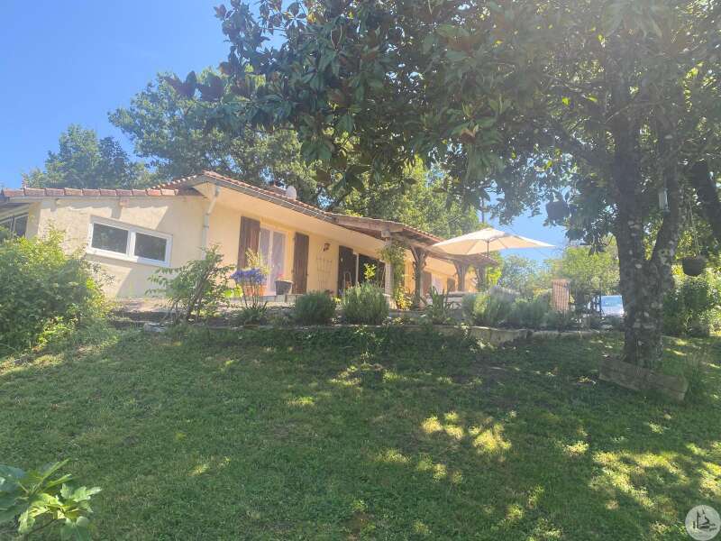 À quelques minutes de Villereal, en position dominante sur une campagne vallonnée, maison en pierre d’environ 118 m2, trois chambres et dépendances sur un parc arboré clos d’environ 3000 m2.