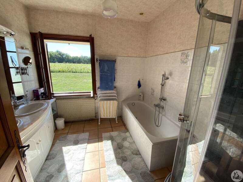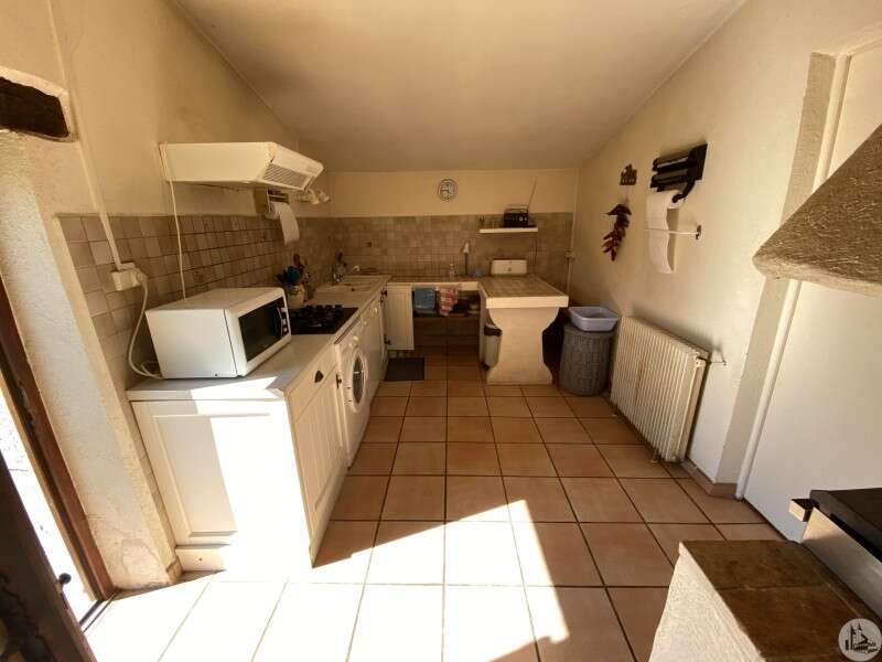 Propriété comprenant : Maison en pierre de 200 m2 habitable environ se composant de : Au rez-de-chaussée : - Entrée sur une belle pièce à vivre de 65 m2 : deux grandes baies vitrées avec sur-vitrage, une cheminée avec insert ,belle hauteur sous plafond jusqu’à la toiture , isolation thermique, cuisine équipée délimitée par un plan de travail bâti (évier, plaque chauffante , cuisine équipée (plan de travail, évier double bac, lave vaisselle, plaque de cuisson , lave linge ) de 11 m2 avec une pièce attenante de 21 m2 en arrière cuisine Côté nuit : de 90 m2 , trois marches depuis le salon qui desservent : - un couloir de distribution, - 3 chambres avec placard - une salle de bains, - toilette indépendant, - Grenier au dessus accessible par une trappe de visite - Chauffage central au gaz,cuve hors sol en location chez butagaz, insert bois. - Assainissement par fosse septique et bac dégraisseur contrôlé