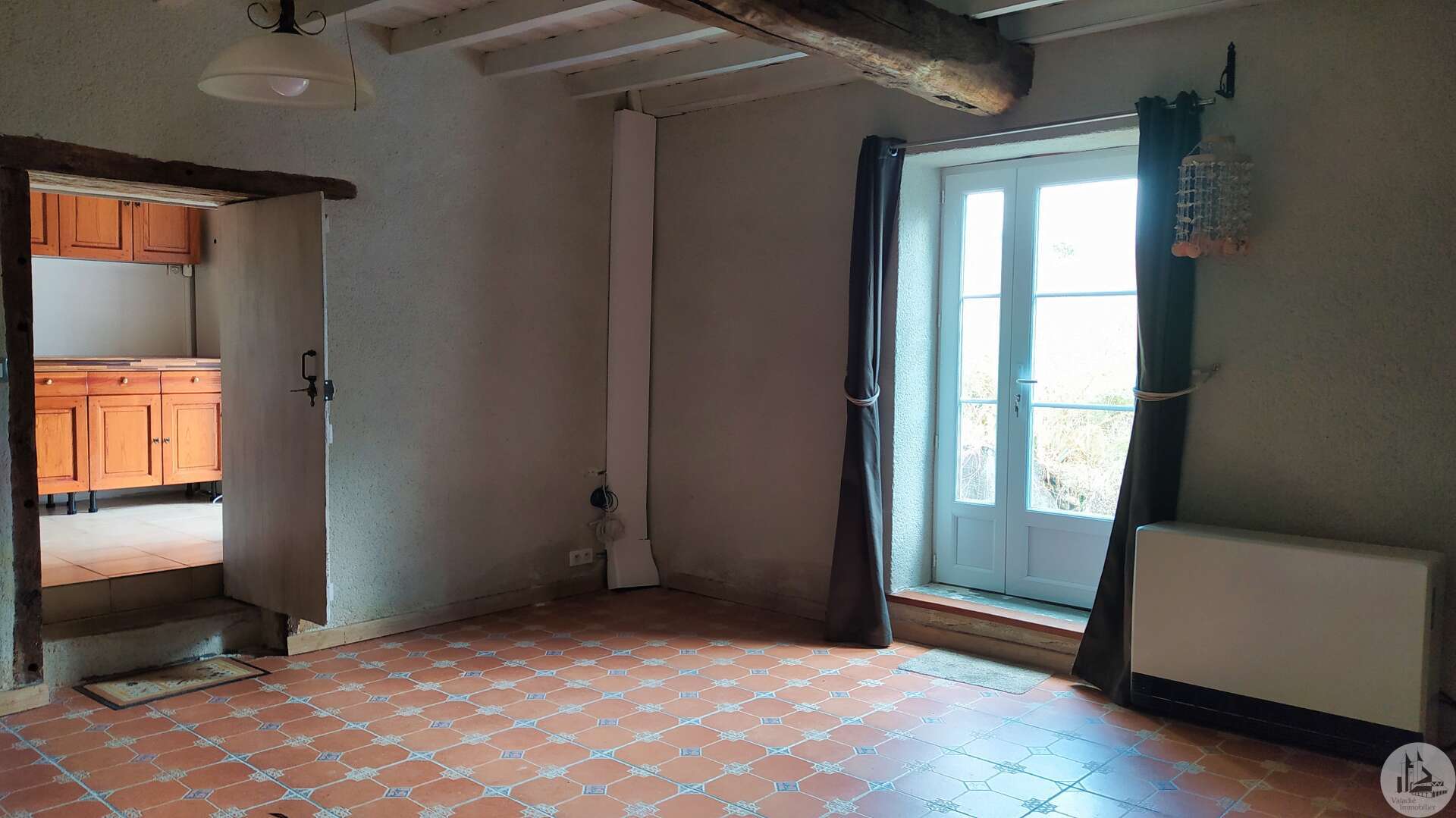Maison mitoyenne de campagne située en impasse dans un environnement très tranquille et sans vis à vis à seulement quelques minutes des commodités. La maison comprend une cuisine aménagée (13m2), salle d'eau avec wc (4.5m2), chambre de 11m2, un séjour avec porte donnant sur le jardin et cheminée (poêle à bois) de 24m2, une pièce attenante aménagée dans une ancienne grange (35m2) permet d'accéder à un étage disposant d' un dressing et d'une salle d'eau avec wc sanibroyeur, quelques marches supplémentaires donnent accès à deux chambres "sous pentes" aménagées dans les combles de la maison Buanderie Appentis / terrasse couverte 30m2 Terrain clos env. 4800m2 en prairie La rénovation intérieure commencée il y a quelques années reste à finir mais la maison est habitable en l'état assainissement individuel contrôlé conforme
