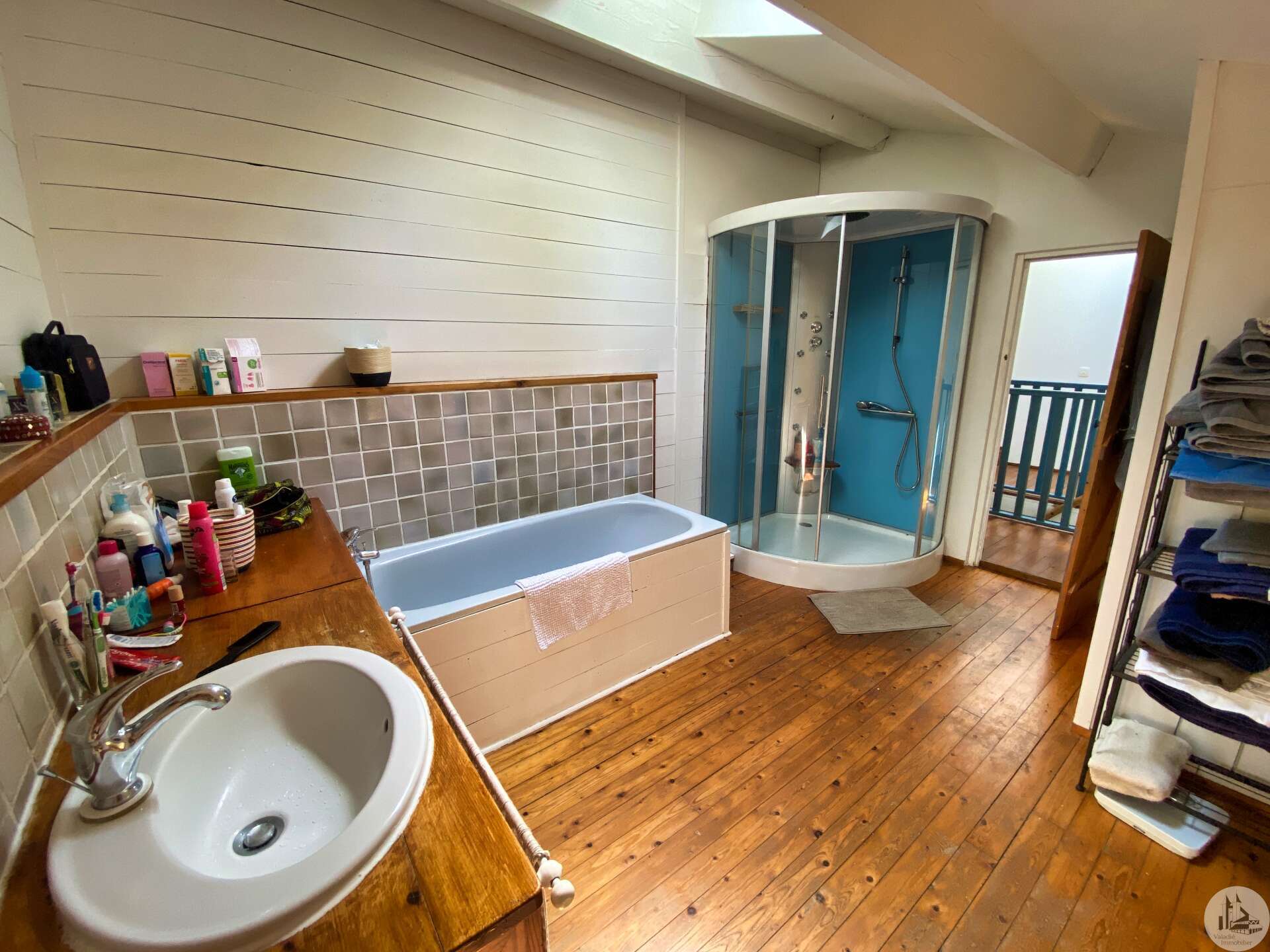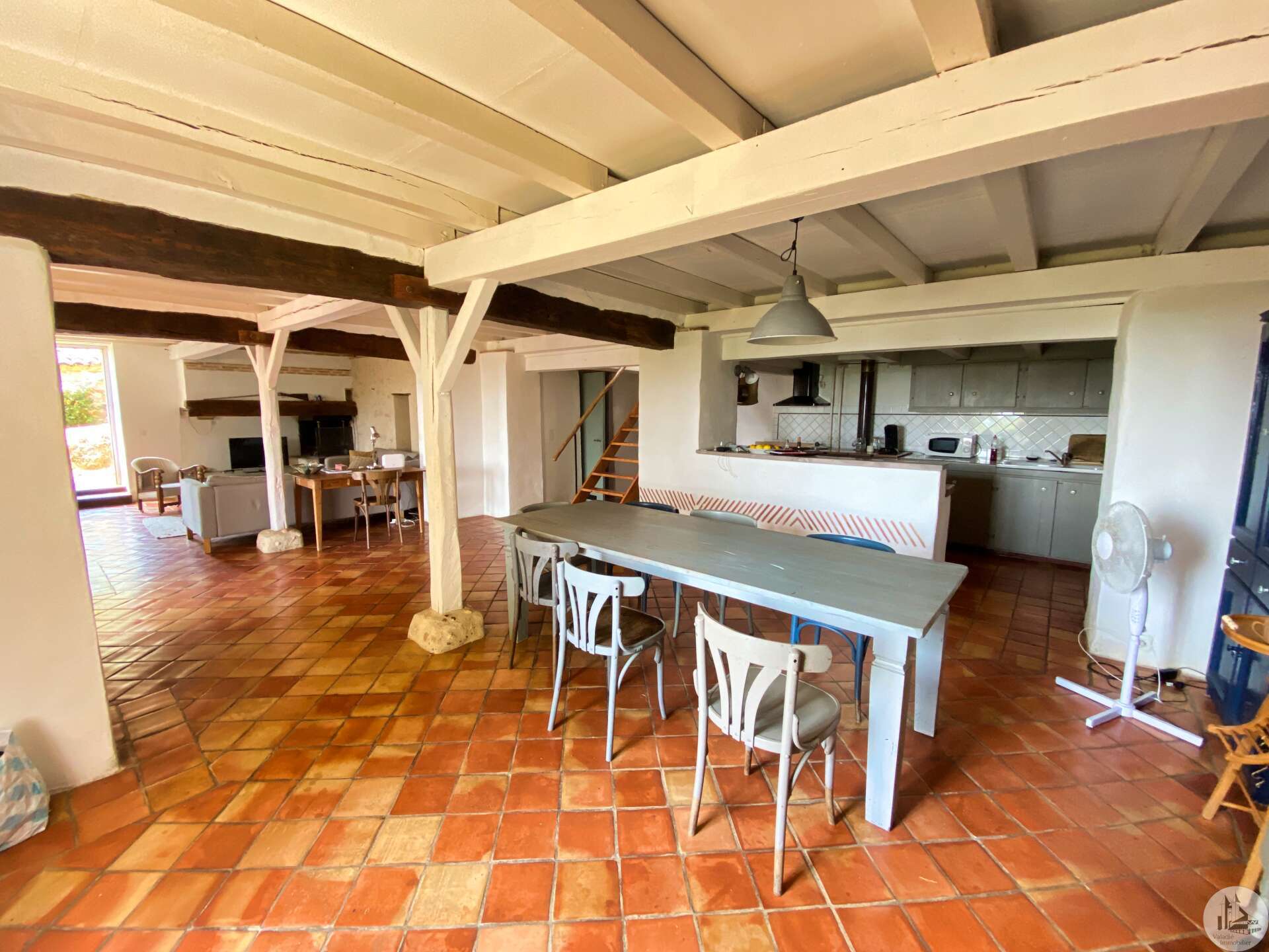 Maison de campagne en pierre comprenant : Au rez-de-chaussée : - Une cuisine aménagée (20,08 m2 env.) ouverte sur grande pièce à vivre d'environ 54,56 m2 (salon avec cheminée et salle à manger), - Un cellier (10,34 m2 env.), - Une chambre (17,66 m2 env.) avec lave-mains (avec porte donnant accès direct au jardin), - Couloir de distribution avec un coin buanderie (8,7 m2 env.), w.c. - Accessible par 2 marches : - Une chambre (14,81 m2 env.) en-suite avec salle de douche privative (lavabo, douche italienne). - Accessible par un escalier : - Une pièce ouverte à usage de chambre d'environ 17,66 m2 env. (ou d'atelier de couture / peinture car lumineuse) A l'étage : - Un palier d'environ 12,99 m2 env. (avec accès direct au jardin), - 3 chambres spacieuses et lumineuses de 17,9m2 env., 13,7m2 env. et 15,6 m2 env. (dont une avec porte menant au jardin), - Un bureau de 6,24 m2 (ou dressing), - Une salle de bain (lavabo, douche, baignoire et w.c). Eléments d'information : - Tommettes au sol au rez-de-chaussée. Plancher à l'étage. - Menuiseries en bois avec du simple vitrage. - Chauffage au bois et radiateurs électrique. Ancienne chaudière à bois dans la cuisine à remettre en service. - Assainissement par fosse septique non conforme. - Taxe foncière : 544 € (2021) - Eligible à la Fibre A l'extérieur : - Dépendance en pierre séparée (ancien fournil avec four à pain), toiture à reprendre. - Attenant au fournil : abris en bois. - Attenant à la maison : atelier en bois (24,8 et 14,9 m2) en parti fermé. - Indépendant sur le terrain : petit chalet en bois (7,7 m2). - Parc arboré avec piscine hors-sol (environ 5m de diamètre) et terrasse en bois.