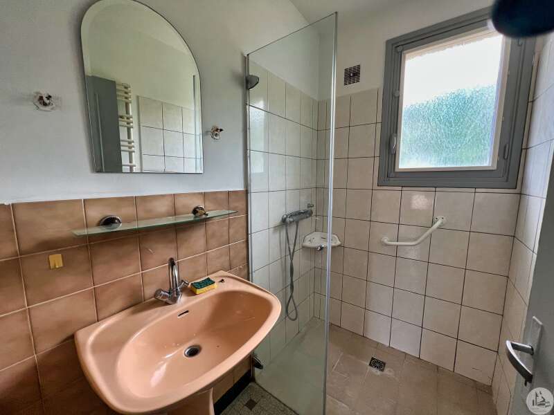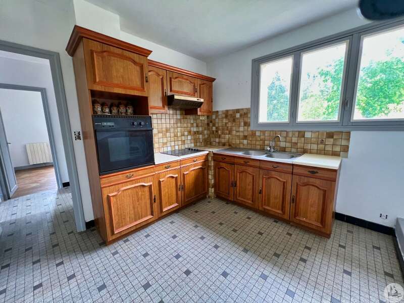 En rez-de-jardin on trouve une cuisine d’été de 32.77m² , ainsi qu’une pièce de 14.44m². Deux escaliers (intérieur ou extérieur), nous mènent à l’étage ou l’on découvre une cuisine de 8.93m², un séjour de 15.41m² avec balcon, deux chambres de respectivement 9.95m² avec de beaux parquets bois, une salle d’eau de 2.50m² avec douche italienne, le tout desservi par un couloir de 5m². Les peintures ont été refaites récemment et la rendent lumineuse. Combles non aménageables sont accessibles par une trappe. Deux dépendances: un garage de 20m² pour une voiture ou un atelier, et un poulailler se dessinent dans le jardin qui se situe principalement sur l'arrière de la maison. Chauffage électrique Huisseries survitrage bois Combles isolés (iso à 1€) Tout à l’égout. Terrain piscinable Proposition d'aménagement intérieur en dernière photo