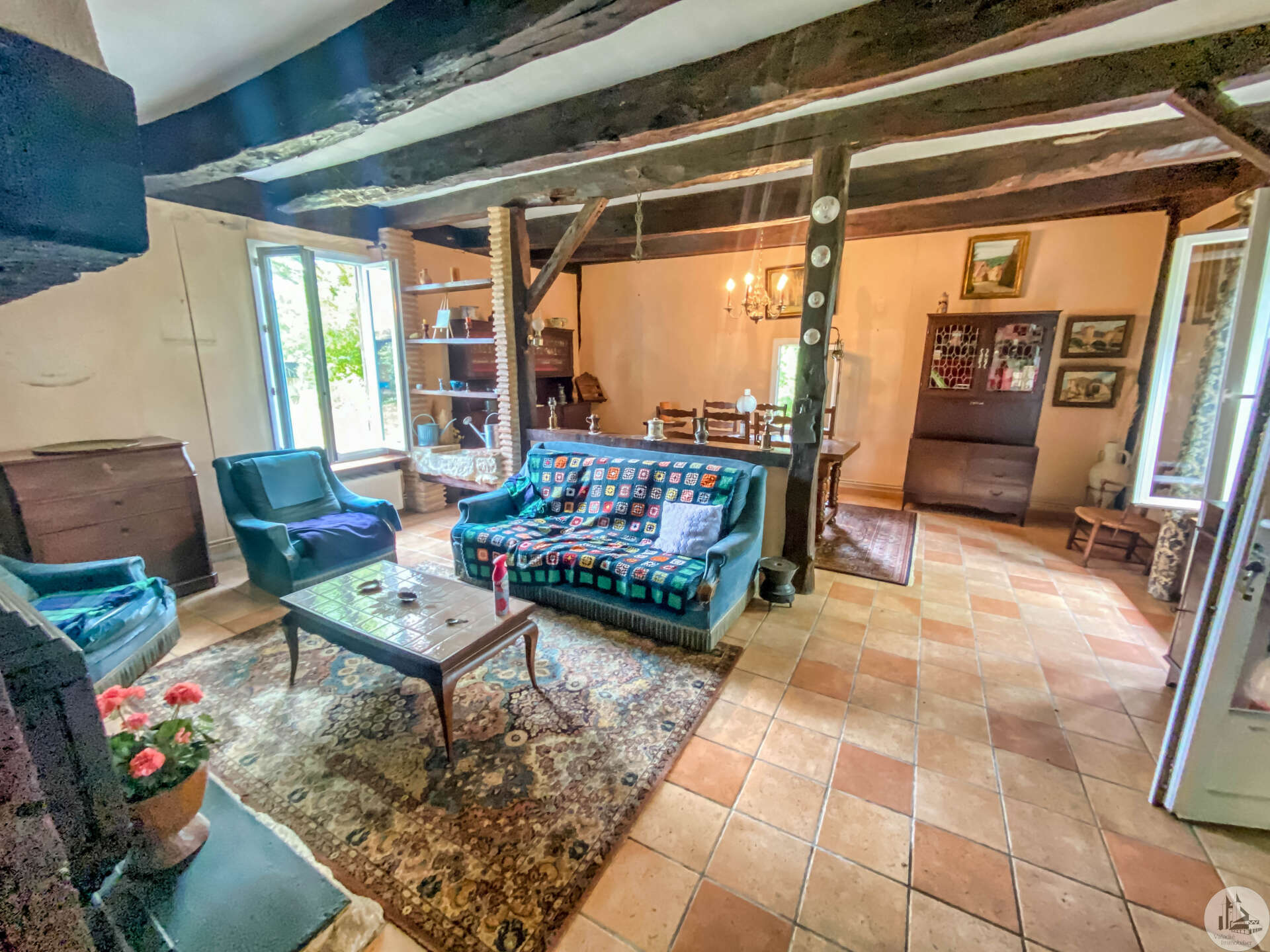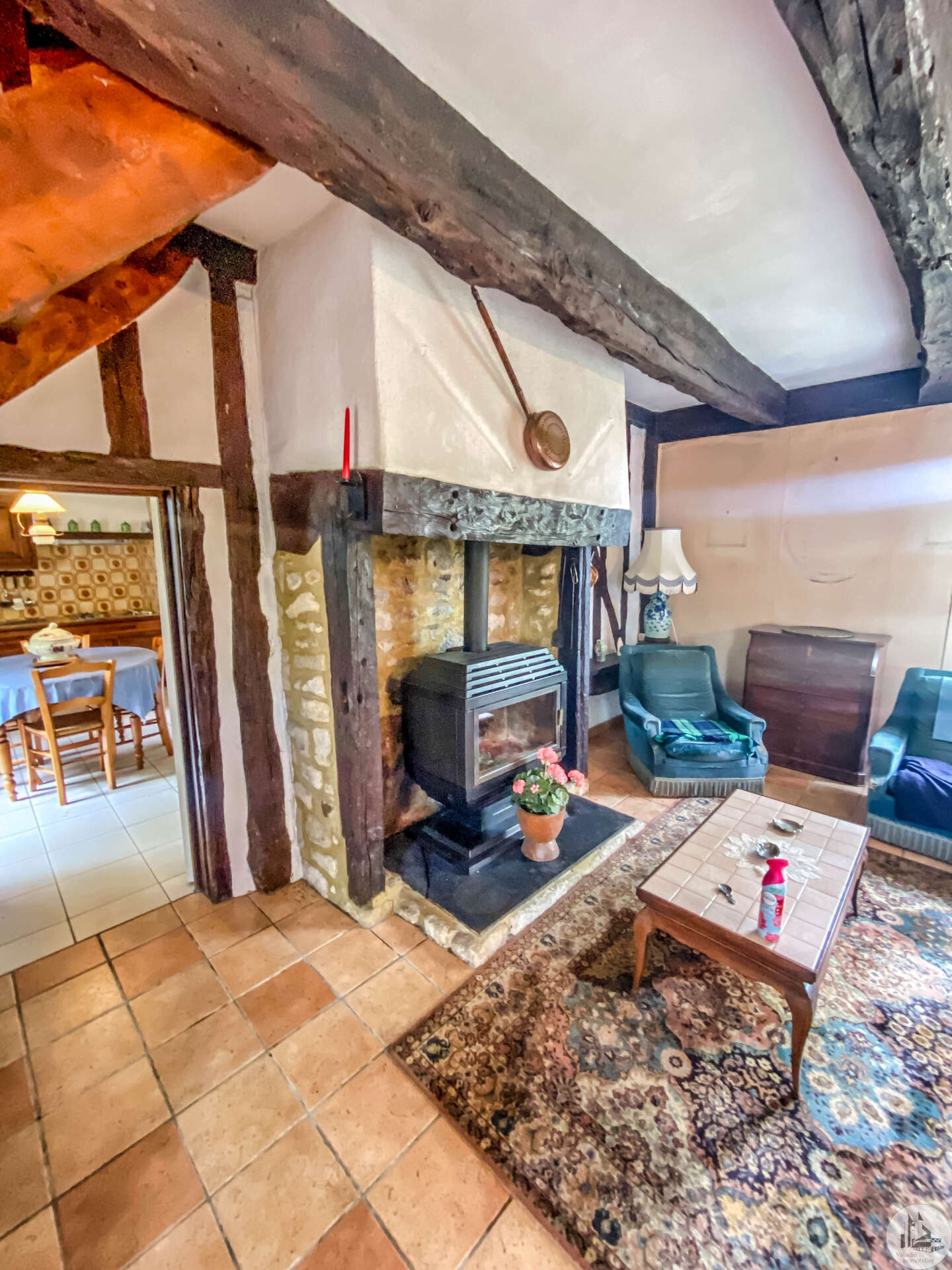 Une jolie maison de type périgourdine en pierre et colombage dans un écrin de verdure, d'une surface habitable de 90 m2 environ , comprenant : - Un entrée depuis le perron. - Un séjour de 39 m2 environ, carrelage au sol, une cheminée avec un poele à bois, poutres apparentes. Un escalier vers l'étage. - Une cuisine de 14,8 m2 environ, carrelage au sol, aménagée de placards haut et bas, plaque de cuisson au gaz, un four, une hotte aspirante, évier, faïence au dessus du plan de travail. - Une salle de bains de 5,9 m2 environ, carrelage au sol, faïence, une baignoire, un lavabo, un wc séparé avec des placards. Un espace buanderie. A l'étage : - Une chambre de 11,6 m2, plafond mansardé, soit 23 m2 au sol environ. - Une chambre de 10 m2 environ, plafond mansardé, soit 16,7 m2 au sol environ. Eléments d'information : - Chauffage central électrique, chaudière Bosch, radiateur en fonte. - Assainissement par fosse septique non conforme. - Menuiseries en PVC double vitrage et volets bois. A l'extérieur : - Une piscine de 7m X 3 ovale, coque, à revoir, ne fonctionne pas. - un garage avec un atelier de 13,8 m2 environ, carrelage au sol - Un auvent attenant/bucher - Un garage de 16,5 m2 environ, dalle au sol - Un atelier de 13 m2 environ, carrelage au sol. - Local piscine de 12,5 m2 environ, carrelée au sol. - Terrain de 1275 m2 environ.