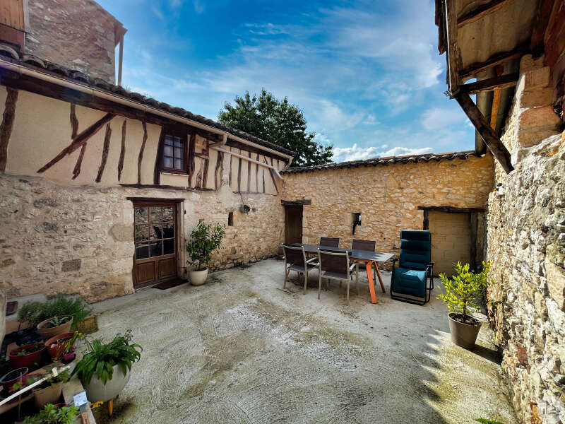 Dans l'écrin pittoresque du village de Villeréal se trouve une résidence d'exception, une magnifique maison médiévale qui évoque le charme envoûtant du passé. Dès l'entrée, vous serez captivé par l'atmosphère grandiose qui se dégage, accueilli par un vaste salon où les carreaux au sol, les poutres apparentes et la cheminée ancienne fonctionnelle avec son poêle à bois confèrent une ambiance chaleureuse et empreinte d'authenticité. Ce salon somptueux s'ouvre sur un espace télévision, offrant un coin propice à la détente et à la convivialité. Poursuivant votre visite, vous découvrirez une cuisine ouverte entièrement équipée, conçue avec un souci du détail exquis. Les finitions impeccables et le plan de travail en DEKTON apportent une touche de sophistication, tandis que l'espace repas attenant vous invite à savourer de délicieux moments culinaires en famille ou entre amis. La vue depuis la cuisine donne sur un espace nuit situé au rez-de-chaussée, où vous serez enchanté par les trésors qui se dévoilent. D'un côté, une somptueuse salle de bains disposant d'une douche en travertin d'élégance, de l'autre côté, une chambre aux dimensions généreuses se présente avec grâce. Les poutres apparentes rappellent avec délicatesse l'histoire et le caractère authentique de cette demeure, insufflant une atmosphère empreinte d'histoire et d'élégance. En outre, la chambre et la cuisine s'ouvrent sur une vaste cour intérieure, où vous pourrez vous prélasser et vous détendre en toute quiétude. Avec environ 50 mètres carrés d'espace, cette cour vous invite à profiter d'un environnement paisible et harmonieux, agrémenté d'un espace abrité qui vous permettra de savourer les doux instants en plein air, sans vis à vis. Un cellier pratique et un garage sont également accessibles depuis le rez-de-chaussée. À l'étage, un bel escalier en bois vous mène vers quatre chambres spacieuses, récemment rénovées vous attendent avec leurs charmes distincts. Chacune d'entre elles a été repensée avec une attention minutieuse, alliant harmonieusement confort et esthétisme. Une des chambres bénéficie d'une salle d'eau privative, offrant ainsi un véritable havre de tranquillité. Un grenier situé au dernier étage vous offre un espace supplémentaire pour le rangement uniquement. Cette demeure d'exception bénéficie également d'un équipement de chauffage moderne avec une climatisation réversible qui vous permettra de profiter d'un confort tout au long de l'année. N'hésitez plus et laissez-vous séduire par cette résidence d'exception qui comblera tous vos désirs de quiétude et de raffinement.