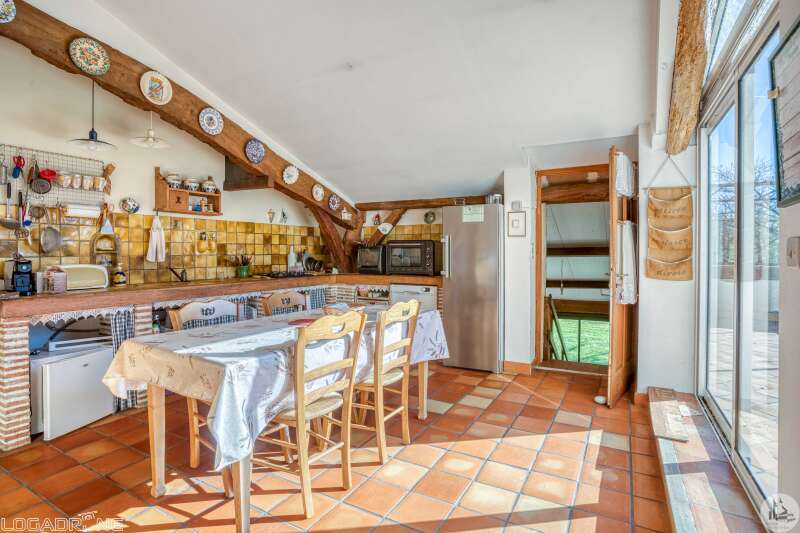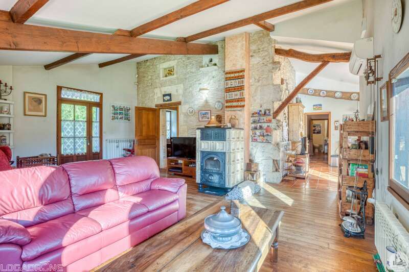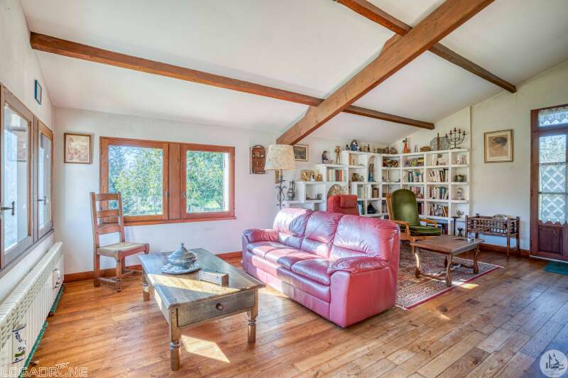 Maison de bourg, restaurée dans les années 90, comprenant : un hall d'entrée de 5,7 m2, une salle à manger de 20,6 m2, un salon de 34,2 m2, avec un poêle à bois alsacien et une climatisation (pièce orientée au Sud, lumineuse grâce à ses nombreuses fenêtres donnant sur le jardin), une cuisine de 19,2 m2 avec une baie vitrée coulissante donnant accès à une terrasse carrelée, surplombant le jardin et équipée d'un store et d'une pergola. Depuis le hall d'entrée, on accède à une chambre de 11,1 m2, puis à un dégagement de 3,5 m2 avec un grand placard, une salle de bains de 8,5 m2 (avec un sanibroyeur, un bidet, une cabine de douche, un lavabo et un sèche-serviette) Un couloir de distribution de 5,7 m2 dessert 2 autres chambres : une de 13,3 m2 avec placard, l'autre de 10,4 m2 (avec une fenêtre de toit) et un w.c de 2,5 m2 (avec un sanibroyeur et un lave-mains) Depuis la cuisine, accès au sous-sol par un escalier intérieur conduisant à une pièce de vie style véranda de 33,6 m2, avec un poêle à bois et un accès direct au jardin via des baies vitrées. De nombreux éléments anciens ont été conservés et mis en valeur lors de la restauration : murs en pierre, poutres apparentes, parquet en chêne, cheminée décorative. Fenêtres en bois mixtes double et simple vitrage. Baies en aluminium double vitrage. Chauffage central au fioul. Climatisation et poêle Alsacien dans le salon. En rez-de-jardin : Buanderie de 25 m2 au sol (avec une hauteur sous plafond de 1,76 m) Atelier de 24,5 m2. Pièce aménagée en tant que chambre d'appoint de 8,6 m2 environ avec un w.c (sanibroyeur) Un couloir de distribution de 6,9 m2 mène à une pièce de stockage de 16 m2. Cave de 54,3 m2 environ, terre battue au sol. A l'extérieur : Auvent servant d'emplacement pour stationner deux voitures. Local abritant les cuves à fuel (2000 L au total) et second local avec la chaudière à fuel de la marque Viessman. Abri de jardin en tôle et stockage pour le bois de chauffage. Grand jardin arboré, bordé de haies, un puits (avec pompe pour le jardin)