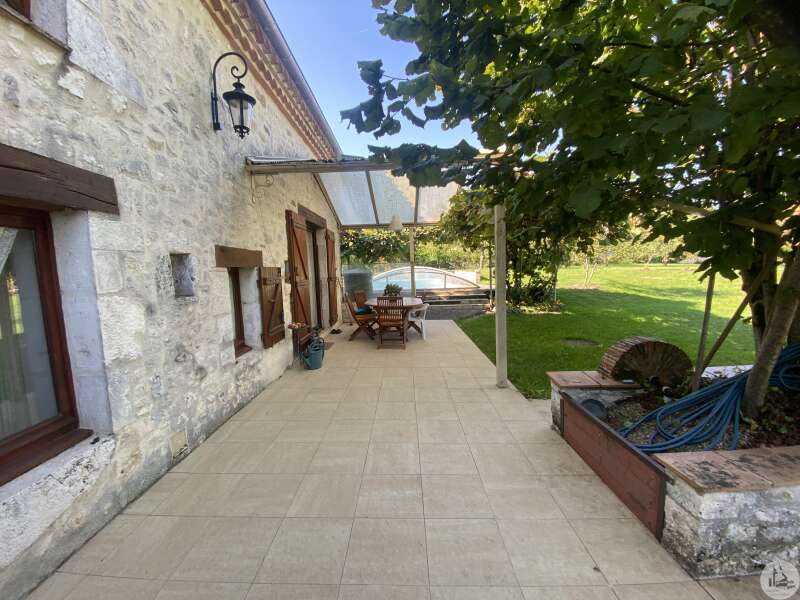 Beaucoup de charme pour cette ancienne ferme rénovée proche d'un villages classés avec tous commerces et à 25 mn de BERGERAC , son aéroport et sa gare. Maison de campagne d'env 118m2 au calme mais non isolé tout en profitant de la piscine et du terrain arboré et fleuri. L'habitation principale se compose de la manière suivante: véranda Salon/ salle à manger, traversant avec cheminée, une cuisine équipée, une chambre en rdc avec salle d'eau et wc. A l'étage: 3 belles chambres autour d'une mezzanine servant de coin TV et un wc. Le studio d'env 60 m2 comprend: une pièce de vie avec poêle à bois , coin cuisine, une salle de bain avec baignoire sabot, un wc indépendant, un étage avec espace nuit A l'extérieur un parc avec son verger, Une piscine avec dôme, équipement pour nage à contre-courant (pompe dans la véranda du gîte). 2 Terrasses Chauffage gaz, pour l'habitation principale insert et poêle à bois Assainissement individuel 2 garages dont un avec une salle d'eau d'appoint. Taxe foncière: 779 €