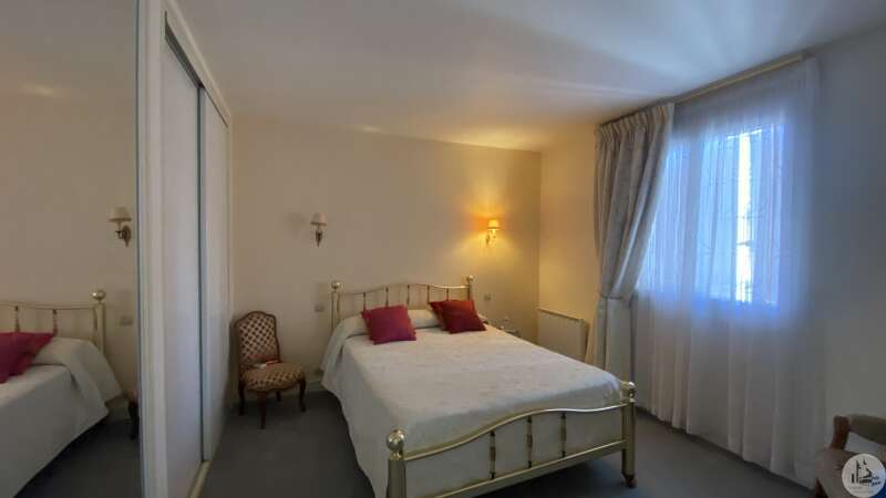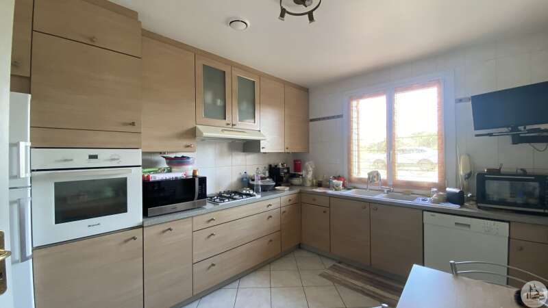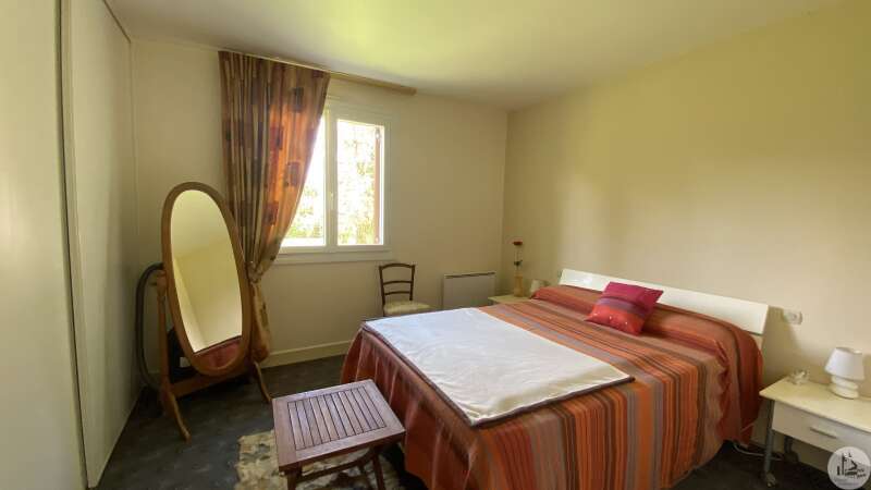 Maison de village construction de plain pied de 1988 en excellent état (travaux de modernisation réalisés ces 10 dernières années) située à environ 1 km du centre historique et proche des commodités. Habitation d'environ 100 m2 offrant: Entrée env. 5,5m2 , sol carrelé; le séjour en L de 40m2, sol carrelé, cheminée insert, dispose de 2 portes-fenêtres plus 1 fenêtre, climatisation réversible ; la cuisine est aménagée et équipée env. 12m2, sol carrelé, 1 fenêtre, les murs sont faïencés; côté nuit un couloir de 6 m2 avec placard intégré, sol carrelé dessert un wc individuel avec lave-mains (2 m2) sol carrelé avec 1 fenêtre, les murs sont faïencés; la salle d’eau de 5,4 m2, sol carrelé, murs faïences, douche d’angle, bidet, 1 meuble vasque, la fenêtre est oscillo-battante ; 1 chambre de 14,5 m2, sol moquette, fenêtre, placard coulissant (x2) radiateur électrique; 1 chambre de 11,6 m2, sol moquette, fenêtre, placard coulissant, radiateur électrique. Le garage d'env. 22 m2 est attenant et communicant (une voiture plus espace de rangement , cumulus de 200L, avec trappe accès combles non aménageables, un portail plus une porte arrière donnant sur le jardin Dépendance non attenante à usage d'atelier (construction en parpaing, sol terre battue)env. 15, 6m2 Cette construction traditionnelle (murs briques plâtrières isolation laine de verre) est en très bon état d’entretien . Les menuiseries sont en PVC double vitrage (changées en 2020) à l'exception de la fenêtre des toilettes. La maison qui a subi des désordres suite à sécheresse a bénéficié de travaux de rénovation complets (façades, sols, peintures) en 2015/2016 pris en charge par assurance Maison raccordée au tout à l'égout Côté jardin: Le terrain est facile d'entretien, plat et clôturé . Puits et récupérateur des eaux de pluie. Espace barbecue Foncier : 840€